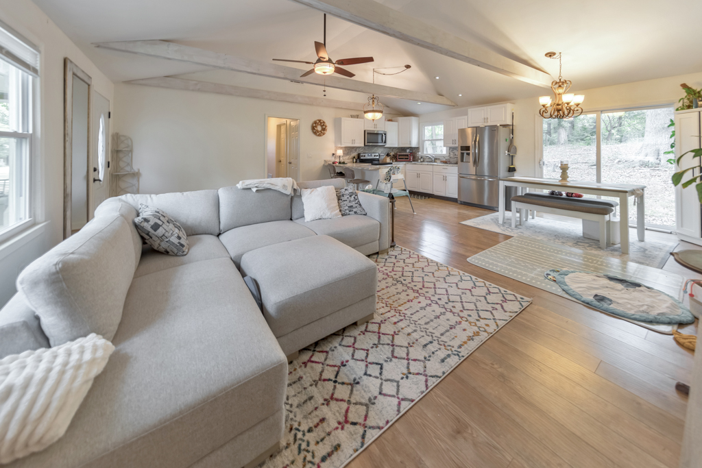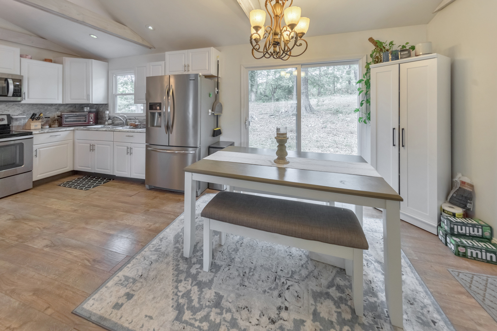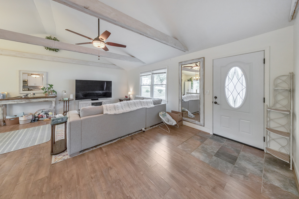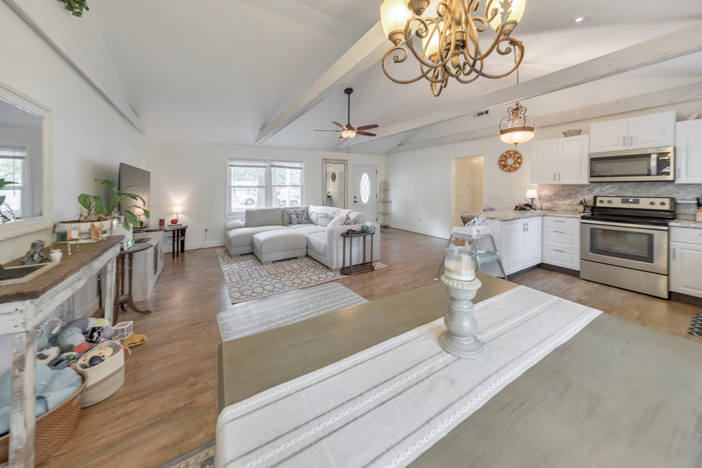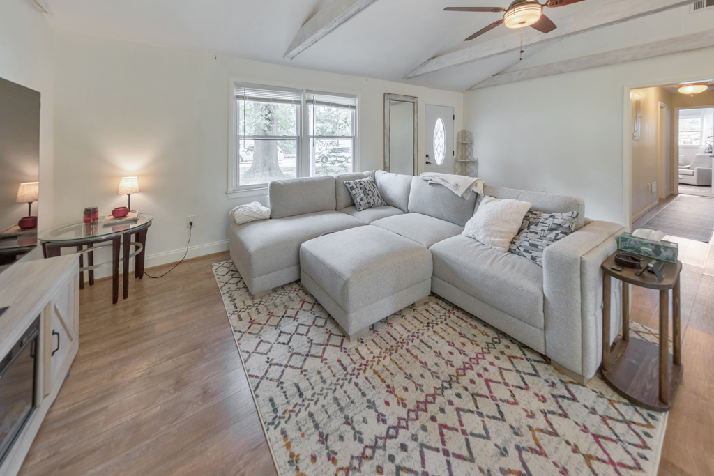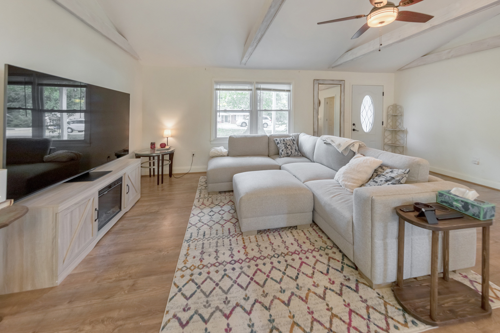 Welcome to this charming 3 bedroom, 1 bathroom ranch in the sought-after Deer Run community! This inviting home features a bright, open-concept living and dining area with vaulted ceilings, creating a spacious feel that’s ideal for everyday living and entertaining. The updated kitchen offers stone countertops, white cabinetry, and a convenient breakfast bar with views to the main living space. The spacious primary bedroom includes his and hers closets, while two additional bedrooms provide comfortable accommodations for family, guests, or a home office. The large bathroom features double vanities, a shower/tub combo, and a convenient laundry area. Enjoy outdoor living in the fenced backyard, now enhanced with a newly added rear deck, perfect for relaxing or entertaining. A 1-car carport adds everyday convenience. No HOA! Don’t miss this opportunity to own a well-maintained home in a desirable location.