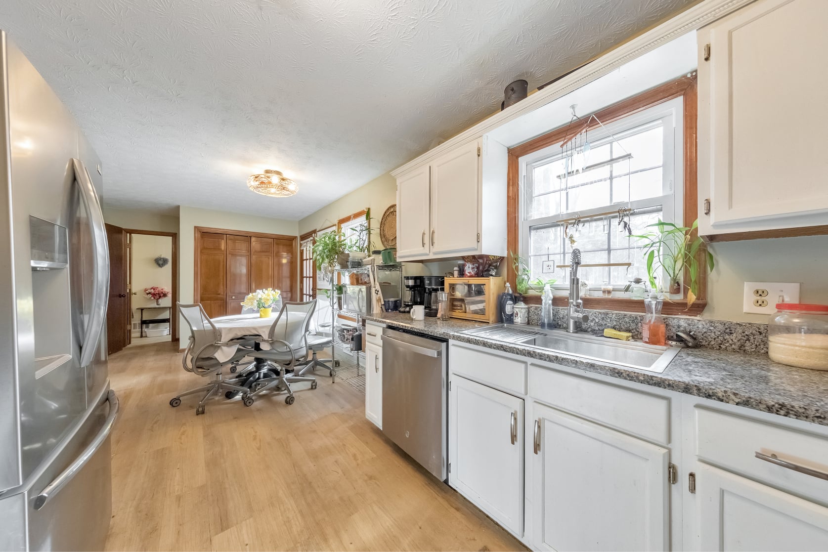 Welcome to this charming 4 bed / 3 bath East Cobb home tucked away in a quiet neighborhood. Step inside to an inviting living room with a gas log fireplace that flows into a kitchen equipped with stainless steel appliances, white cabinetry, and a laundry closet with washer and gas dryer. A main-level bedroom and full bath offer an easy option for family and guests. Upstairs, two spacious bedrooms share a hall bath with a new toilet. The finished lower level offers updated flooring and versatile space that is ideal for an in-law suite with its own living room, kitchenette, and bedroom with a walk-in closet and updated full bathroom. Enjoy relaxed outdoor living on the screened-in porch overlooking a partially fenced backyard. Beyond the fenced area, you’ll find a cozy fire pit space along with a storage shed for tools or lawn equipment. Upgrades include updated windows and a four-year-old roof. With shopping, dining, and schools close by, this home offers an ideal blend of convenience and everyday comfort.