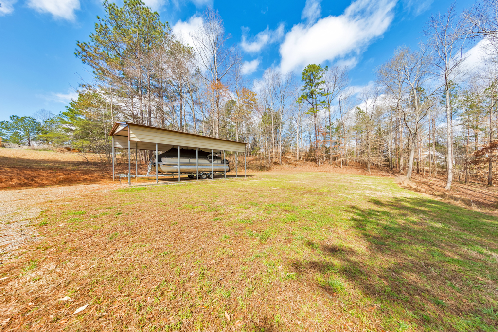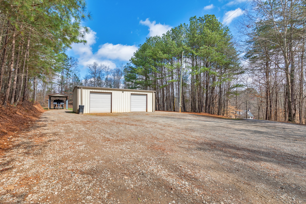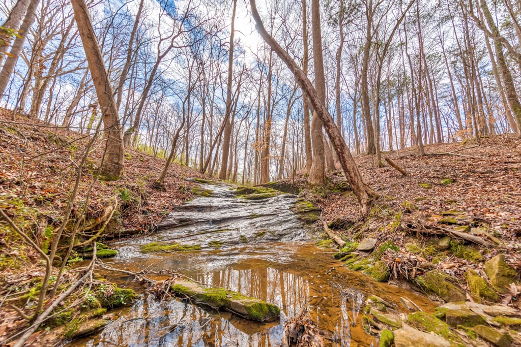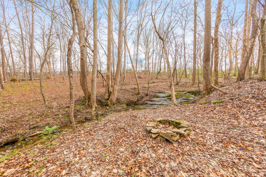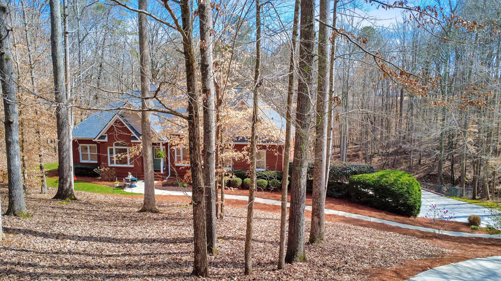 Tucked away on 4 serene acres in a coveted Canton setting, this exceptional property offers a rare blend of privacy, natural beauty, and versatility. Mature trees and expansive wooded surroundings frame a picturesque creek with a charming waterfall, creating a peaceful backdrop for everyday living. With a spacious workshop, RV/boat storage, and abundant room to explore, garden, or gather outdoors. The 4 bed / 3.5 bath residence welcomes you with a sun-filled floorplan where the foyer is flanked by a formal dining room and an office or sitting room. The living room impresses with soaring ceilings and a classic brick fireplace, creating a warm and inviting space. The eat-in kitchen offers both function and style with stainless steel appliances, granite countertops, abundant cabinetry, and a bright breakfast area overlooking the lush backyard. The main-level primary suite provides a private escape, featuring tray ceilings and a spacious bath with dual vanities, a jetted tub, a separate shower, and a large walk-in closet. Two additional bedrooms on the main level share a Jack and Jill bath and each include generous walk-in closets. The terrace level expands the living space with a kitchenette, full bath, bedroom, and a flexible bonus room with direct access to the back patio, well suited for guests, multigenerational living, or entertainment. Outdoors, a renovated deck overlooks the oversized fenced backyard, offering an inviting space for gatherings or quiet evenings surrounded by nature. A two-car garage and additional parking pad provide plenty of room for vehicles. The property also includes a large 30’ x 40’ workshop with 200-amp power and compressor lines, plus a covered 14’ x 35’ RV pad, offering convenience for hobbies, storage, or additional vehicles. The scenic creek and waterfall create a tranquil backdrop, while the generous acreage leaves ample room to add a pool or further customize the outdoor setting. Just minutes from top-rated schools, shopping, and dining in the desirable Hickory Flat area, this property blends privacy, functionality, and natural beauty into one extraordinary home.