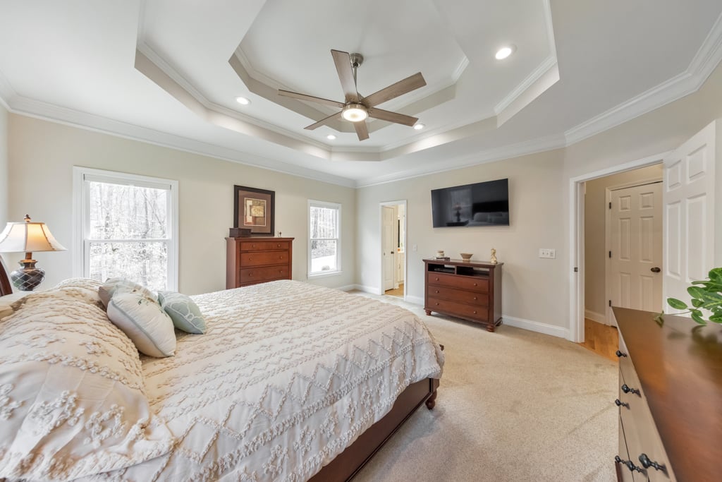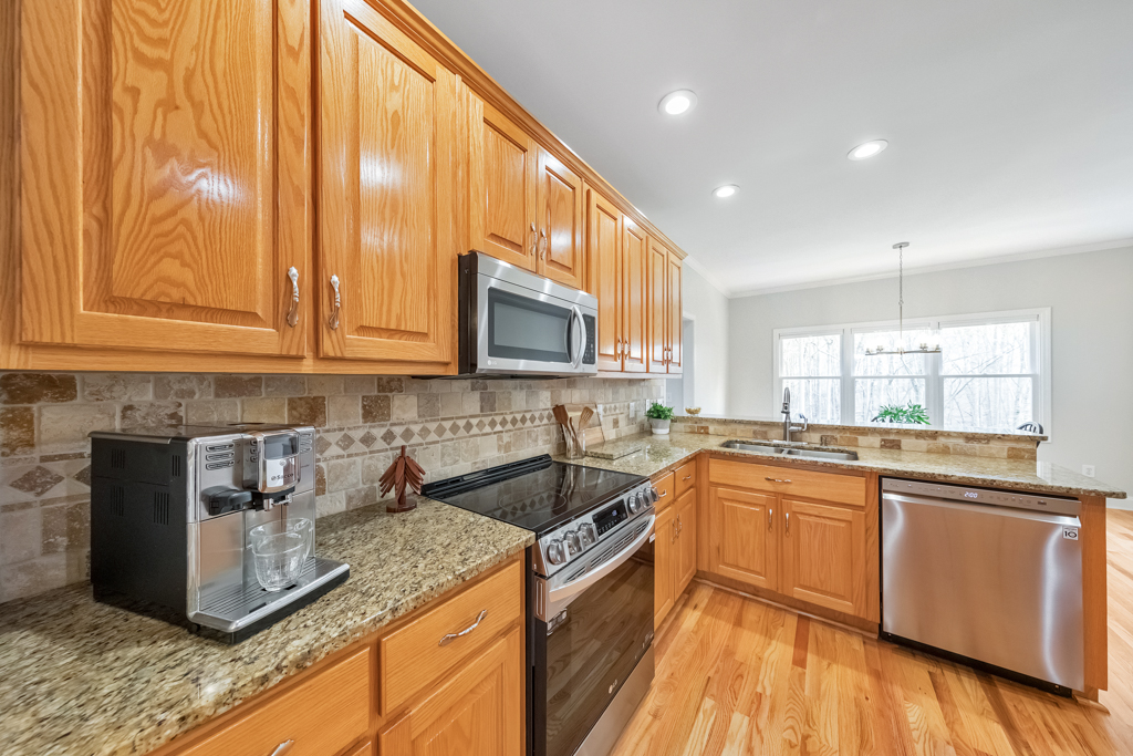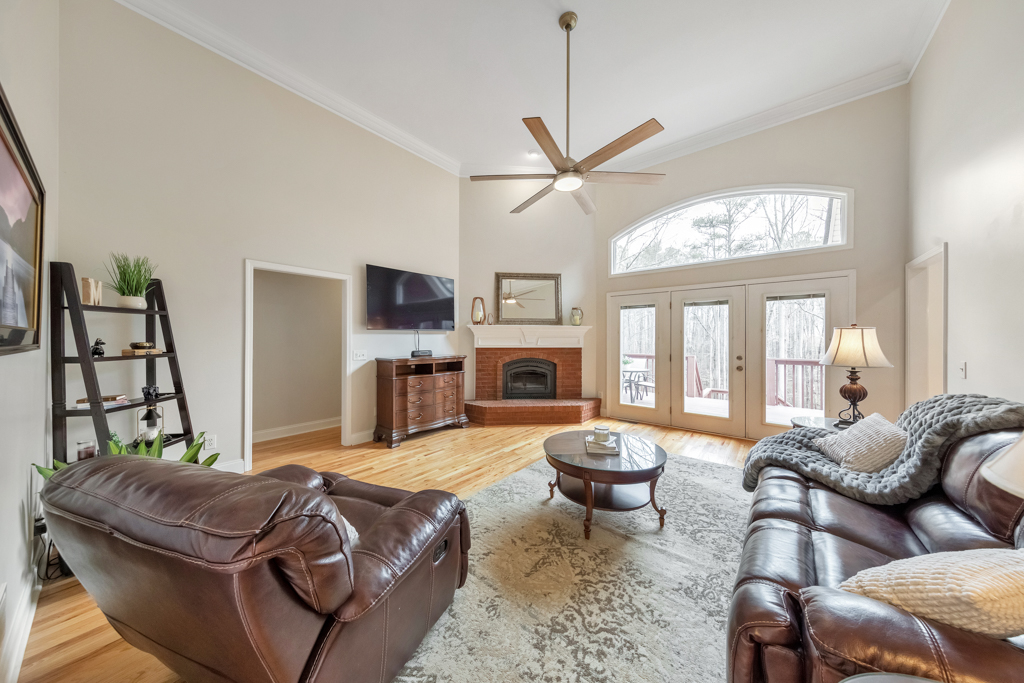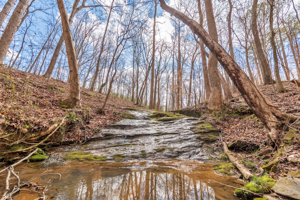 Tucked away on 4 serene acres in a coveted Canton setting, this exceptional property offers a rare blend of privacy, natural beauty, and versatility. Mature trees and expansive wooded surroundings frame a picturesque creek with a charming waterfall, creating a peaceful backdrop for everyday living. With a spacious workshop, RV/boat storage, and abundant room to explore, garden, or gather outdoors. The 4 bed / 3.5 bath residence welcomes you with a sun-filled floorplan where the foyer is flanked by a formal dining room and an office or sitting room. The living room impresses with soaring ceilings and a classic brick fireplace, creating a warm and inviting space. The eat-in kitchen offers both function and style with stainless steel appliances, granite countertops, abundant cabinetry, and a bright breakfast area overlooking the lush backyard. The main-level primary suite provides a private escape, featuring tray ceilings and a spacious bath with dual vanities, a jetted tub, a separate shower, and a large walk-in closet. Two additional bedrooms on the main level share a Jack and Jill bath and each include generous walk-in closets. The terrace level expands the living space with a kitchenette, full bath, bedroom, and a flexible bonus room with direct access to the back patio, well suited for guests, multigenerational living, or entertainment. Outdoors, a renovated deck overlooks the oversized fenced backyard, offering an inviting space for gatherings or quiet evenings surrounded by nature. A two-car garage and additional parking pad provide plenty of room for vehicles. The property also includes a large 30’ x 40’ workshop with 200-amp power and compressor lines, plus a covered 14’ x 35’ RV pad, offering convenience for hobbies, storage, or additional vehicles. The scenic creek and waterfall create a tranquil backdrop, while the generous acreage leaves ample room to add a pool or further customize the outdoor setting. Just minutes from top-rated schools, shopping, and dining in the desirable Hickory Flat area, this property blends privacy, functionality, and natural beauty into one extraordinary home.