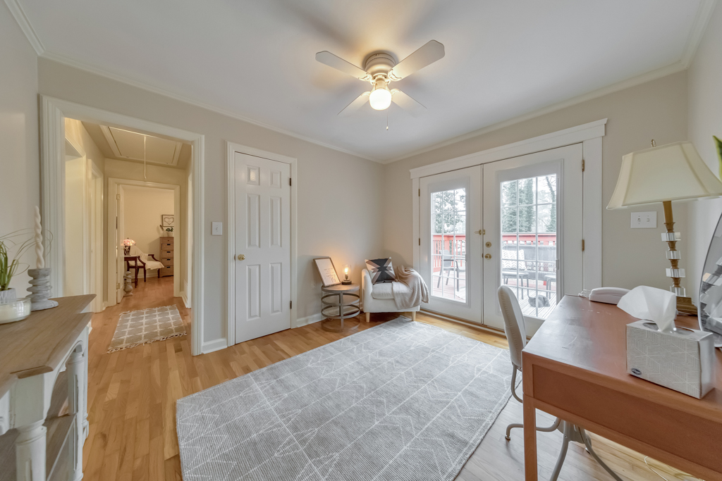 Welcome to this charming 2 bedroom, 1.5 bathroom ranch with beautiful hardwood floors nestled in the Gordon Acres community with no HOA. A covered front porch invites you inside to a cozy family room that flows seamlessly into the kitchen, featuring white cabinets, a sunny breakfast room, and a convenient laundry closet, with a half bathroom just off the kitchen. Two generously sized bedrooms share a full hall bathroom, while a versatile flex room—perfect for a home office or den—offers direct access to the back deck overlooking the spacious, fenced-in backyard. An attached 1-car garage adds everyday convenience, and the ideal location provides easy access to Mableton, Downtown Atlanta, I-20, I-285, and an abundance of shopping and dining options. You don't want to miss this one!