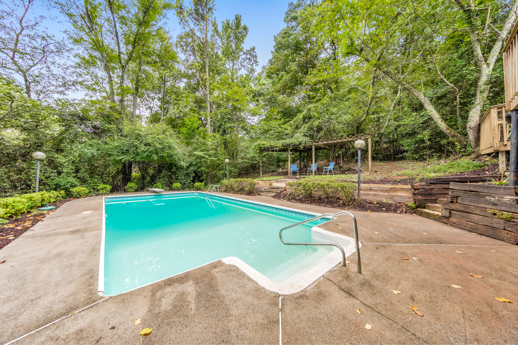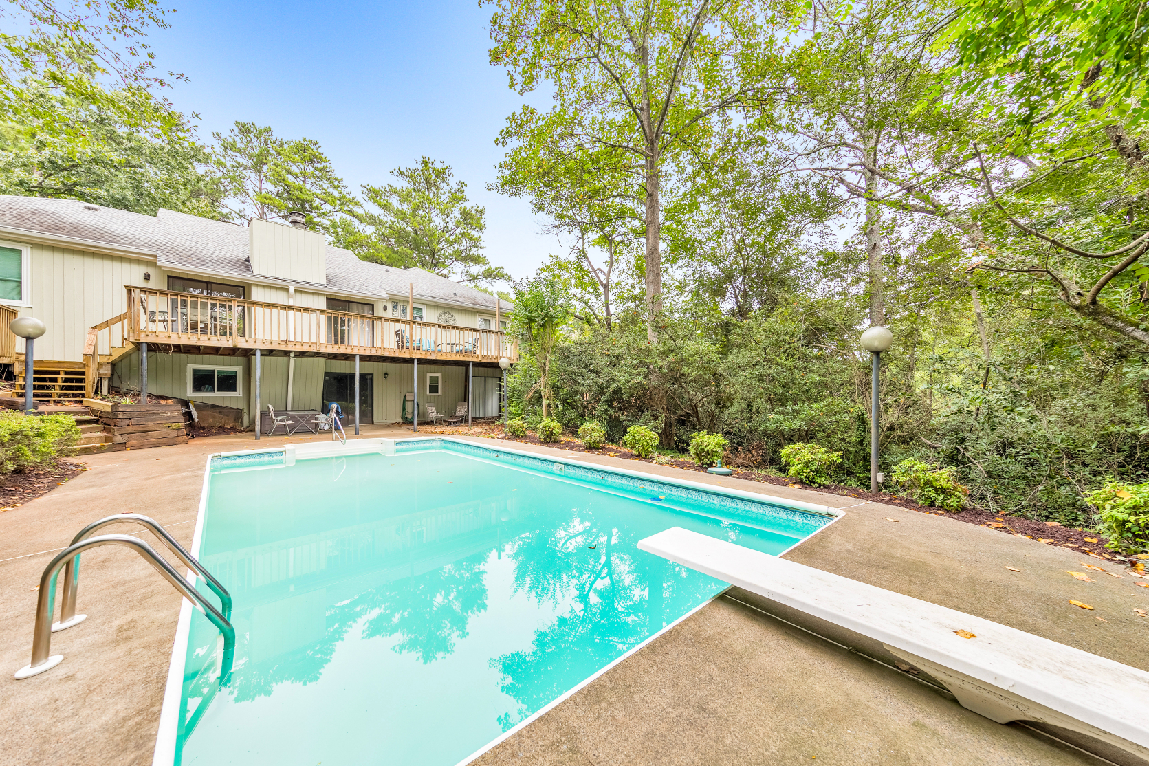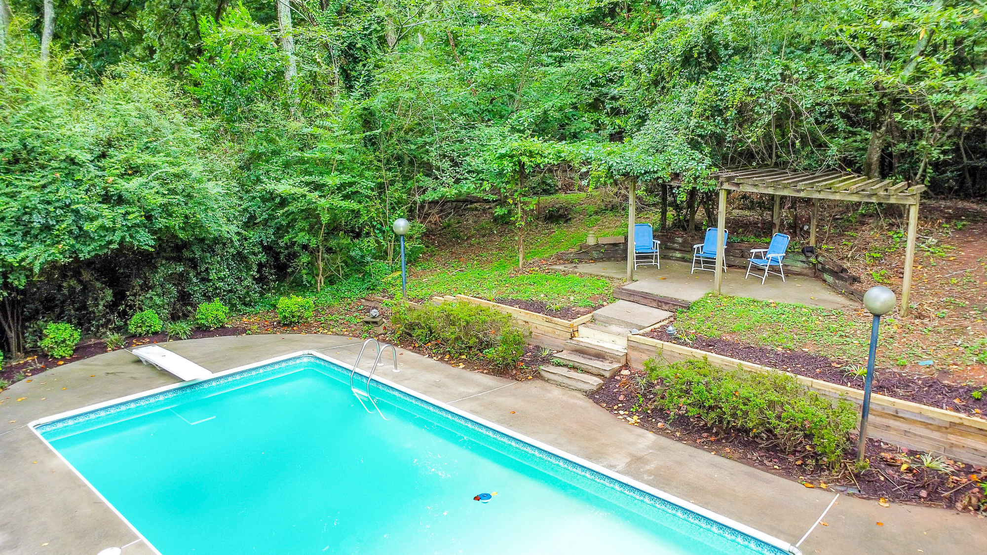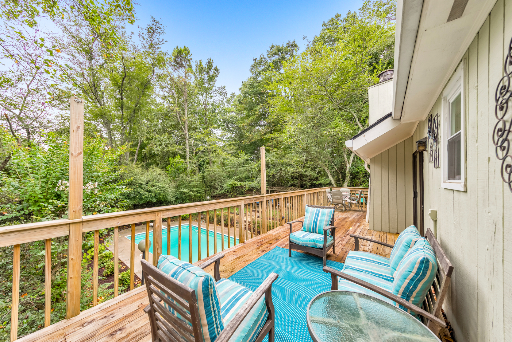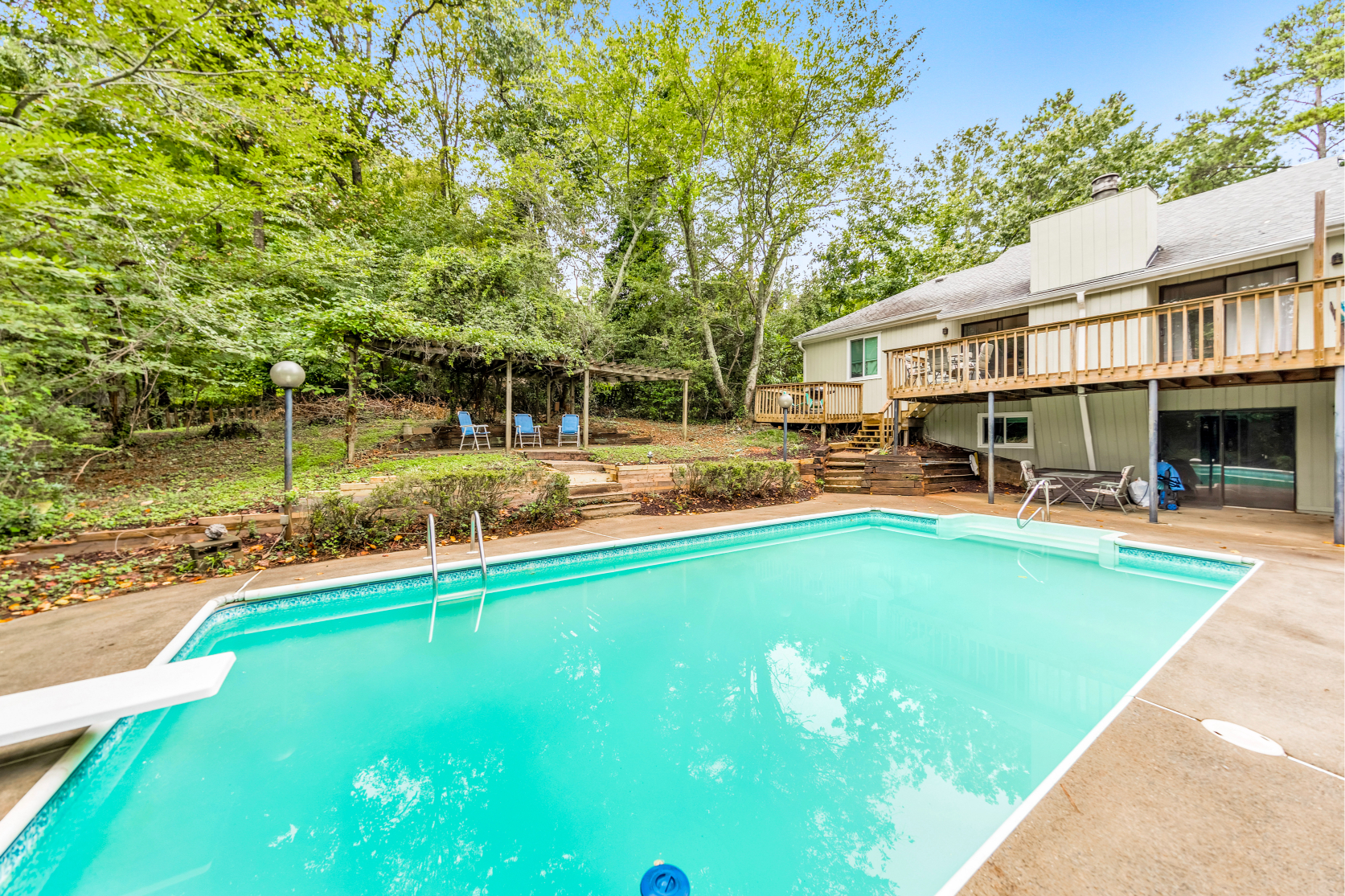 Welcome to this beautiful 4 bed / 3 bath ranch on a basement in a prime East Cobb location, nestled on a private lot with an inground pool. This charming home offers a functional layout and thoughtful updates throughout. Step inside to an inviting stone foyer that leads to a fireside living room with high ceilings and plenty of natural light. The DreamMaker kitchen, updated in 2020, features white shaker cabinets with soft-close doors, a beverage fridge, hidden seasoning rack, built-in bench with storage, hardwood tile flooring, a Thor 5-burner stainless steel stove, new dishwasher, and a new refrigerator. A pantry in both the kitchen and mudroom/laundry area provides excellent storage. Off the kitchen/dining area, a den offers a comfortable space for evenings with friends and family. The primary suite boasts a double vanity and a jetted tub/shower combo. Two secondary bedrooms share a hall bath accented with granite. Downstairs, the full basement features newer carpet and includes a bedroom, full bath, flex room, and a media room. Step outside to a backyard retreat featuring an inground pool with a vinyl liner, an elevated patio with pergola, and a deck ideal for grilling and relaxing. Additional highlights include most windows updated, gutter guards, and a fenced yard. The spacious garage has a new garage door, Iron Man storage system, and FastTrack system, all of which stay with the home. HVAC is less than a year old (14 SEER). Located in a great neighborhood with the option to join an active swim/tennis community!