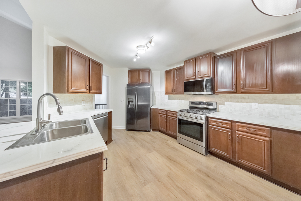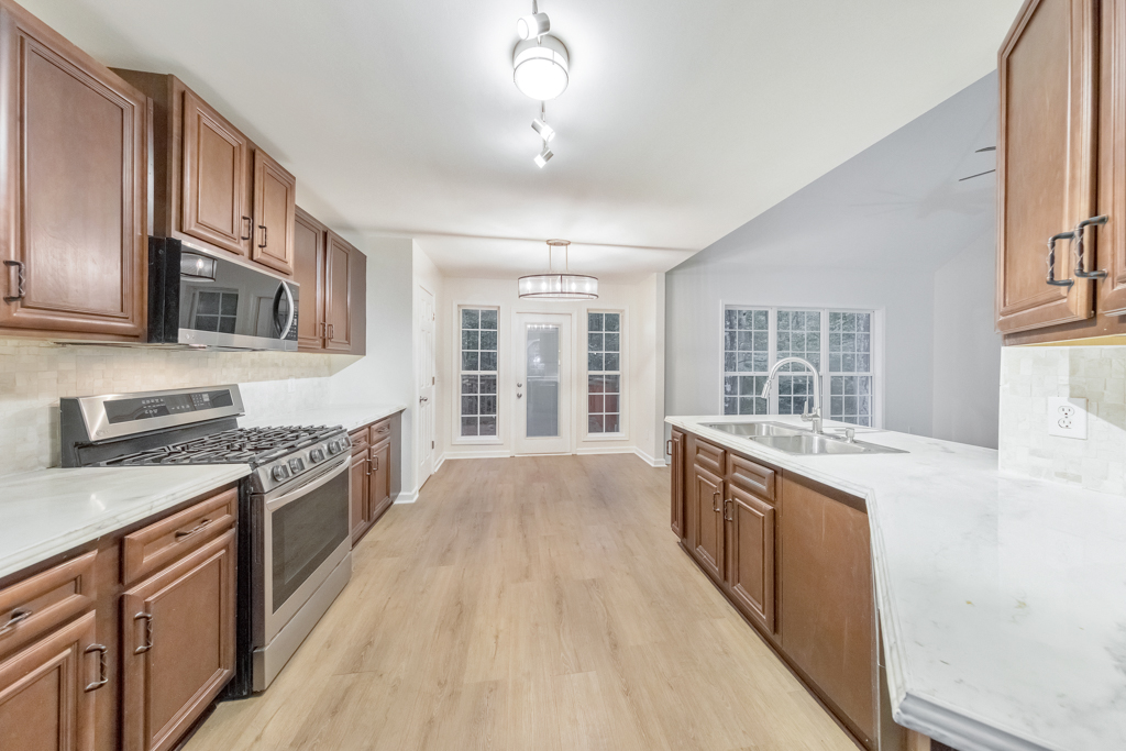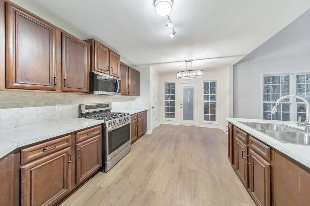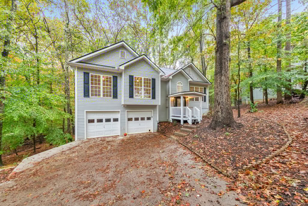 Beautifully updated and impeccably maintained, this 4 bedroom and 3 bathroom split-level home in Burnt Hickory Estates sits on over 1.1 serene acres. A charming covered front porch sets the tone as you enter into a spacious, light-filled layout designed for comfort and modern living. The separate dining room flows seamlessly into the fireside family room featuring vaulted ceilings and views of the peaceful backyard. The stylish kitchen offers poured epoxy countertops, stainless steel appliances, a pantry, and a convenient breakfast bar, ideal for casual dining or entertaining. The main level primary suite impresses with tray ceilings, private access to the rear deck, a large walk-in closet, and a beautifully updated ensuite bathroom with double vanities, a separate shower, and a soaking tub. Two additional generously sized bedrooms on the main level share a full bathroom in the hall. The finished terrace level expands the home’s functionality with a spacious bedroom, a full bathroom, bonus/flex room, the laundry closet, and access to the 2-car garage. Enjoy quiet mornings or relaxing evenings on the rear deck overlooking the wooded and private backyard offering endless possibilities for recreation or gardening. This peaceful setting provides easy access to multiple vibrant city centers, including Downtown Dallas and Downtown Acworth, as well as major roadways, shopping, dining, and everyday conveniences. This move-in ready home delivers the perfect balance of comfort, convenience, and privacy!