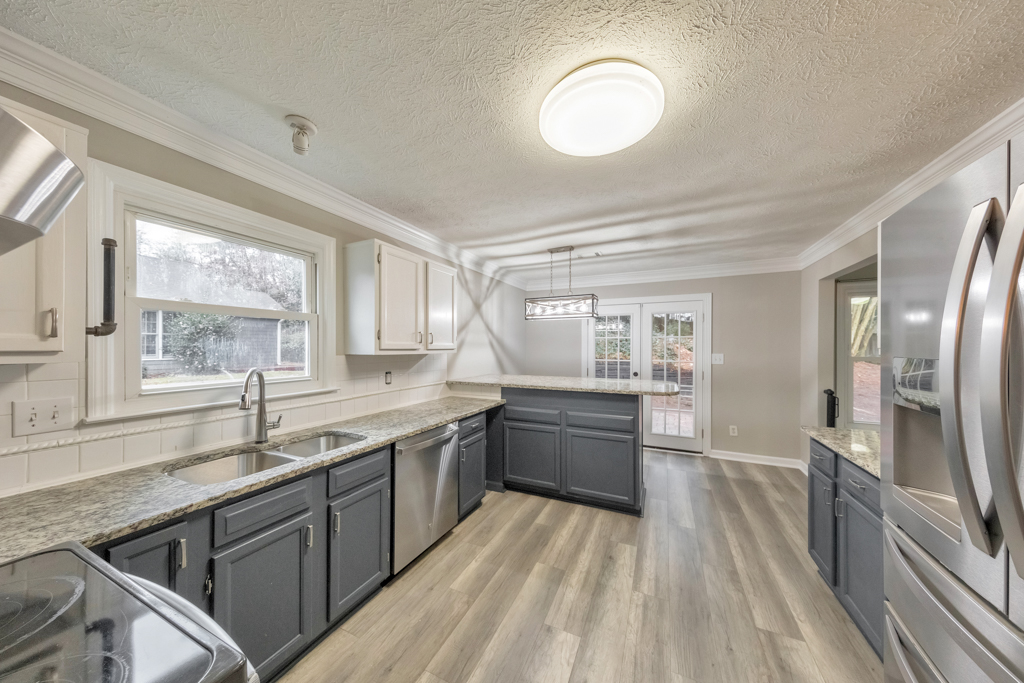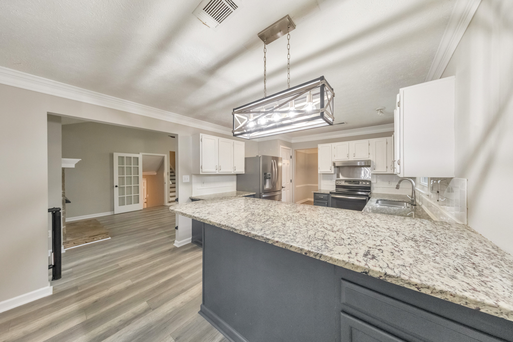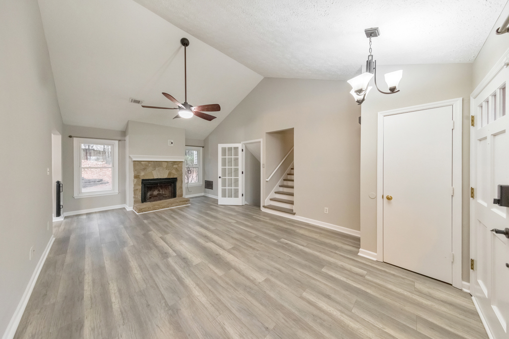 This is the one you’ve been waiting for! Welcome to this elegant 4 bed / 2 bath home in Arbor Forest, just minutes from the shops and charm of Marietta Square. Freshly updated with new paint and flooring throughout, the home opens to an inviting floorplan and a fireside living room with vaulted ceilings, perfect for relaxing evenings or family gatherings. The updated kitchen features granite countertops, stainless steel appliances, and a breakfast bar, flowing seamlessly into a formal dining room ideal for hosting dinners. The spacious primary suite offers a large custom closet and an ensuite with double vanity, while three additional bedrooms share a lovely hall bath. A convenient laundry closet completes the upper level. The terrace level offers a versatile living space, perfect for a media room or home office. Enjoy time outdoors on the back patio or by the fire pit overlooking the fenced yard. Don’t miss the opportunity to make this exceptional property your own!.