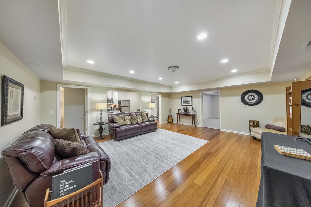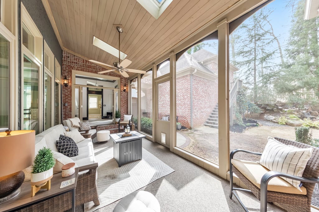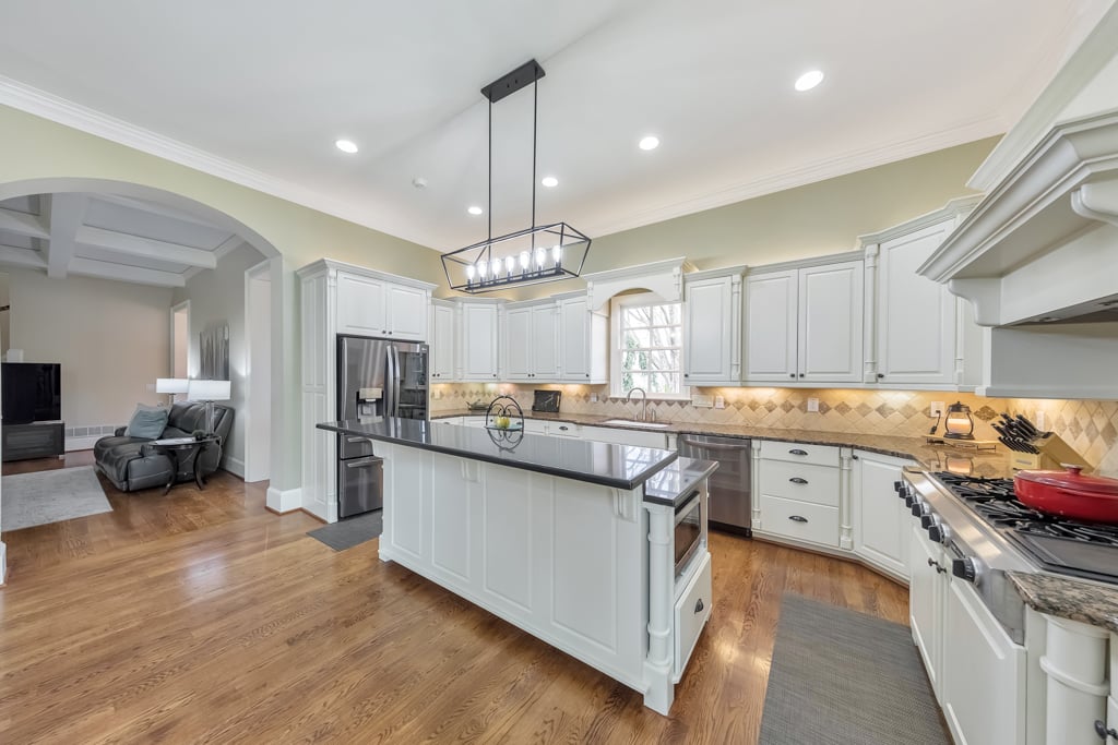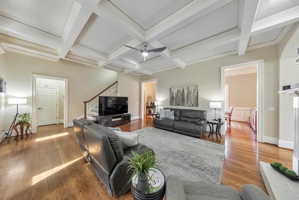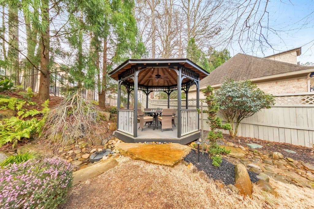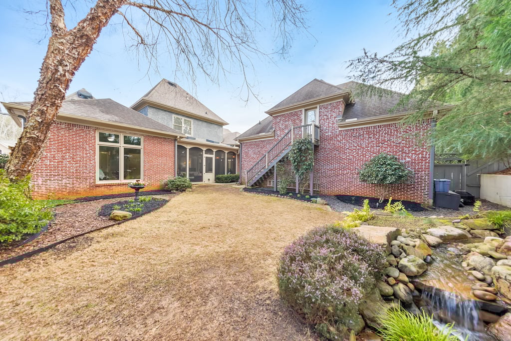 Enjoy the best that Kennesaw has to offer! Located within an exclusive gated enclave, this custom-built residence offers refined living, expansive spaces, and scenic golf course views from the front of the home. Thoughtfully designed with both comfort and versatility in mind, the property features 7 bedrooms, 6.5 baths, and a layout suited for multi-generational living and entertaining. The main level showcases hardwood flooring, soaring ceilings, and detailed trim work enhance the open living spaces. A fireside family room with beautiful coffered ceilings flow into the chef’s kitchen, where a large center island, granite surfaces, soft-close cabinetry, under-cabinet lighting, and a 6-burner gas cooktop with griddle and vent hood create a functional and inviting culinary space. The adjoining breakfast area opens to the outdoor living spaces, where a screened porch overlooks a peaceful backyard with a tranquil waterfall, lush landscaping, and a charming gazebo, creating a serene setting for relaxing or entertaining. The spacious owner’s suite on the main level features its own double-sided fireplace shared with the spa-inspired bath, complete with jetted tub, dual vanities, separate shower, and two custom walk-in closets. Also on the main level is an ADA-accessible bedroom and full bath, thoughtfully designed with features including an accessible light switch and a built-in heater in the bathroom. Upstairs, generously sized bedrooms include a Jack-and-Jill bath and an additional private ensuite, offering comfort and privacy for family or visitors. The finished terrace level expands the home’s versatility with a full in-law suite including a bedroom, full bath, living room, and a full kitchen. The basement kitchen is well equipped with soft-close drawers and cabinetry, under-cabinet lighting and its own disposal, creating a functional second living space ideal for extended family, guests or entertaining. The terrace level also includes a recreation room perfect for game night, a flex room for a gym or hobby area, and extensive storage. Above the garage, a separate-entry apartment with its own HVAC system, including a newer heat pump, offers excellent potential for a guest suite, office, or additional living quarters. Quality construction and thoughtful updates contribute to the home’s energy-efficient performance and long-term value. Notable features include Marvin windows, several recently replaced windows, four HVAC systems including a newer heat pump for the apartment, leaf guard gutter protection with a lifetime warranty, two water heaters, and three electrical panels. Exterior landscape lighting highlights the grounds, while the fenced yard, stone steps, and carefully designed outdoor spaces create a peaceful setting for relaxation or entertaining. Additional features include a three-car garage, high-end built-ins, and smart LG appliances, including the refrigerator, washer, and dryer, which can be controlled from your phone. The property also offers access to a neighborhood lake where residents can enjoy fishing and non-motorized water activities. This exceptional home combines timeless design, quality craftsmanship, and flexible living spaces in a private gated setting.