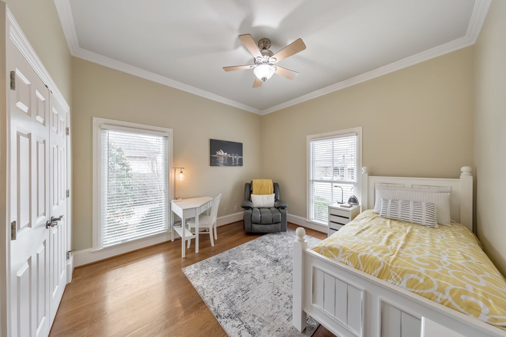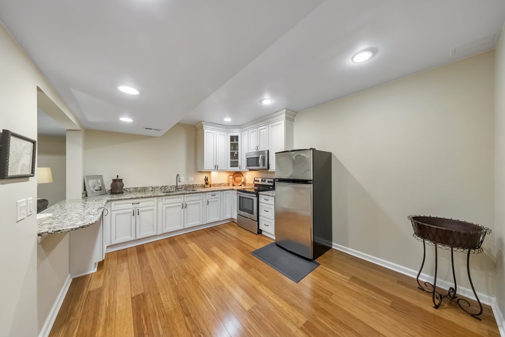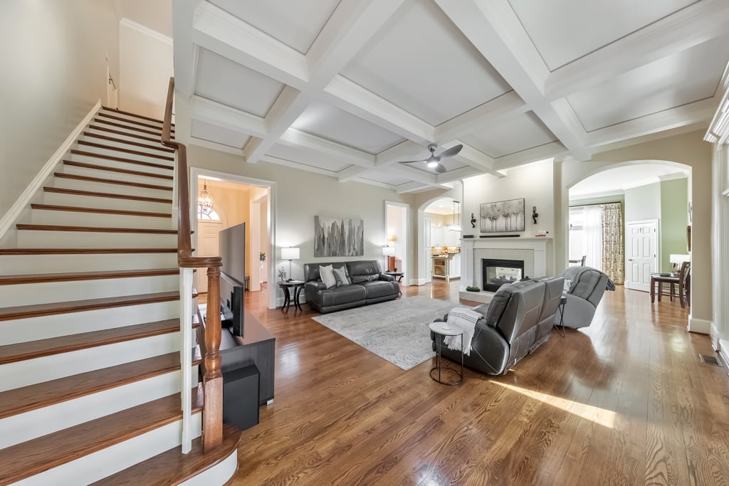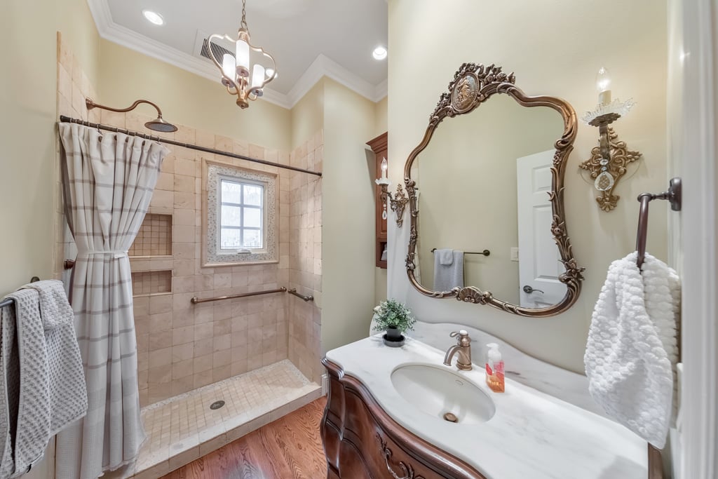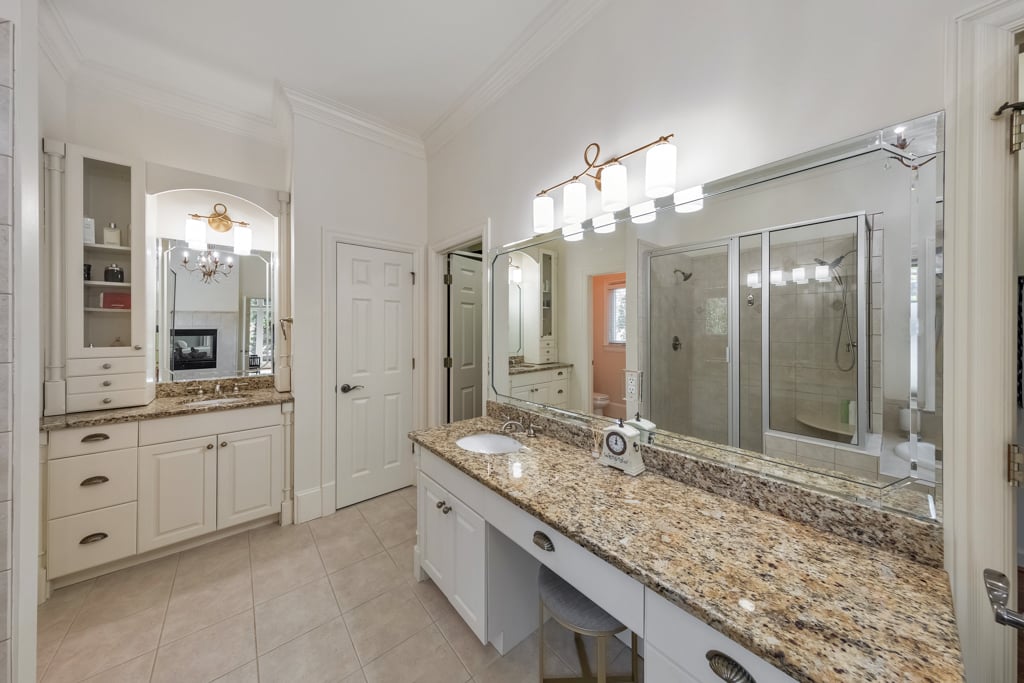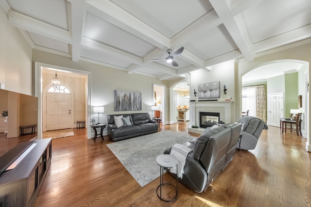Enjoy the best that Kennesaw has to offer! Located within an exclusive gated enclave, this custom-built residence offers refined living, expansive spaces, and scenic golf course views from the front of the home. Thoughtfully designed with both comfort and versatility in mind, the property features 7 bedrooms, 6.5 baths, and a layout suited for multi-generational living and entertaining. The main level showcases hardwood flooring, soaring ceilings, and detailed trim work enhance the open living spaces. A fireside family room with beautiful coffered ceilings flow into the chef’s kitchen, where a large center island, granite surfaces, soft-close cabinetry, under-cabinet lighting, and a 6-burner gas cooktop with griddle and vent hood create a functional and inviting culinary space. The adjoining breakfast area opens to the outdoor living spaces, where a screened porch overlooks a peaceful backyard with a tranquil waterfall, lush landscaping, and a charming gazebo, creating a serene setting for relaxing or entertaining. The spacious owner’s suite on the main level features its own double-sided fireplace shared with the spa-inspired bath, complete with jetted tub, dual vanities, separate shower, and two custom walk-in closets. Also on the main level is an ADA-accessible bedroom and full bath, thoughtfully designed with features including an accessible light switch and a built-in heater in the bathroom. Upstairs, generously sized bedrooms include a Jack-and-Jill bath and an additional private ensuite, offering comfort and privacy for family or visitors. The finished terrace level expands the home’s versatility with a full in-law suite including a bedroom, full bath, living room, and a full kitchen. The basement kitchen is well equipped with soft-close drawers and cabinetry, under-cabinet lighting and its own disposal, creating a functional second living space ideal for extended family, guests or entertaining. The terrace level also includes a recreation room perfect for game night, a flex room for a gym or hobby area, and extensive storage. Above the garage, a separate-entry apartment with its own HVAC system, including a newer heat pump, offers excellent potential for a guest suite, office, or additional living quarters. Quality construction and thoughtful updates contribute to the home’s energy-efficient performance and long-term value. Notable features include Marvin windows, several recently replaced windows, four HVAC systems including a newer heat pump for the apartment, leaf guard gutter protection with a lifetime warranty, two water heaters, and three electrical panels. Exterior landscape lighting highlights the grounds, while the fenced yard, stone steps, and carefully designed outdoor spaces create a peaceful setting for relaxation or entertaining. Additional features include a three-car garage, high-end built-ins, and smart LG appliances, including the refrigerator, washer, and dryer, which can be controlled from your phone. The property also offers access to a neighborhood lake where residents can enjoy fishing and non-motorized water activities. This exceptional home combines timeless design, quality craftsmanship, and flexible living spaces in a private gated setting.