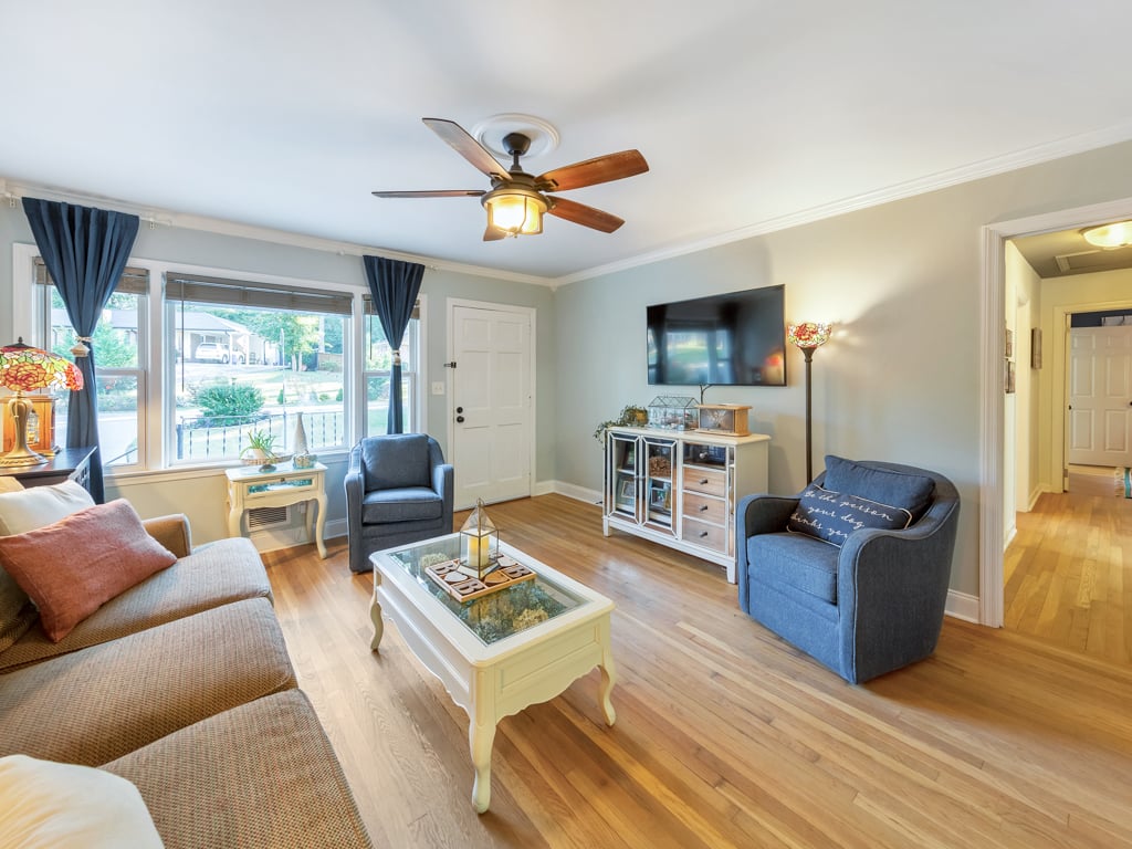 Welcome to this beautifully maintained and upgraded 3 bedroom, 2 bathroom ranch perfectly situated in the heart of Marietta. Enjoy peaceful mornings on the front porch or the covered front patio before stepping inside to a warm and inviting family room with gleaming hardwood floors throughout most of the home — no carpet. The family room flows seamlessly into the kitchen, featuring stone countertops, rich stained wood cabinets, and a cozy breakfast area. Off the kitchen, you’ll find a sunny office and a separate laundry room for added convenience. The primary bedroom offers an updated ensuite bathroom complete with his-and-hers vanities and a sleek glass shower. A generously sized secondary bedroom and a full hall bathroom complete the main level. The basement expands your living space with two spacious bonus/flex rooms, an additional bedroom, and a large storage room — perfect for a home gym, office, or media space. Enjoy multiple outdoor living spaces, including a side porch and a patio overlooking the spacious fenced backyard, ideal for entertaining or relaxing. With no HOA, you’ll have the freedom to truly make this home your own. Conveniently located near Dobbins Air Force Base, Marietta Square, I-75, Truist Park, and an abundance of shopping and dining options — this home offers the perfect blend of comfort, function, and location.