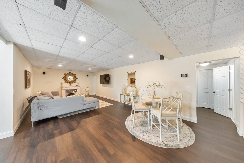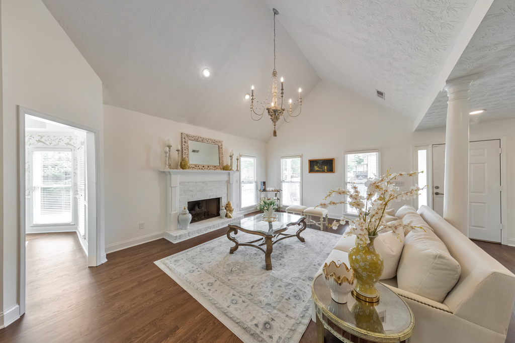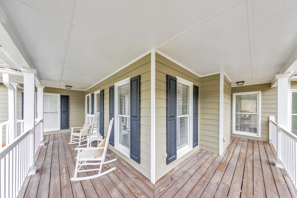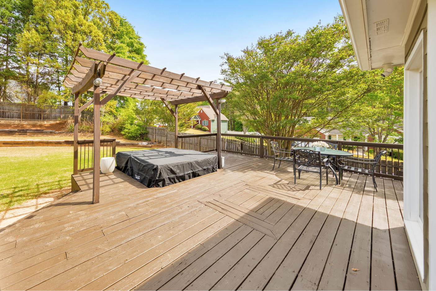 Welcome home to this amazing 5-bedroom, 3 full bath ranch with a fully finished basement, nestled on a desirable corner lot in the sought-after Saint Martins Cove community in beautiful Lawrenceville. From the moment you arrive, you'll be charmed by the inviting wraparound porch, ideal for relaxing mornings or evening gatherings. Inside, you'll find a bright and open layout highlighted by vaulted ceilings in the family room and a stunning white brick fireplace that serves as the centerpiece of the living space. Beautiful hardwood floors flow throughout the main and upper levels, while the finished basement features durable and stylish luxury vinyl plank flooring. The separate dining room boasts its own vaulted ceiling, creating an elegant space for entertaining. The eat-in kitchen is a true standout, complete with quartz countertops, stainless steel appliances, updated lighting, an island, a stylish backsplash, and custom cabinetry in a soft alabaster finish. A large bay window fills the space with natural light and offers a lovely view of the back deck and level, private fenced yard, perfect for enjoying indoor-outdoor living. Retreat to the spacious primary suite featuring a trey ceiling, double vanity bathroom, a huge walk-in closet, and a spa-like bath with a separate whirlpool tub and a frameless glass shower. There is also a bedroom on the upper level, perfect for family, guests, or the ideal spot for a home office. The fully finished basement is ideal for multi-generational living or guests, offering a complete in-law suite with its own kitchen, den, bedroom, and full bath. This home truly has it all-space, style, and versatility-in a prime Lawrenceville location. Don't miss your opportunity to make it yours!