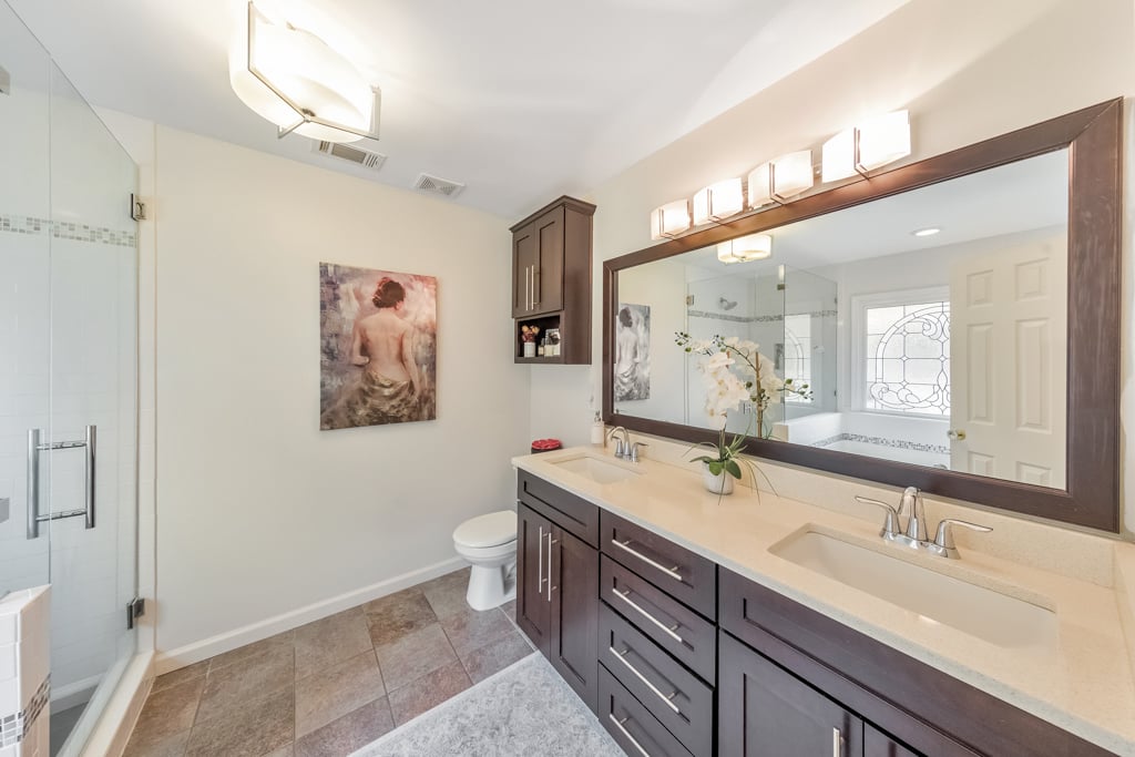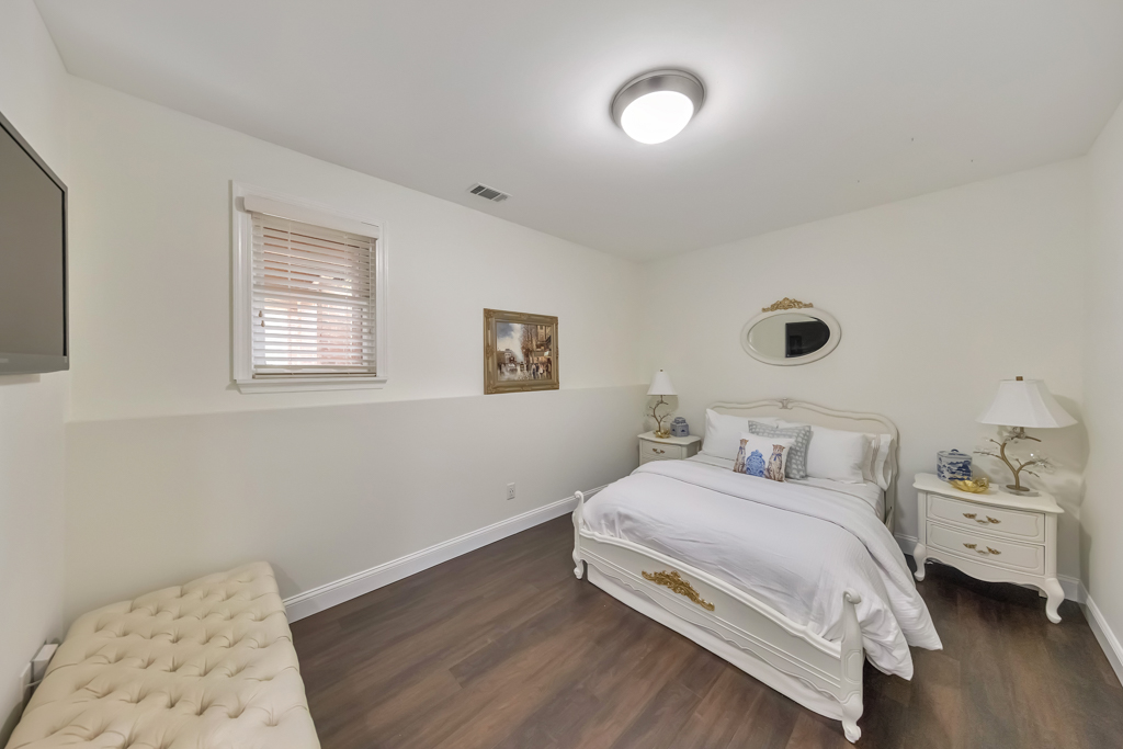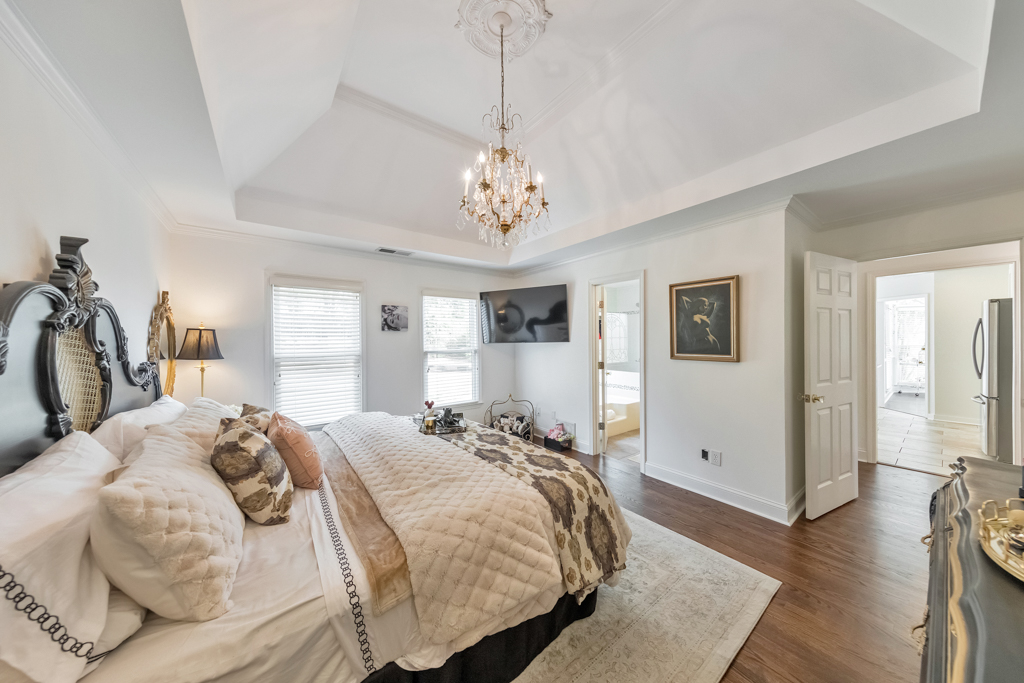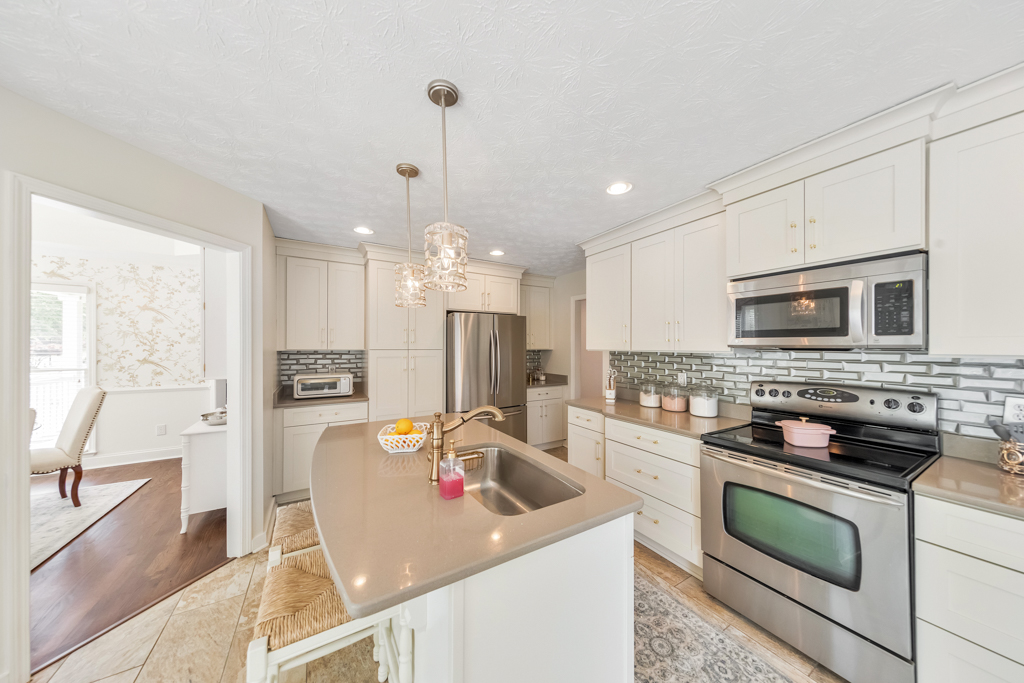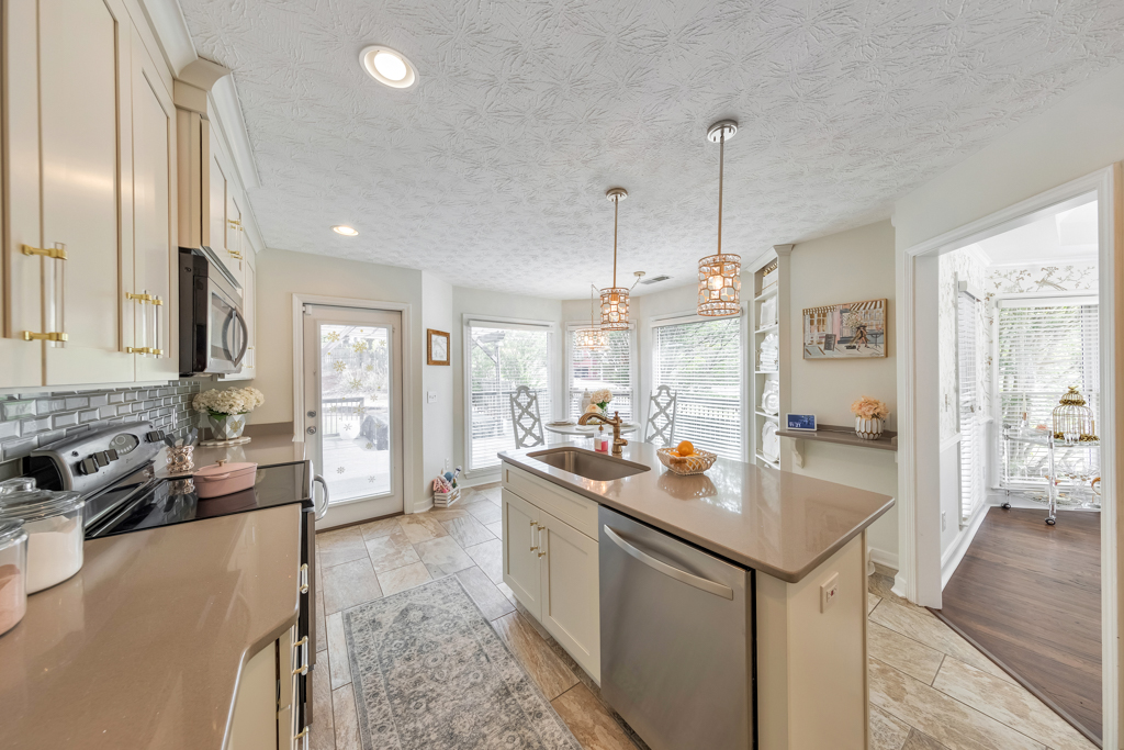 Welcome home to this amazing 5-bedroom, 3 full bath ranch with a fully finished basement, nestled on a desirable corner lot in the sought-after Saint Martins Cove community in beautiful Lawrenceville. From the moment you arrive, you'll be charmed by the inviting wraparound porch, ideal for relaxing mornings or evening gatherings. Inside, you'll find a bright and open layout highlighted by vaulted ceilings in the family room and a stunning white brick fireplace that serves as the centerpiece of the living space. Beautiful hardwood floors flow throughout the main and upper levels, while the finished basement features durable and stylish luxury vinyl plank flooring. The separate dining room boasts its own vaulted ceiling, creating an elegant space for entertaining. The eat-in kitchen is a true standout, complete with quartz countertops, stainless steel appliances, updated lighting, an island, a stylish backsplash, and custom cabinetry in a soft alabaster finish. A large bay window fills the space with natural light and offers a lovely view of the back deck and level, private fenced yard, perfect for enjoying indoor-outdoor living. Retreat to the spacious primary suite featuring a trey ceiling, double vanity bathroom, a huge walk-in closet, and a spa-like bath with a separate whirlpool tub and a frameless glass shower. There is also a bedroom on the upper level, perfect for family, guests, or the ideal spot for a home office. The fully finished basement is ideal for multi-generational living or guests, offering a complete in-law suite with its own kitchen, den, bedroom, and full bath. This home truly has it all-space, style, and versatility-in a prime Lawrenceville location. Don't miss your opportunity to make it yours!