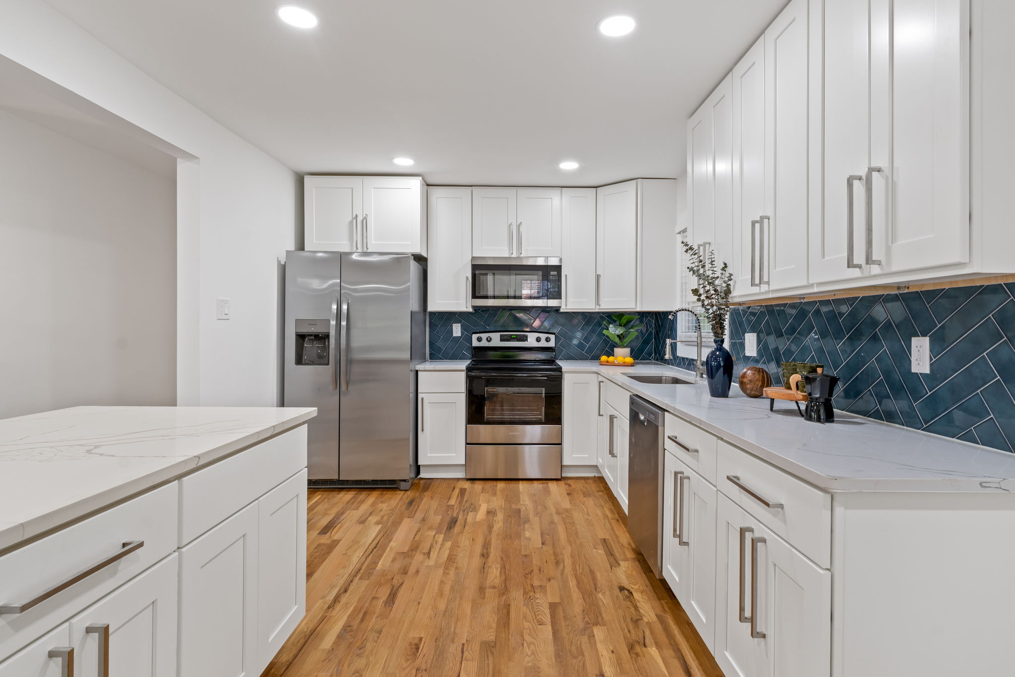 Welcome to this beautiful 3 bedroom, 2 bathroom fully remodeled ranch in the heart of Decatur! Every detail has been thoughtfully updated—everything is new, including the HVAC, windows, gutters, driveway, electrical system, decks, fence, water heater, and appliances. Step inside to an open and modern layout that’s perfect for today’s lifestyle. The fireside family room flows seamlessly into the open concept dining area and the stunning kitchen, featuring white cabinets, stone counters, stainless steel appliances, and a center island with seating. The primary suite offers a stylish accent wall, a luxurious ensuite bathroom with double vanities, a sleek glass shower, and a spacious walk-in closet. Two generously sized secondary bedrooms share a beautifully updated hall bathroom. Enjoy two rear decks—one private deck off the primary bedroom and another off the kitchen—overlooking a large fenced backyard ideal for entertaining, relaxing, or play. Conveniently located just minutes from Downtown Decatur, Downtown Atlanta, Hartsfield-Jackson Airport, and major roadways, with no HOA and close proximity to great shopping and dining—this home truly has it all!
