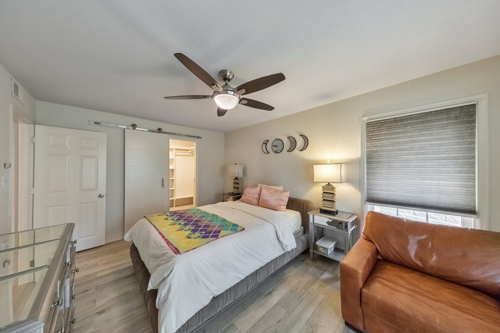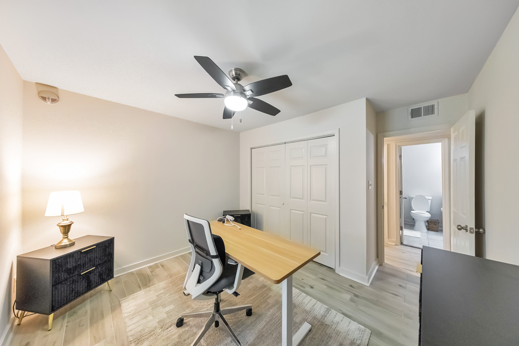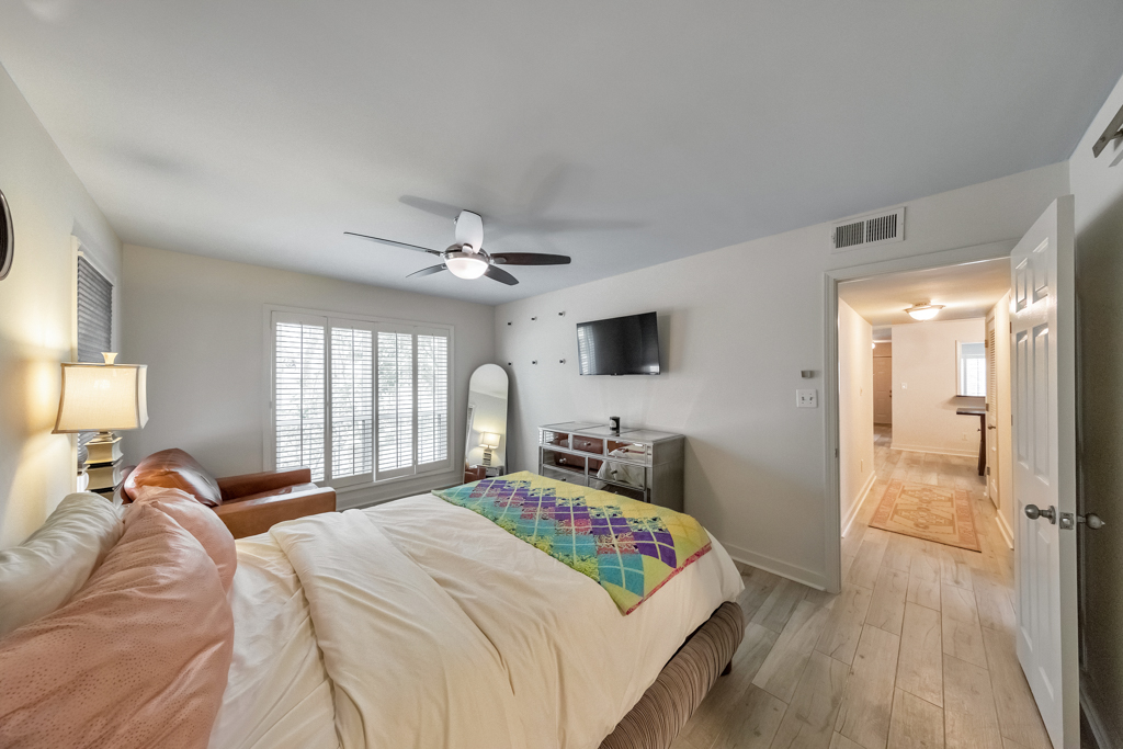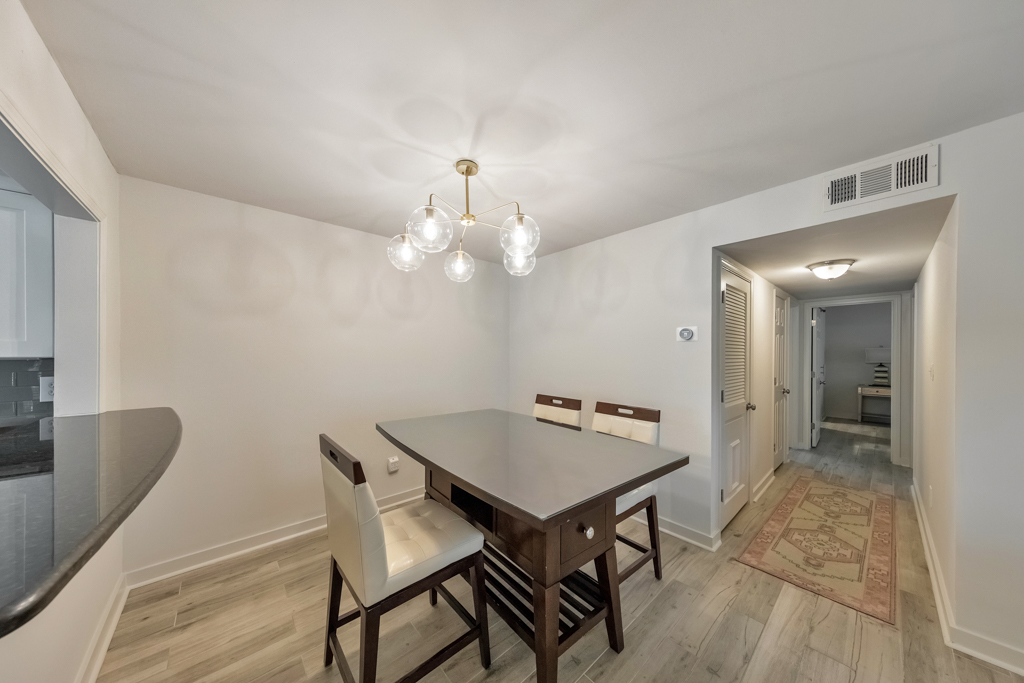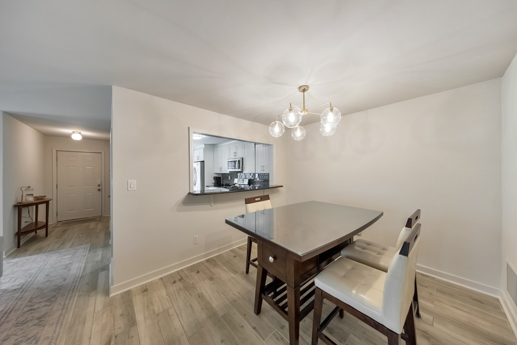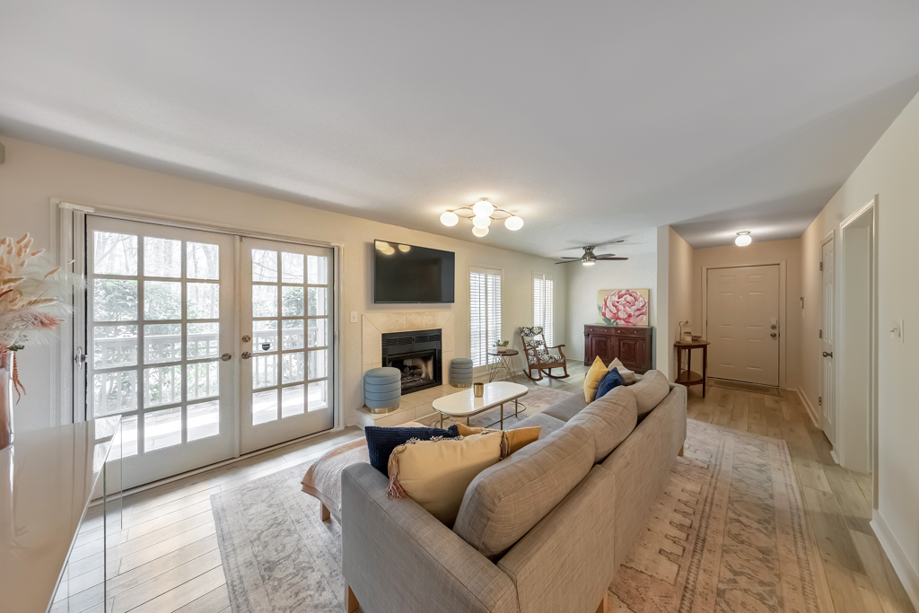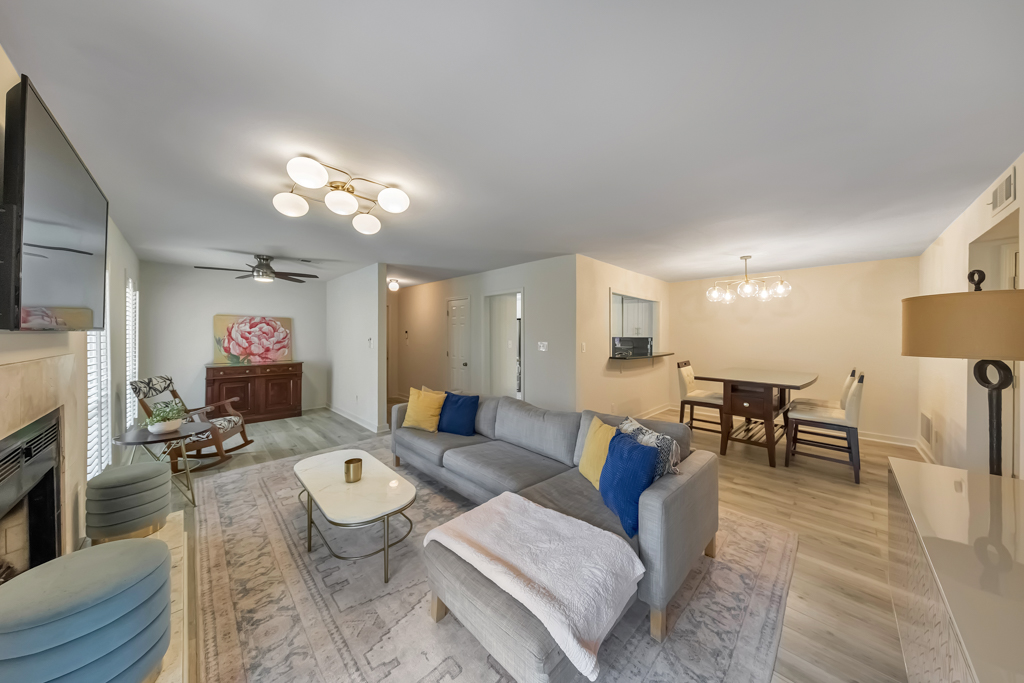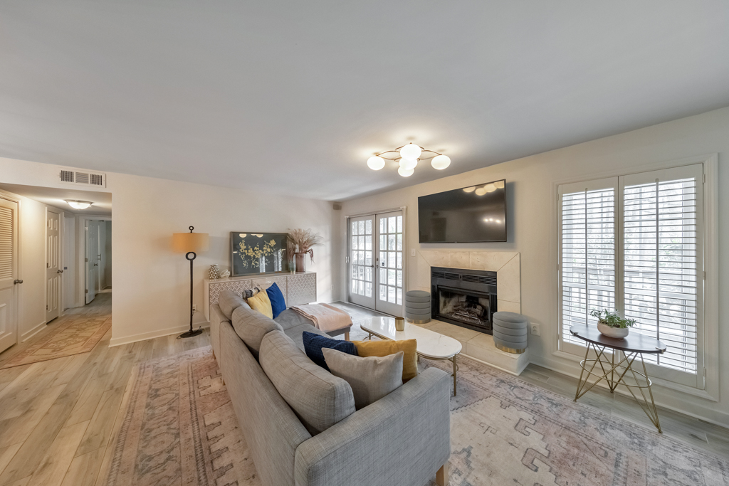Don't miss this one! Practically giving it away for a quick sale, check the comps! Seller also contributing 6 months of HOA dues to new buyer. Fantastic updated 2 bedroom / 1 bathroom end unit on ground floor with no steps and an amazing covered private patio in gated community with pool. New floors, new paint, new lighting! Cozy up in front of the fireplace, flex nook for office space, eat-in area in kitchen, and nice sized primary walk in closet! Unit located all the way in the back of the neighborhood, wooded view, very quiet. Shows great! Will not be disappointed!