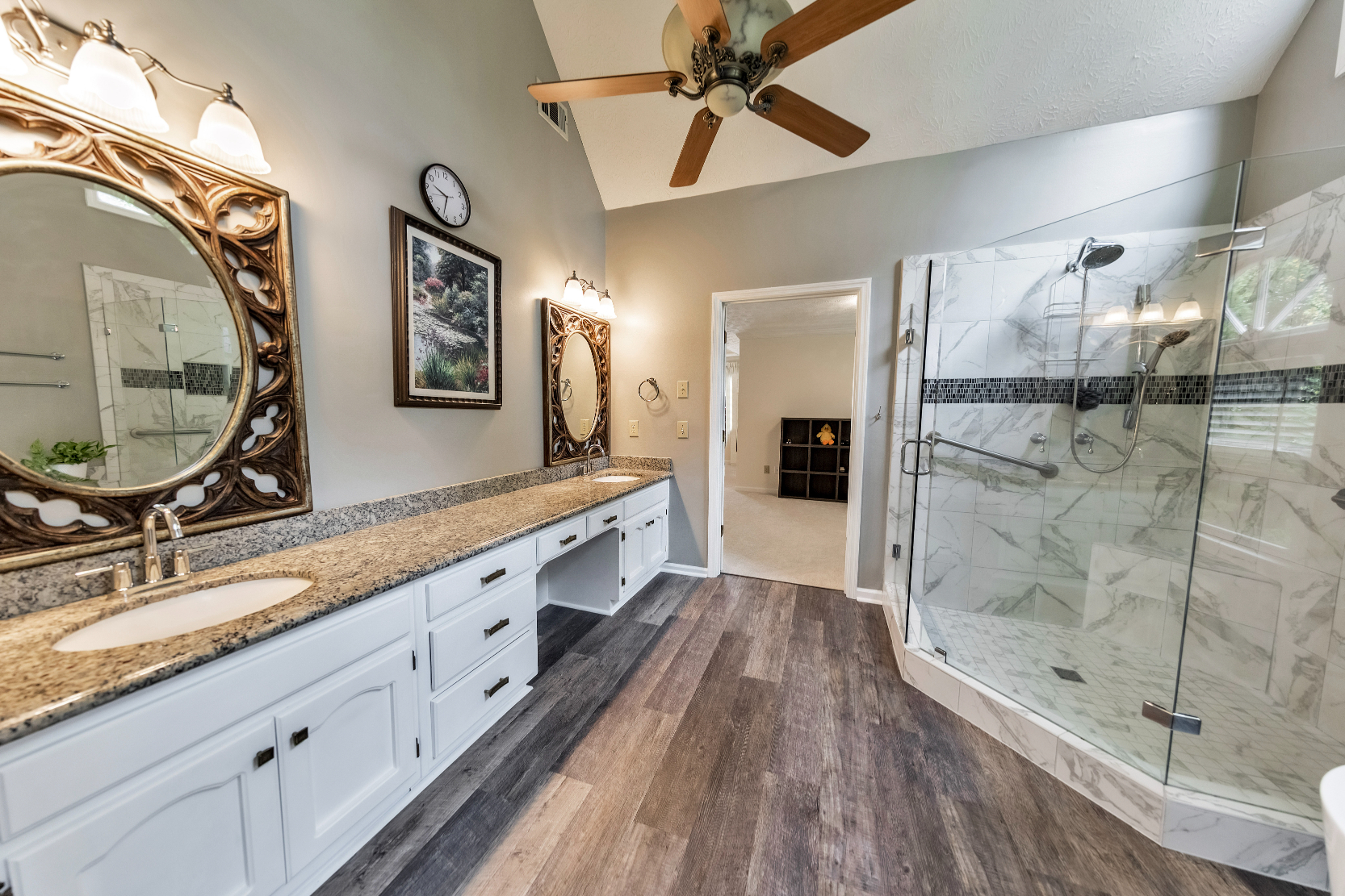 This timeless beauty blends elegance and comfort, offering the perfect place to call home! Step inside to a stunning 4 bed / 3.5 bath brick-front residence in the highly sought-after Pope High School district. A welcoming two-story foyer opens to hardwood floors flowing throughout the main level, complemented by updated windows with a lifetime warranty, fresh interior paint, new carpet, and updated lighting throughout most of the home. The fireside family room, accented by bay windows, a wood-burning fireplace with gas starter, and a built-in wet bar, creates a warm gathering space. The elegant kitchen features granite countertops, an island for extra prep space, and updated appliances including a dishwasher, oven, and microwave. Upstairs, the oversized primary suite is a true retreat with its own sitting area, large walk-in closet, extra storage space, and a spa-like bath with a new tub and flooring. The hallway bath has also been upgraded with a new shower and bidet. Both bathrooms come with a lifetime warranty, offering peace of mind. The finished terrace level expands living space with hardwood floors, a granite wet bar, rec room, full bath, and ample storage. A versatile bonus room, currently set up as an office, features new carpet and could easily serve as an additional bedroom. Outdoor living is equally impressive, featuring a freshly painted exterior, refreshed deck and underdeck, covered patio, new fire pit, and a fully fenced backyard with a vegetable garden. A 50-year architectural shingle roof was installed in November 2025, ensuring long-term durability.Additional updates include a new electrical panel, two new thermostats, HVAC inspection and repair, added barn doors in the office, garage wire shelving, a basement keypad door lock, landscaping enhancements, power washing, and a termite bait system bond professionally maintained by North Fulton Pest Solutions. Don’t miss the opportunity to make this exceptional property your own!