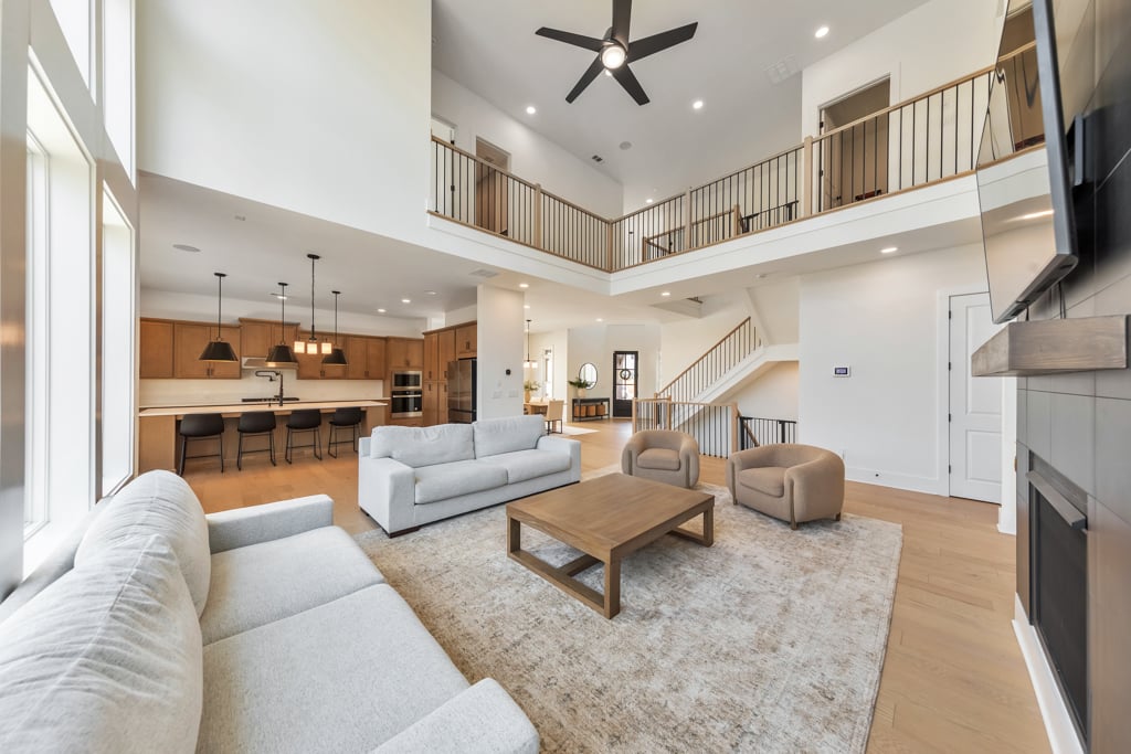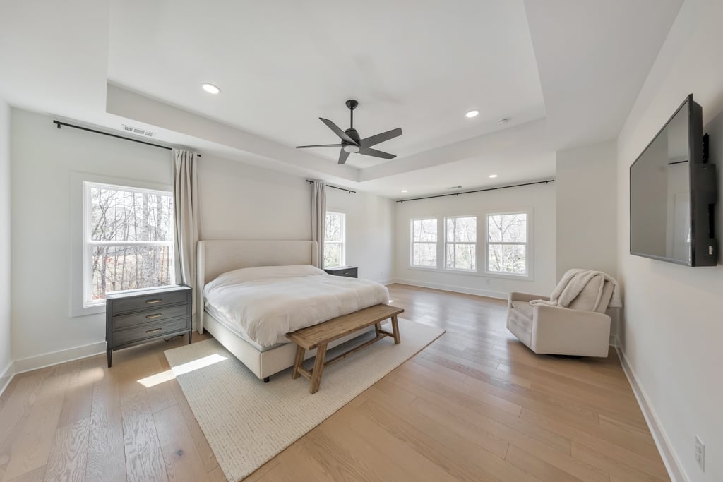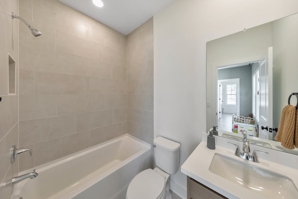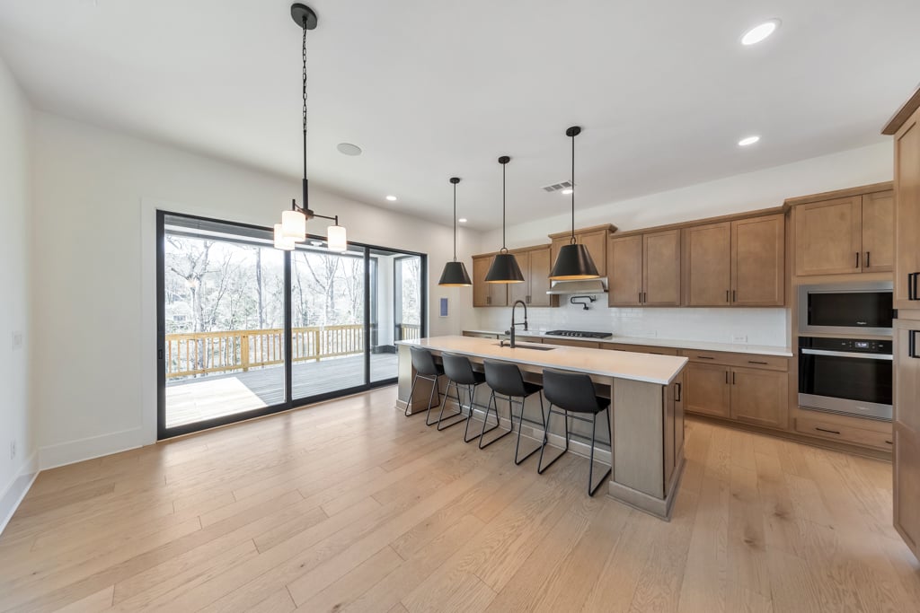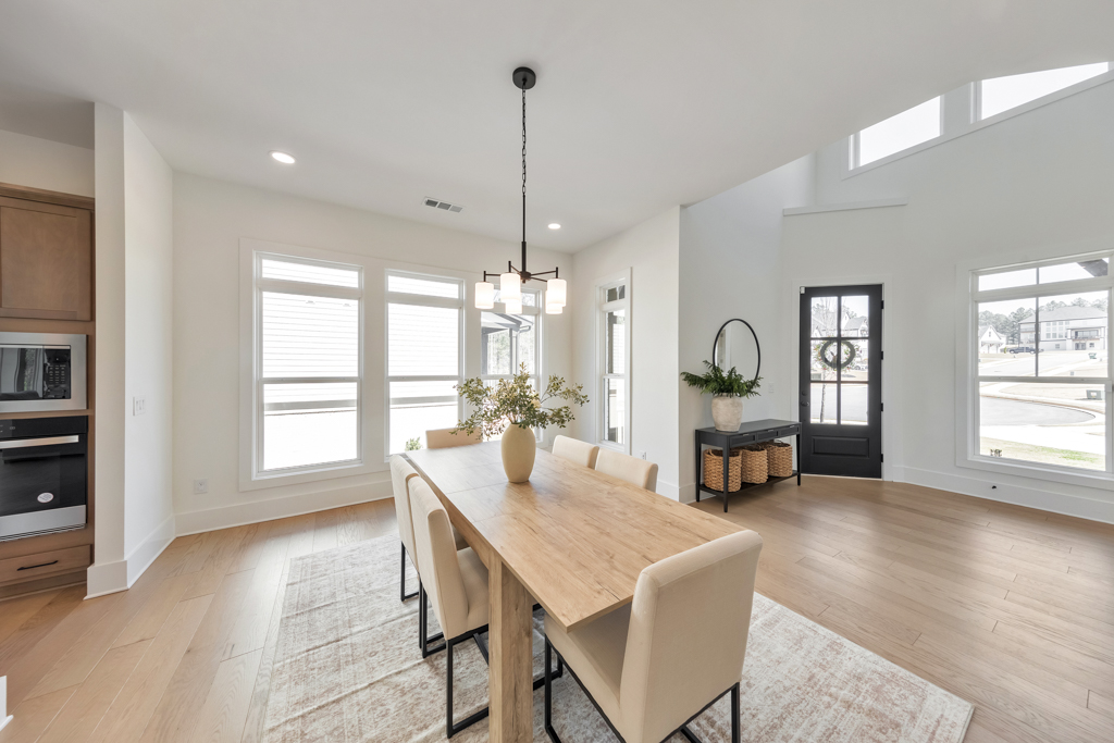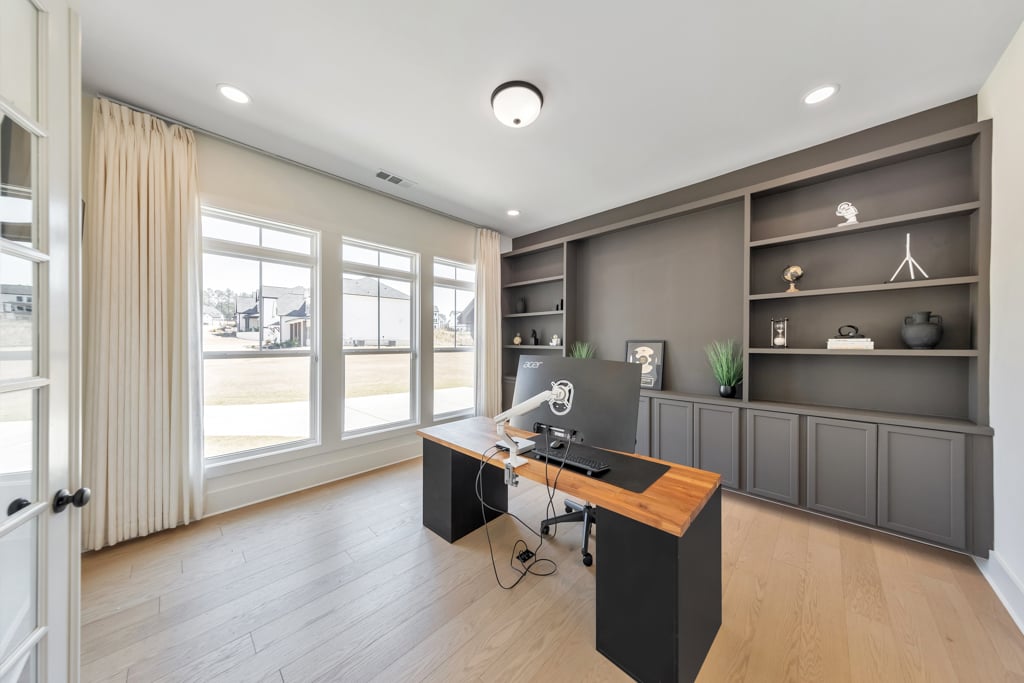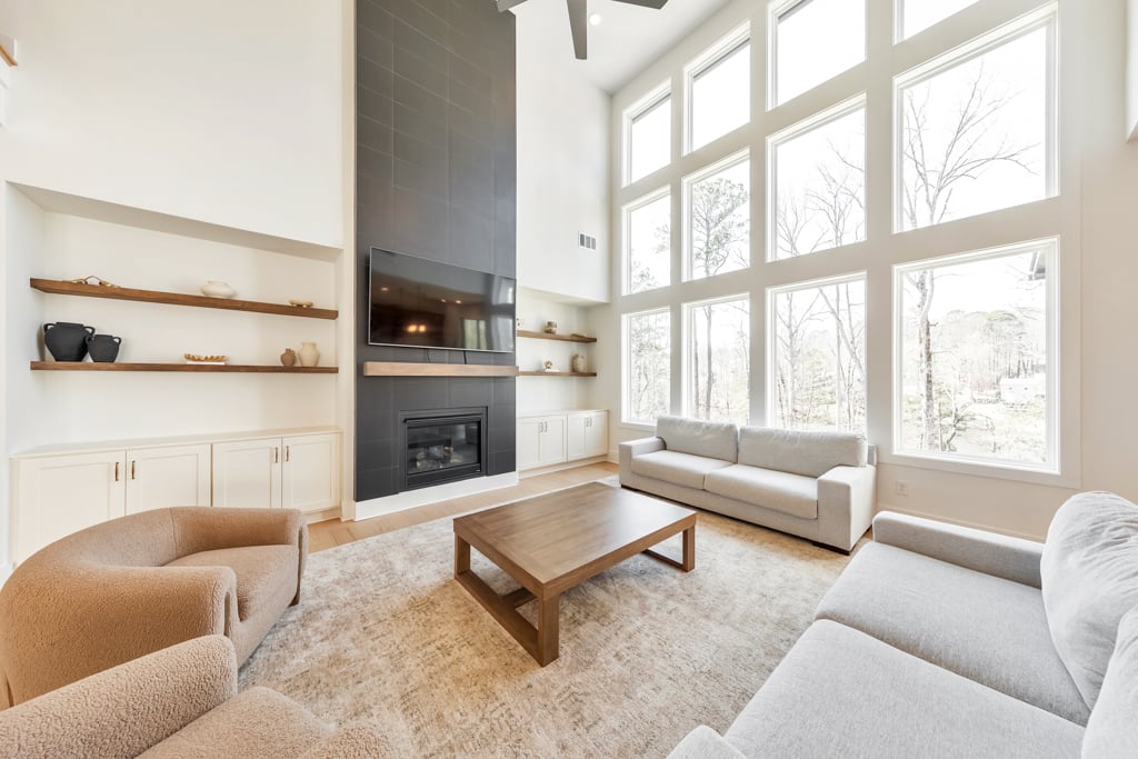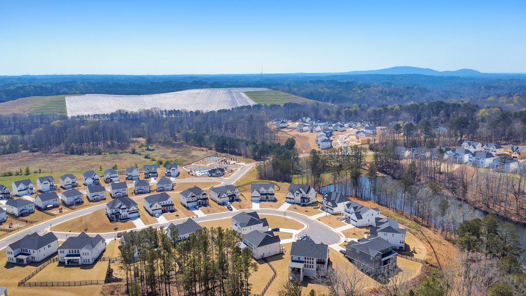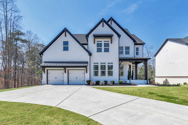 Welcome home to this exquisite 5 bedroom, 4 bathroom home built in 2024 in the highly sought-after Holly Farm community, perfectly situated on a private cul-de-sac lot with stunning lake views. This beautifully maintained home showcases exceptional craftsmanship, designer details, and a bright, airy floorplan filled with natural light, complemented by hardwood flooring throughout and a wired whole-home audio system for sound throughout. A charming covered front porch welcomes you into a grand two-story foyer, setting the tone for the elegance found throughout the home. Just off the entry, a private office with French doors and custom built-in bookshelves provides the perfect work-from-home space, while the separate dining room flows into the heart of the home—the modern kitchen. Designed for both everyday living and entertaining, the kitchen features abundant cabinetry, stone countertops, a large center island with seating, stainless steel appliances, and a sunny breakfast area. Accordion doors open from the kitchen to the covered deck, creating a seamless indoor/outdoor flow ideal for entertaining. The impressive two-story fireside family room is a true showstopper, complete with built-in bookshelves and a dramatic wall of windows that frame picturesque lake views. A secondary bedroom and full bathroom on the main level offer flexibility for guests or multigenerational living. Upstairs, the oversized primary suite is a luxurious retreat featuring a sitting area, tray ceilings, and a spa-inspired ensuite bath with dual vanities, a soaking tub, a sleek glass double shower, and a spacious walk-in closet with custom cabinetry. Three additional generously sized bedrooms, each with walk-in closets, share two full bathrooms on this level. A conveniently located upper-level laundry room with a sink adds to the home’s thoughtful design. The full unfinished basement offers endless potential to expand and customize to fit your lifestyle, and already includes a partially finished workout area. Outdoor living is equally impressive, with two covered decks on the main level and a covered patio below—perfect for relaxing or entertaining while enjoying peaceful lake views. The fenced-in backyard is spacious and level, offering ample room for a future pool while still leaving plenty of green space to enjoy. Additional features include an attached two-car garage and access to Holly Farm’s exceptional amenities, including a community pool, pickleball courts, pool house, firepit area, and nature trail. Ideally located with easy access to Downtown Woodstock, Downtown Milton, Downtown Alpharetta, and a variety of shopping, dining, and entertainment options, this home truly offers the best of luxury, comfort, and convenience.