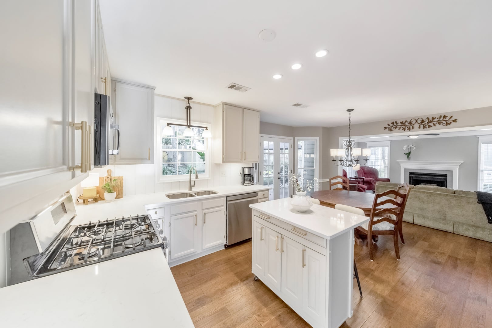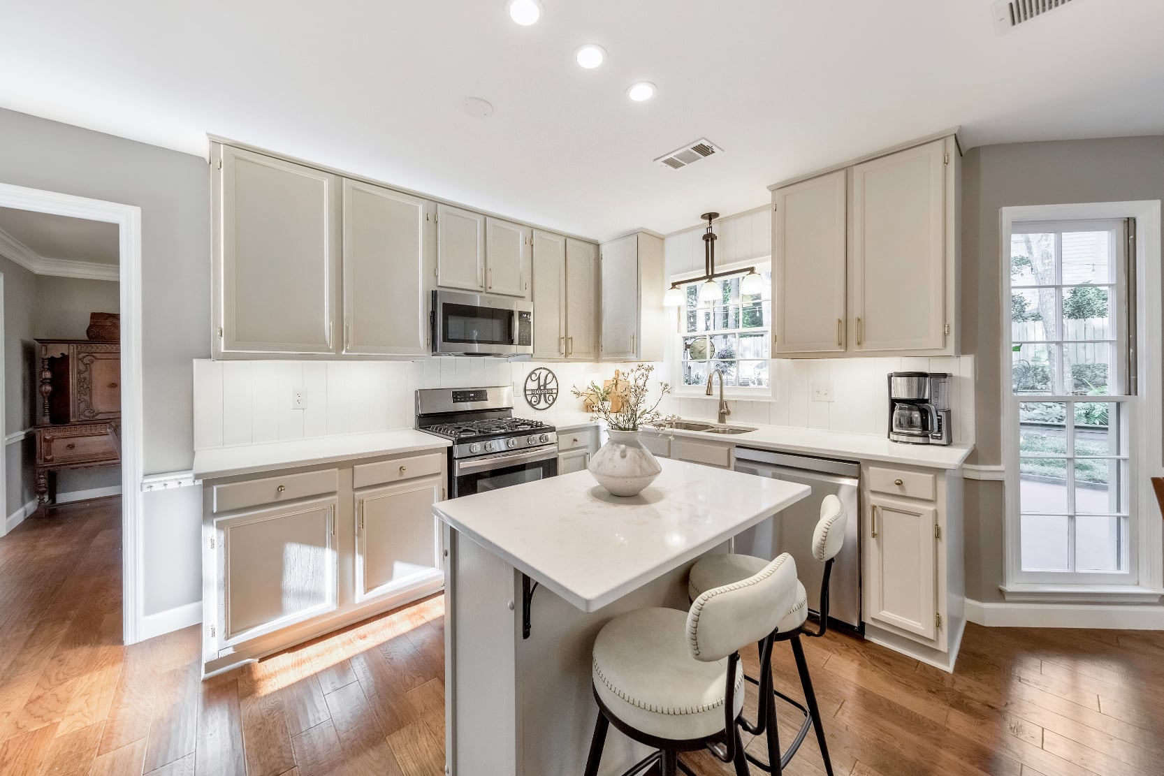 Discover the perfect family haven in a highly sought-after Marietta location! Meticulously maintained with updates throughout, this elegant 5 bed / 2.5 bath brick-front home is nestled on a corner lot in a quiet cul-de-sac within the Woodington neighborhood. Step inside to an inviting two-story foyer that opens to a formal sitting room and dining room, ideal for hosting and entertaining. The beautifully renovated kitchen serves as the heart of the home, showcasing quartz countertops, stainless steel appliances including a brand-new dishwasher and microwave, a spacious island with breakfast bar seating, Rev-A-Shelf pull-out shelving, under-cabinet lighting, and an open view into the fireside living room with a cozy gas log fireplace. The main level is filled with plenty of natural light, highlighting thoughtful updates such as engineered wood flooring, a newly refreshed powder room, and modernized stairs with updated balusters. Upstairs, the primary suite features tray ceilings, a large walk-in closet, and a gorgeous en-suite bath renovated in 2020 with a marble double vanity, shiplap accent wall, frameless glass shower, and a freestanding soaking tub. Three spacious secondary bedrooms share an updated hall bath. The third level serves as a fifth bedroom, offering generous space and flexibility. This home has been meticulously maintained with countless upgrades, including newer carpet, all new cordless blinds, upgraded baseboards, fresh interior paint, new hardware throughout, smoothed ceilings, and higher-profile toilets in every bath. Major systems have been updated as well with two 2021 HVAC units and smart thermostats, a newer water heater, 2021 PVC sewer line, and 2024 gutters, giving you peace of mind for years to come. Outside, enjoy the expansive back patio overlooking a beautifully landscaped and fenced backyard, perfect for entertaining, grilling, or simply relaxing by the fire pit. Additional highlights include a storage shed, a newer driveway with extra parking pad, and updated garage doors. Lovingly maintained by the original owners, this move-in ready home combines timeless design, thoughtful updates, and modern comfort in an unbeatable location.