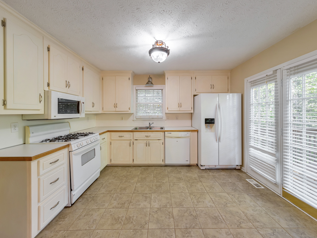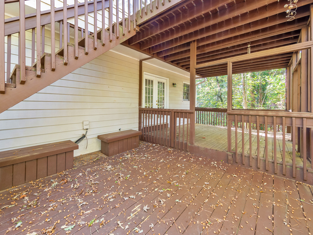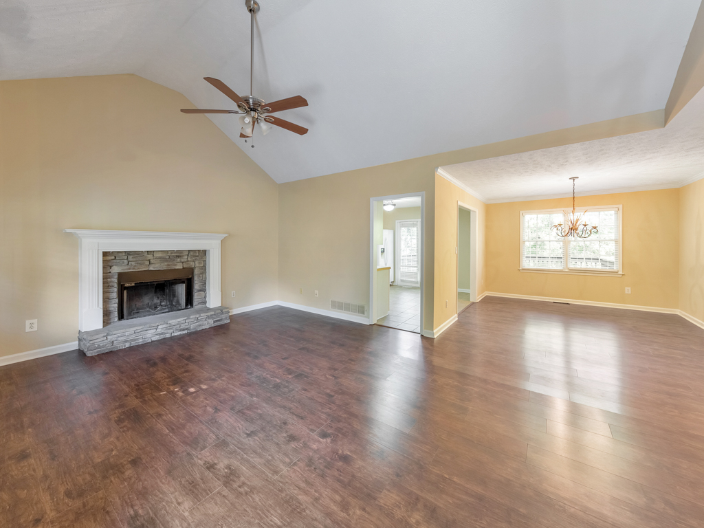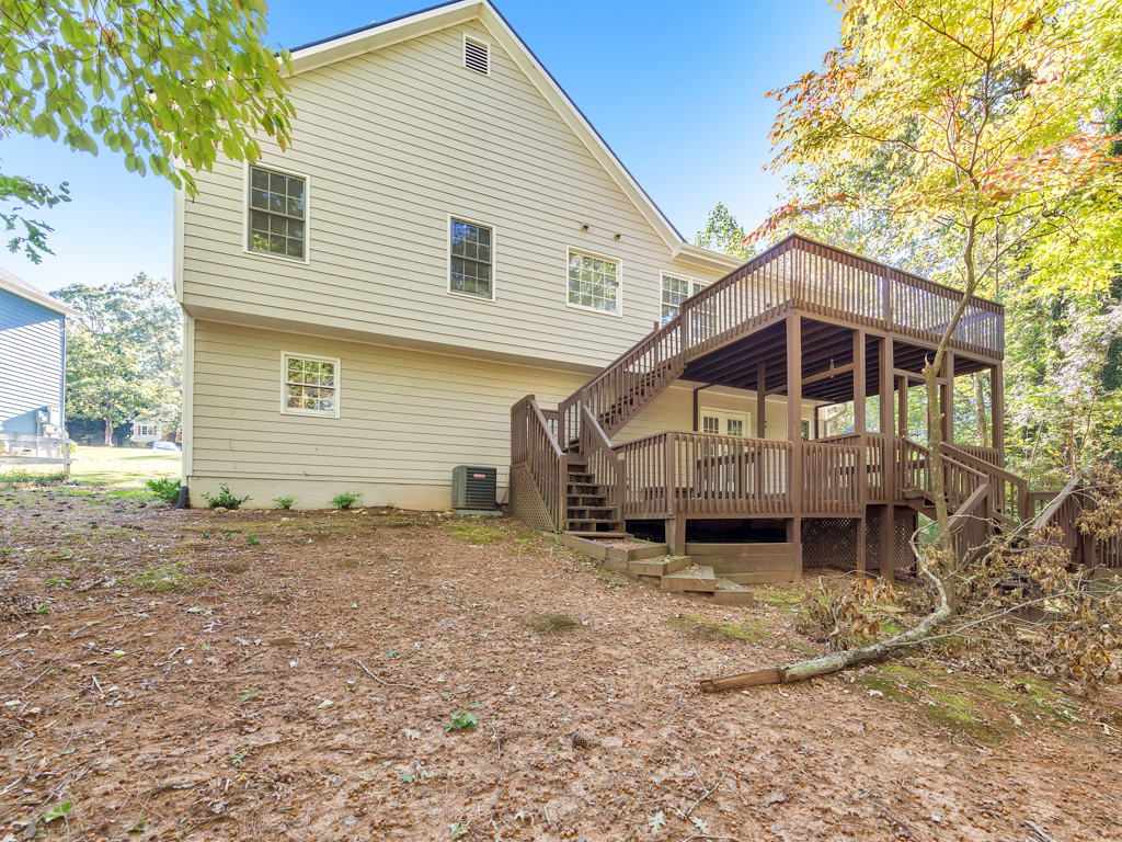 Welcome to this charming 4 bedroom, 3 bathroom home nestled on a peaceful wooded cul-de-sac lot in the desirable Queensbury Orchard community in the heart of Acworth. New (2024) roof, carpet and paint throughout! Set on almost half an acre, this home combines comfort, privacy, and convenience in one inviting package. Relax on the cozy covered front porch before stepping inside to the fireside family room featuring vaulted ceilings and a warm, open feel. The separate dining room flows seamlessly to the bright kitchen, complete with white cabinets and direct access to the back deck—perfect for entertaining or enjoying quiet mornings outdoors. The primary bedroom on the main level boasts tray ceilings, a walk-in closet, and an ensuite bathroom with double vanities, a soaking tub, and a separate shower. Two spacious secondary bedrooms and a full hall bath complete the main level, along with a conveniently located laundry closet. The lower level offers a large bonus room or fourth bedroom with its own full bathroom, ideal for guests, a home office, or a media space. Outdoor living is a highlight here, with both an open-air deck on the main level and a covered deck below overlooking the tranquil, wooded backyard. Located in the sought-after Etowah High School district, this home offers no HOA and easy access to Downtown Acworth, Downtown Woodstock, Lake Allatoona, and a variety of shopping and dining options. You don't want to miss this one!