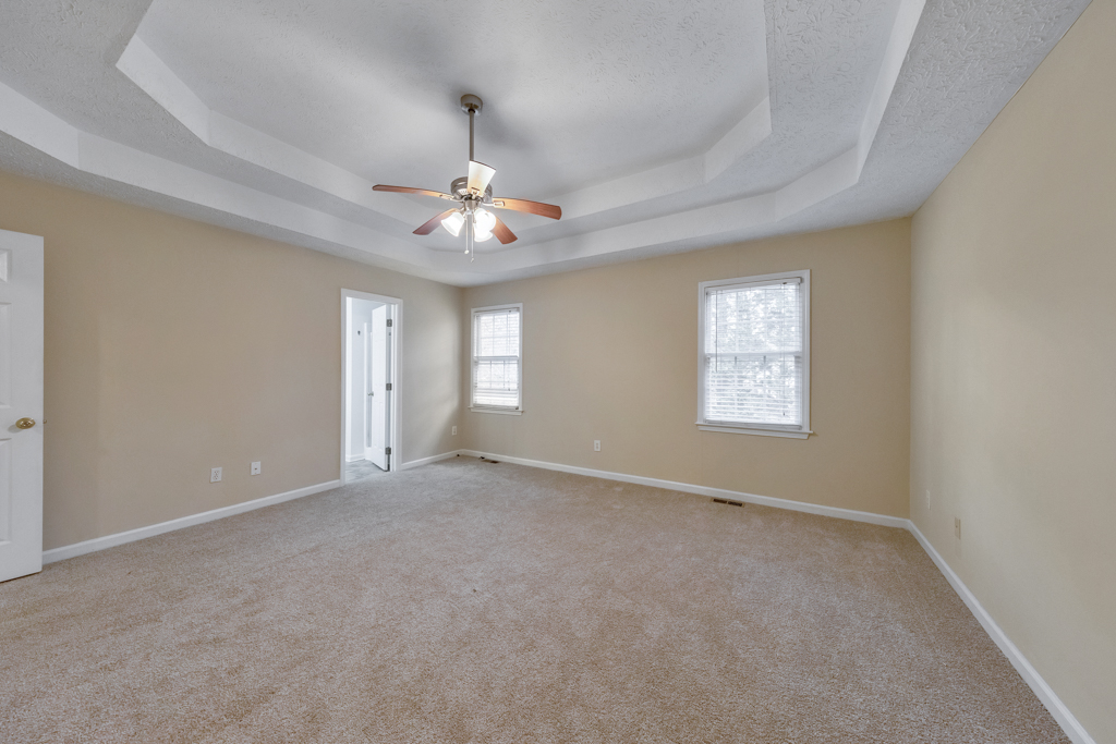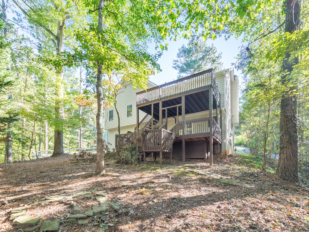 Buyer can receive a $3,079 lender credit toward closing costs with financing through Hunter McElroy at Supreme Lending! Welcome to this beautifully updated 4 bedroom, 3 bathroom home tucked away on a peaceful wooded cul-de-sac lot in the desirable Queensbury Orchard community in the heart of Acworth. Set on almost half an acre, this inviting property blends comfort, privacy, and convenience—made even better with a new (2024) roof, freshly installed carpet and paint, upgraded kitchen and primary bathroom with quartz countertops, new lighting and hardware, and brand-new stainless steel appliances. A charming covered front porch welcomes you inside to the fireside family room, where vaulted ceilings and abundant natural light create a warm, open atmosphere. The separate dining room flows into the bright, newly refreshed kitchen featuring white cabinets, upgraded finishes, and direct access to the back deck—perfect for morning coffee or entertaining family and friends. The primary bedroom on the main level offers tray ceilings, a walk-in closet, and a newly upgraded ensuite bathroom complete with quartz counters, double vanities, a soaking tub, and a separate shower. Two spacious secondary bedrooms and a full hall bath, along with a conveniently located laundry closet, complete the main floor. The lower level provides a large bonus room or fourth bedroom with its own full bathroom—ideal for guests, a home office, or a media room. Outdoor living is a highlight, with both an open-air deck on the main level and a covered deck below overlooking the tranquil, wooded backyard. Located in the sought-after Etowah High School district with no HOA, this home offers easy access to Downtown Acworth, Downtown Woodstock, Lake Allatoona, and a wide range of shopping and dining options. This beautifully upgraded home is truly move-in ready—don’t miss it!