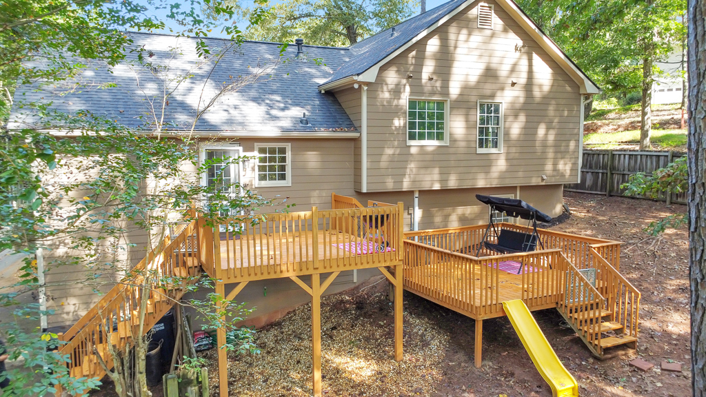 Buyer can receive a $3,400 lender credit toward closing costs with financing through Hunter McElroy at Supreme Lending! Welcome to this beautifully maintained 5 bedroom, 3 bathroom split-level home in the sought-after Queensbury Orchard community of Acworth. A charming covered front porch invites you inside to a fireside family room with vaulted ceilings and a separate dining room with elegant tray ceilings. The updated kitchen offers abundant cabinetry, ample counter space, and a convenient pantry. Upstairs, the primary suite features tray ceilings, a walk-in closet, and a renovated bath with double vanities, while two spacious secondary bedrooms share a full hall bath. The finished basement is perfect for an in-law suite or private guest retreat, complete with a kitchenette, full bathroom, and two bedrooms. Enjoy outdoor living on the two expansive decks—one on the main level and one on the terrace level—overlooking the spacious fenced backyard. Additional highlights include an attached 2-car garage and a peaceful cul-de-sac lot. Located in the desirable Etowah High School district, this home offers easy access to Downtown Acworth, Downtown Woodstock, Lake Allatoona, and a variety of shopping and dining options.