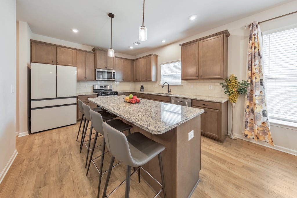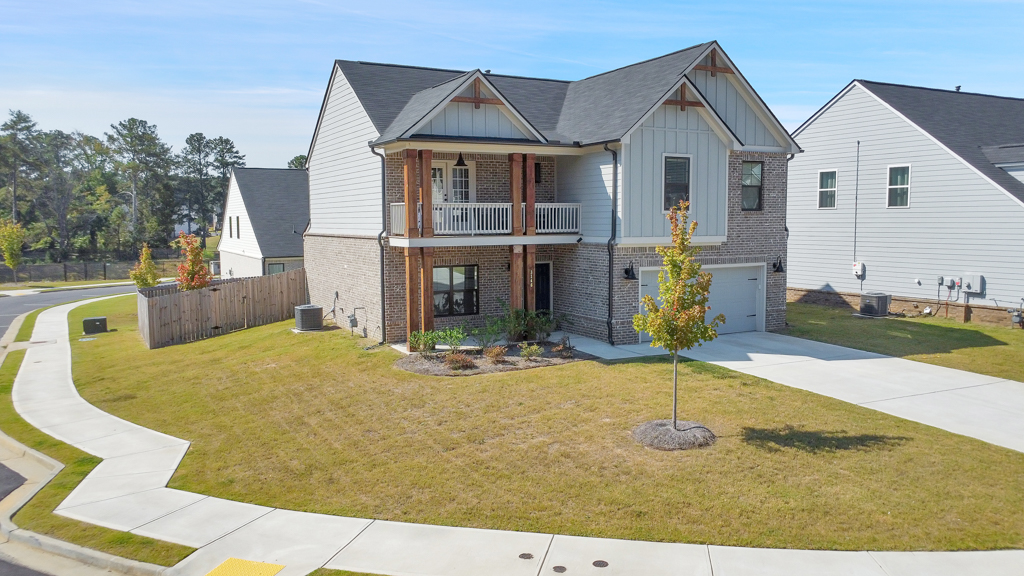 Buyer can receive a $3,720 lender credit toward closing costs with financing through Hunter McElroy at Supreme Lending! Built in 2023, this stunning 4 bedroom, 2.5 bathroom home offers modern design and thoughtful details throughout. Perfectly situated on a desirable corner lot, a charming covered front porch welcomes you into a bright foyer that flows to the separate dining room. The chef’s kitchen boasts stone countertops, a center island with seating, a sunny breakfast area, a pantry, and sleek finishes, and it opens directly to the fireside family room—ideal for relaxed entertaining. Upstairs, the spacious primary suite features tray ceilings, a spa-like ensuite with double vanities, a soaking tub, a separate shower, and a large walk-in closet. Three generously sized secondary bedrooms share a full bath, and one includes a private covered front deck—perfect for morning coffee. Relax outdoors on the covered back patio overlooking the spacious fenced yard, or enjoy the convenience of the attached 2-car garage. Located in the desirable McEachern High School district, this home offers easy access to major roadways, Marietta Square, and abundant shopping and dining options. Move-in ready and perfectly located, this property is a must-see!