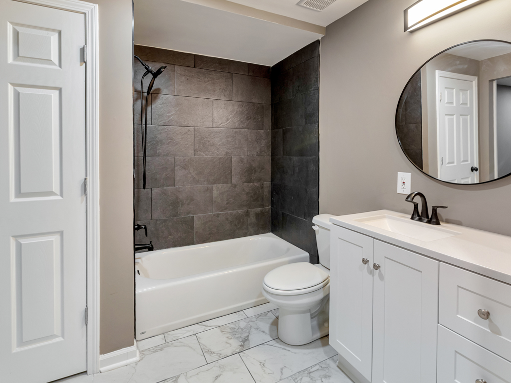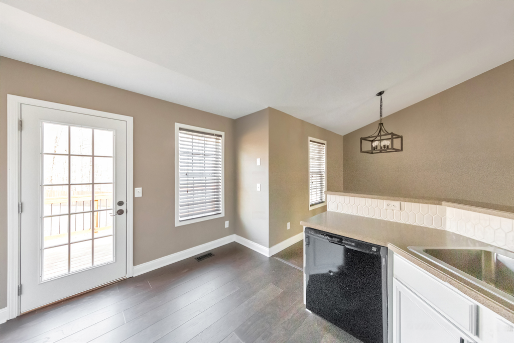 Beautifully maintained and thoughtfully upgraded, this inviting 3 bedroom, 3 bathroom ranch sits on a peaceful, private lot of over half an acre in Farmington Drive. A large covered front porch welcomes you inside to the fireside family room, where vaulted ceilings create a bright and airy atmosphere. The open concept dining area flows seamlessly into the updated kitchen featuring white cabinetry, stainless steel appliances, a breakfast bar, and a convenient laundry closet. The main level primary suite offers a true retreat with tray ceilings, a spacious walk-in closet, and a spa-like ensuite bathroom complete with double vanities, a separate soaking tub, and a frameless glass shower. Two generously sized secondary bedrooms share a full hall bathroom. The finished basement expands your living space with a full bathroom and two versatile flex rooms—perfect for a home gym, playroom, office, or additional bedrooms—along with direct access to the attached two-car garage. Step outside to the rear deck overlooking the expansive fenced-in backyard—perfect for relaxing, entertaining, or enjoying the serene setting. Come see it today!