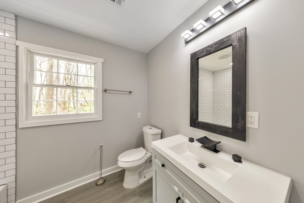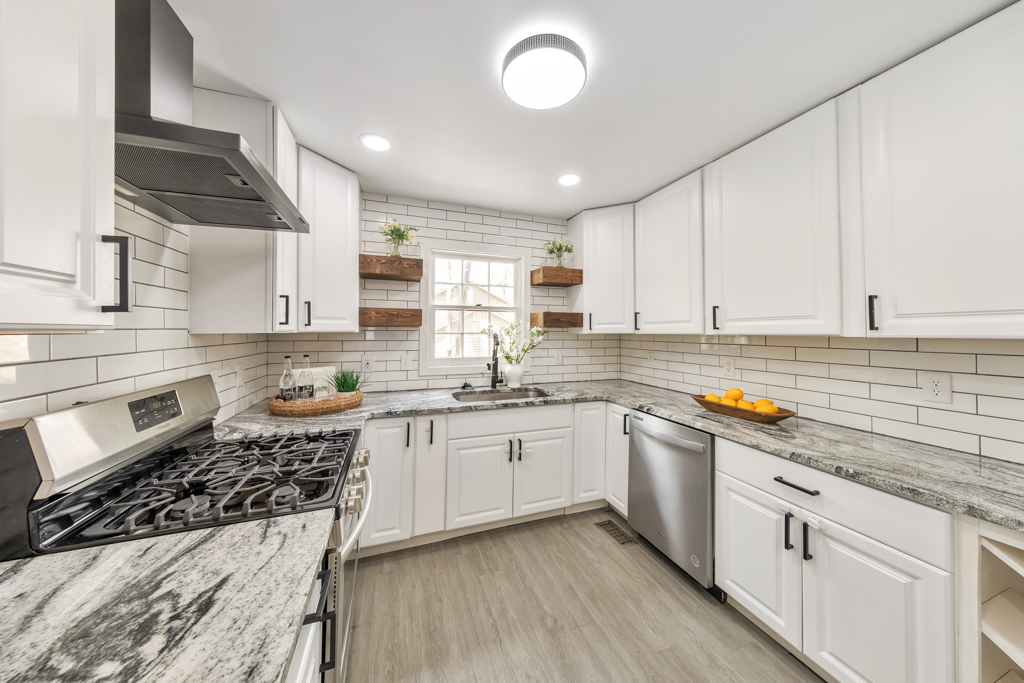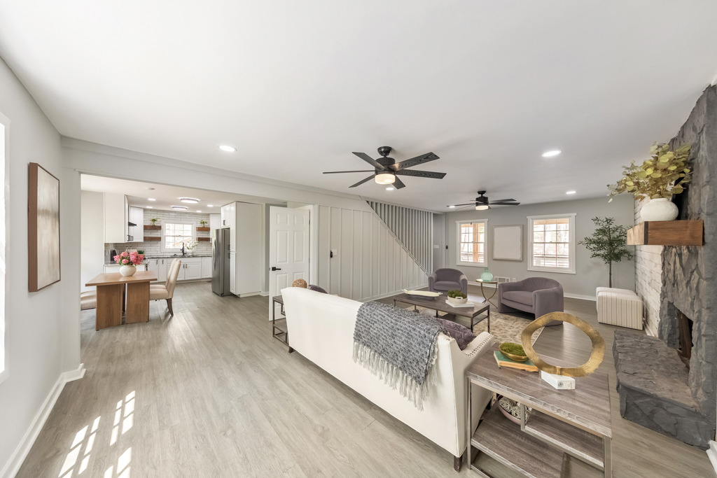Welcome home to this lovely 4 bedroom / 3 bathroom gem in the desirable Canterbury North community, where charm meets modern updates and everyday comfort. From the inviting covered rocking chair front porch to the thoughtfully designed interior, this home has been beautifully maintained and is truly move-in ready. Step inside to a cozy fireside family room that seamlessly flows into the updated kitchen, featuring quartz countertops, white cabinetry, stainless steel appliances, subway tile backsplash, recessed lighting, and a sunny breakfast area—perfect for both daily living and entertaining. A convenient main level bedroom and full bathroom provide flexibility for guests or a home office. Upstairs, retreat to the spacious primary suite complete with a walk-in closet and a stylishly renovated ensuite bathroom. Two generously sized secondary bedrooms share a full hall bathroom with a tub/shower combo, offering comfort and functionality for family or guests. The finished basement expands your living space with a versatile bonus room ideal for a media room, home gym, playroom, or mancave, along with a dedicated laundry room and direct access to the attached 2-car garage. Enjoy outdoor living on the rear deck overlooking a peaceful, wooded, fenced backyard, with a covered patio below for additional entertaining space. Located with no HOA in the highly sought-after Sprayberry High School district, this home offers easy access to I-575 and I-75, Downtown Kennesaw, East Cobb, Downtown Woodstock, and a wide array of shopping, dining, and entertainment options. This is the one you’ve been waiting for!