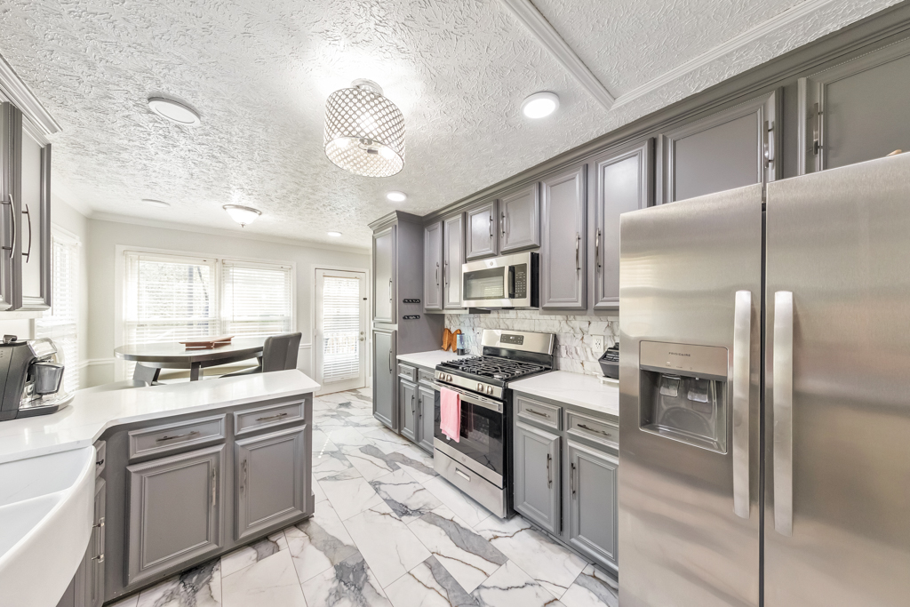 Welcome to this beautifully updated 4 bedroom / 3 bathroom split-level home in the desirable Etowah Valley Estates community! Step inside to a bright and airy fireside family room featuring soaring vaulted ceilings and abundant natural light, creating a warm and inviting space for everyday living and entertaining. A separate dining room with charming bay windows flows seamlessly into the updated kitchen, complete with stone countertops, stainless steel appliances, a farmhouse sink, and a cozy breakfast room. Upstairs, the spacious primary suite offers tray ceilings and a private ensuite bathroom with dual vanities, a separate shower, and a relaxing soaking tub. Two generously sized secondary bedrooms share a full hall bathroom, providing comfortable accommodations for family or guests. The lower level adds incredible versatility with a laundry room featuring a utility sink, a flexible bonus room perfect for a home office, playroom, or gym, and an additional bedroom with walk-out access to the backyard and its own ensuite bathroom—ideal for guests or multi-generational living. Step outside to your own private retreat! The fenced-in backyard is an entertainer’s dream with multiple decks, an above-ground pool, a charming treehouse, and plenty of greenspace to enjoy. With two separate driveways, an attached 2-car garage, and an additional carport perfect for a boat or extra storage, this home offers both convenience and functionality. Located just minutes from all the shopping, dining, and entertainment of Downtown Woodstock, with easy access to I-575, this home combines comfort, space, and an unbeatable location.