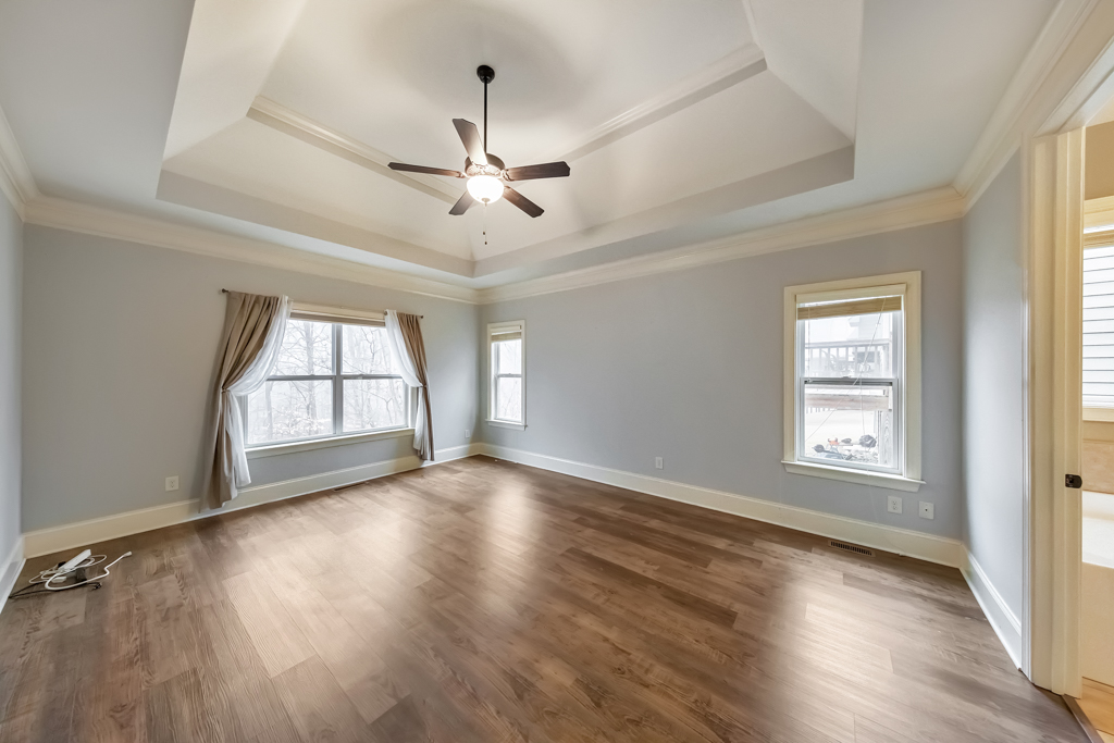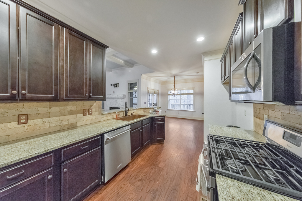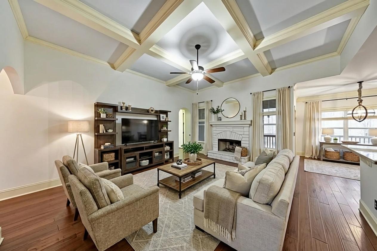 Welcome to this beautifully maintained 5 bedroom / 3 bathroom craftsman ranch in the desirable Chestnut Hills community! A charming covered front porch welcomes you into the bright, airy floorplan featuring a separate dining room with elegant coffered ceilings that flows seamlessly into the cozy fireside family room. The updated kitchen is perfect for everyday living and entertaining, offering granite countertops, stainless steel appliances, a pantry, and a sunny breakfast room. The oversized primary suite features tray ceilings, a spacious walk-in closet with direct access to the laundry room, and a spa-like ensuite with double vanities, a soaking tub, and a frameless glass shower. On the opposite side of the home, you’ll find three generously sized secondary bedrooms and two full bathrooms, providing comfort and privacy for family or guests. The partially finished basement adds valuable living space with an additional bedroom, while the unfinished area offers endless potential to customize to your needs. Enjoy outdoor living year-round with a screened-in porch and open deck off the main level, plus a covered patio on the terrace level overlooking the peaceful wooded backyard. Complete with an attached 2-car garage and access to community amenities including a pool, playground, and clubhouse, this home offers comfort, space, and convenience in a fantastic location close to shopping, dining, and major roadways.