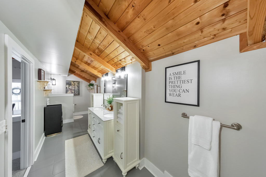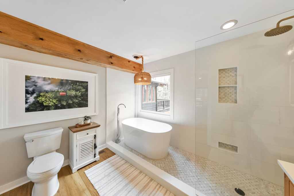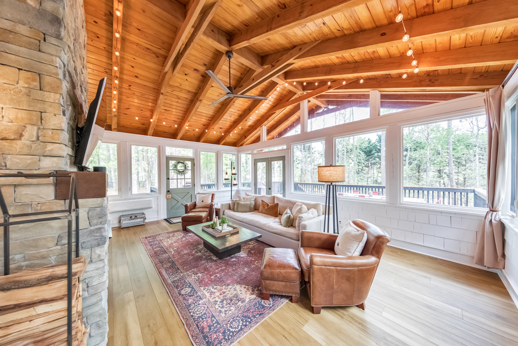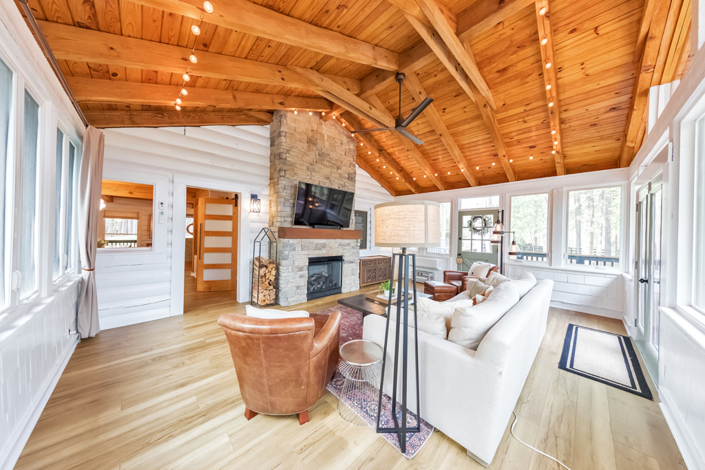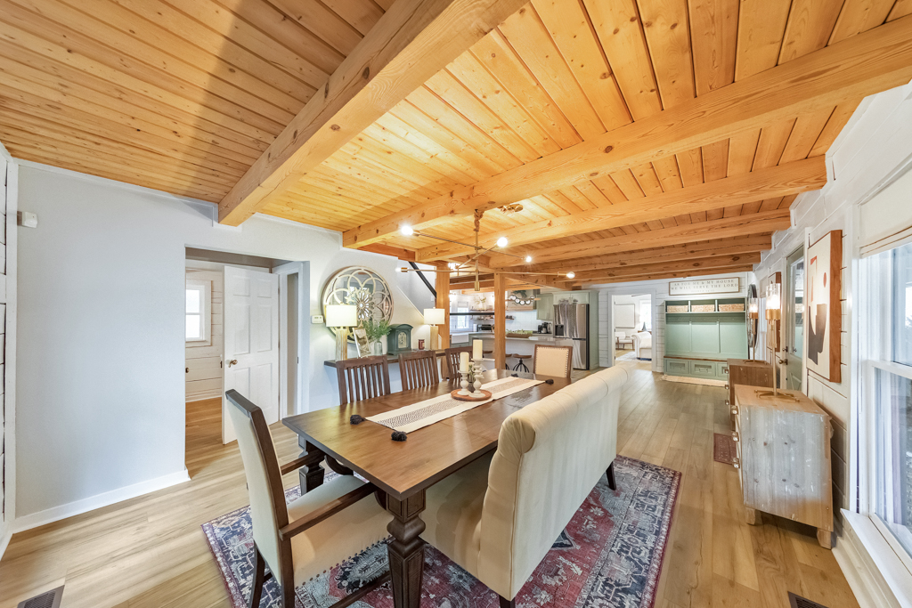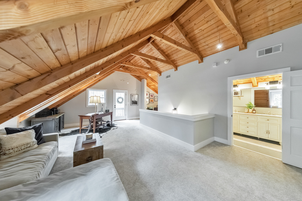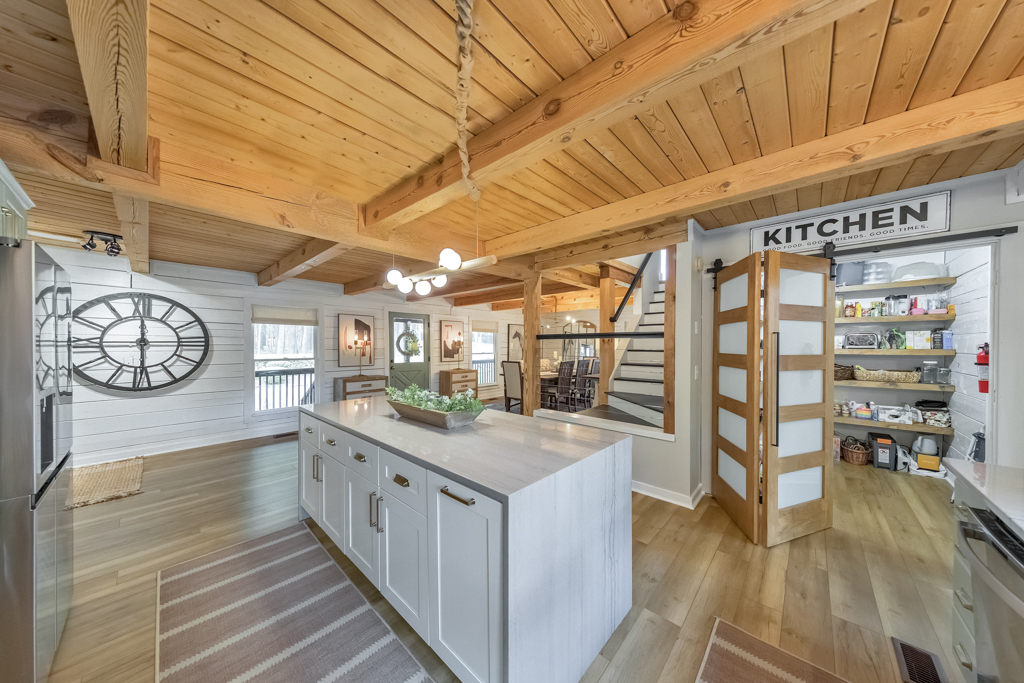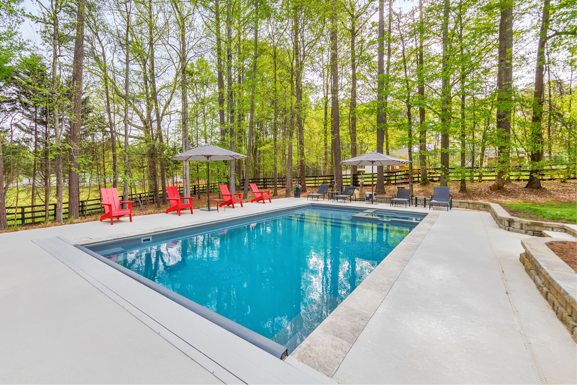Welcome to your private retreat—where tranquility meets modern luxury. Nestled on 3.31 acres of beautifully wooded land, this completely renovated 4 bed / 3.5 bath D-log cabin offers the perfect balance of peaceful seclusion and everyday convenience, just minutes from shopping, dining, and top-rated schools. As you travel down the long gravel drive, you’ll feel transported into your own serene escape. Surrounded by mature trees and lush landscape, the home sits gracefully in a spacious clearing, offering unmatched privacy. A charming full-length front porch invites you to relax and take in the quiet beauty of the property, while a spacious patio and brand-new back deck provide ideal spaces for outdoor entertaining. Inside, the home has been thoughtfully transformed with extensive upgrades throughout. The main level and basement feature brand-new LVP flooring, complemented by carpet and tile in select areas, along with fresh lighting, recessed lighting, and ceiling fans that enhance every space. Vaulted ceilings and custom bookcases add character and charm. The stunning kitchen has been completely reimagined and is a true showstopper—featuring stone countertops, a large island with breakfast bar seating, and an eat-in kitchen layout. Upgrades include a custom pantry with built-in cabinetry and doors, stylish backsplash, industrial gas range with vent hood, new dishwasher, and refrigerator—perfect for both everyday living and entertaining. The inviting living room showcases a striking rock fireplace, creating a warm and welcoming focal point. Additional living spaces include a formal dining room, den, exercise room, and a fully finished basement—offering flexibility for every lifestyle. All 3 full bathrooms and 1 half bath have been beautifully renovated with new tile, vanities, and modern fixtures. The spacious owner’s suite is a true sanctuary, featuring walk-in closets with motion-sensor lighting, custom built-ins, a double vanity, a relaxing soaking tub, and a separate tiled shower. Upstairs, you’ll find two bedrooms with new carpet, a large bonus room, balcony access, and a full bath with double vanity. The fully finished walk-out basement with interior entry provides incredible versatility, complete with a built-in entertainment area featuring custom cabinetry and granite countertops, an additional bedroom space, full bath, and a conveniently located lower-level laundry area. Step outside and experience resort-style living. The private backyard oasis features a 35-foot heated fiberglass pool with automatic cover, along with a fenced raised garden area with 8 beds—perfect for gardening enthusiasts. The property also includes space for hobby farming, with areas for chickens. Additional exterior upgrades include a freshly restained home with a painted roof, new rock driveway, custom mailbox, double-sided carport, and enclosed workshop/storage space. This one-of-a-kind property offers the rare opportunity to enjoy peaceful country living with modern upgrades already in place. Whether you're looking for a full-time residence, weekend escape, or hobby farm, this home truly has it all.