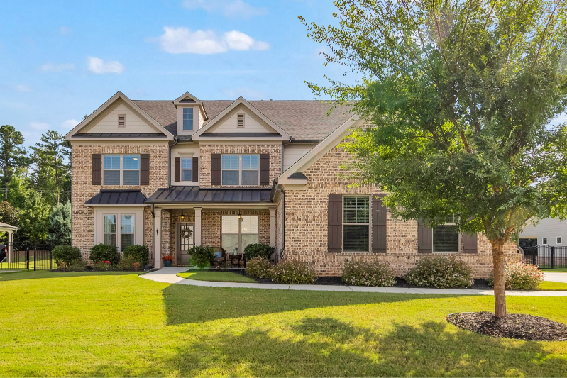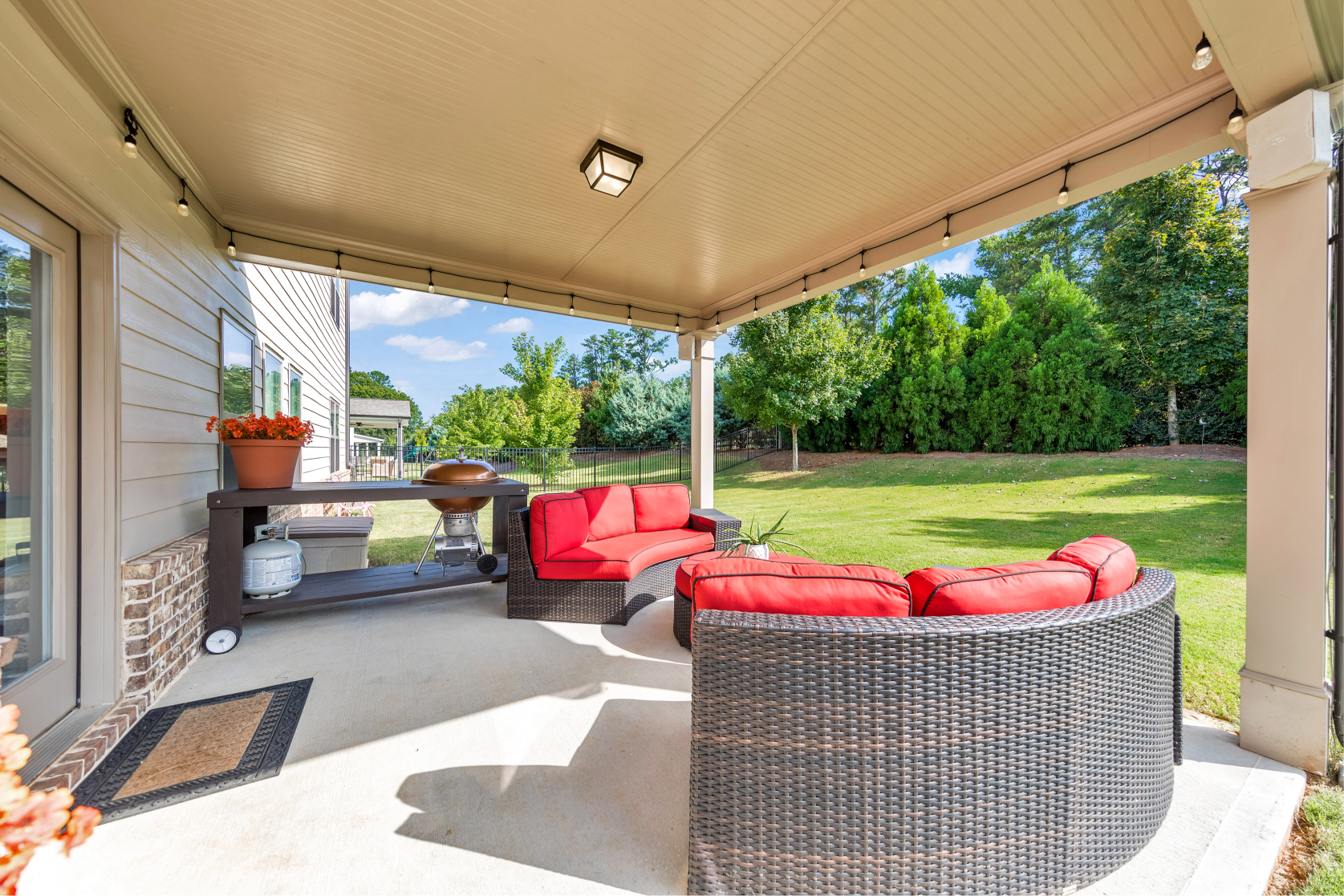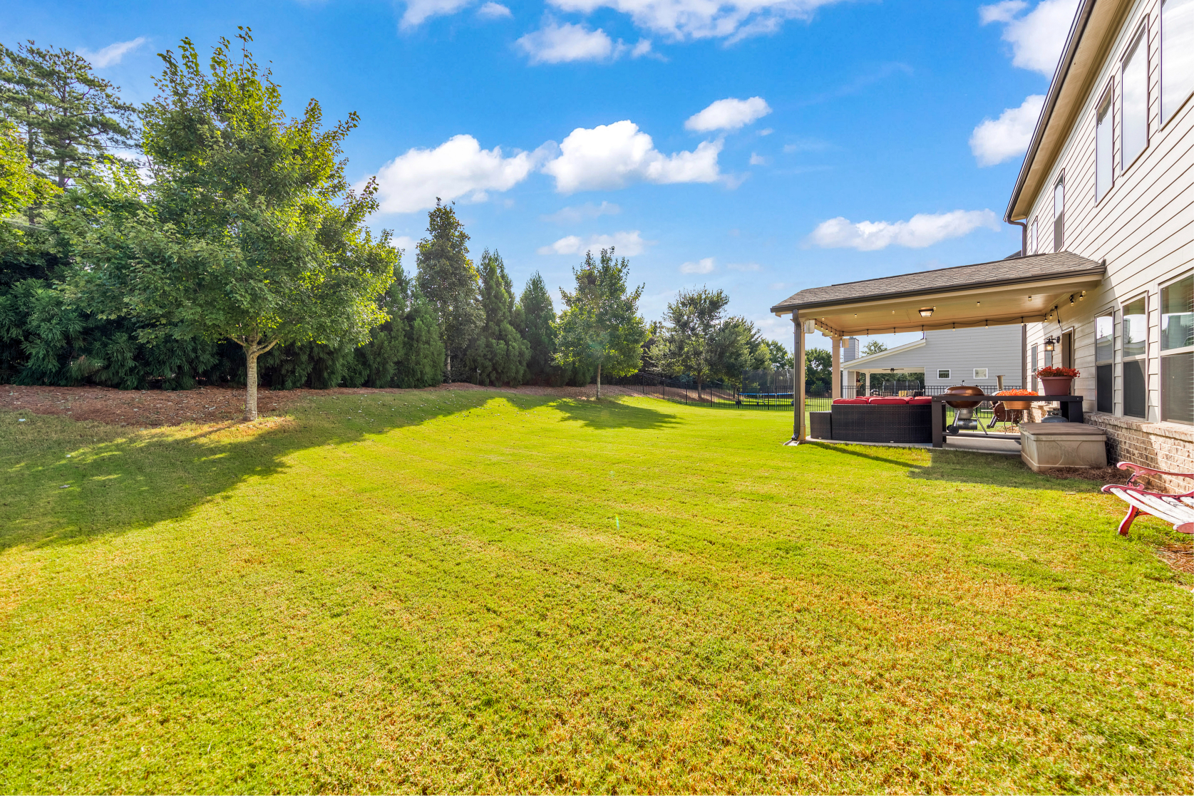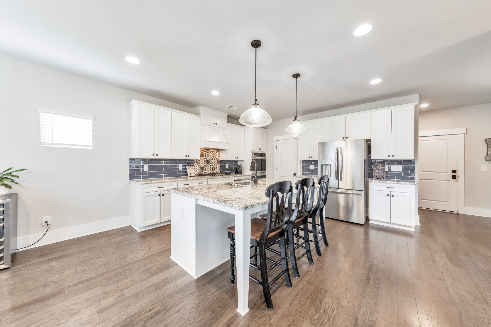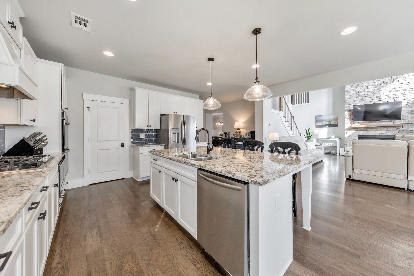 This timeless beauty is ready for you to move right in! Welcome to this stunning 5 bed / 4.5 home built in 2019 that blends modern comfort with elegant design. From the moment you step inside, the open floor plan creates a bright and inviting atmosphere, perfectly suited for both everyday living and entertaining. The gourmet kitchen is a chef’s dream, complete with double ovens, a gas cooktop, vent hood, granite countertops, stainless steel appliances, and white soft-close cabinetry that offers both style and functionality. A breakfast bar and eat-in dining space overlook the two-story great room, where a floor-to-ceiling stone fireplace and a wall of windows flood the home with natural light. The main level also features a formal dining room ideal for hosting dinner parties, a private office with French doors for working from home, and a guest suite with a full ensuite bath. A powder room adds convenience for guests, while detailed trim and thoughtful finishes elevate the character throughout. Hardwood floors extend across the main living areas. Upstairs, the primary suite serves as a true retreat with tray ceilings and a spa-like bath that includes a double vanity, soaking tub, a separate glass-enclosed shower, and an oversized walk-in closet.Secondary bedrooms include a Jack & Jill bath shared between two rooms and an additional bedroom with its own ensuite bath. The laundry room is also conveniently located on the upper level. All bathrooms feature granite countertops and timeless tile finishes. Step outside to the covered patio, the perfect outdoor oasis for relaxing or watching sunsets with family and friends. The three-car garage provides ample parking and storage. This home is nestled in a beautiful neighborhood that offers a scenic lake with a path, providing a peaceful backdrop for evening strolls. Located within award-winning school districts, this home combines luxury living, modern convenience, and an unbeatable setting. Don’t miss the opportunity to make this exceptional property your own.