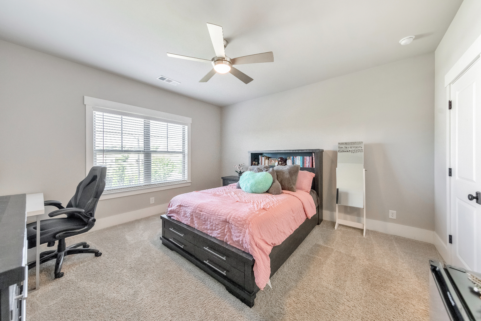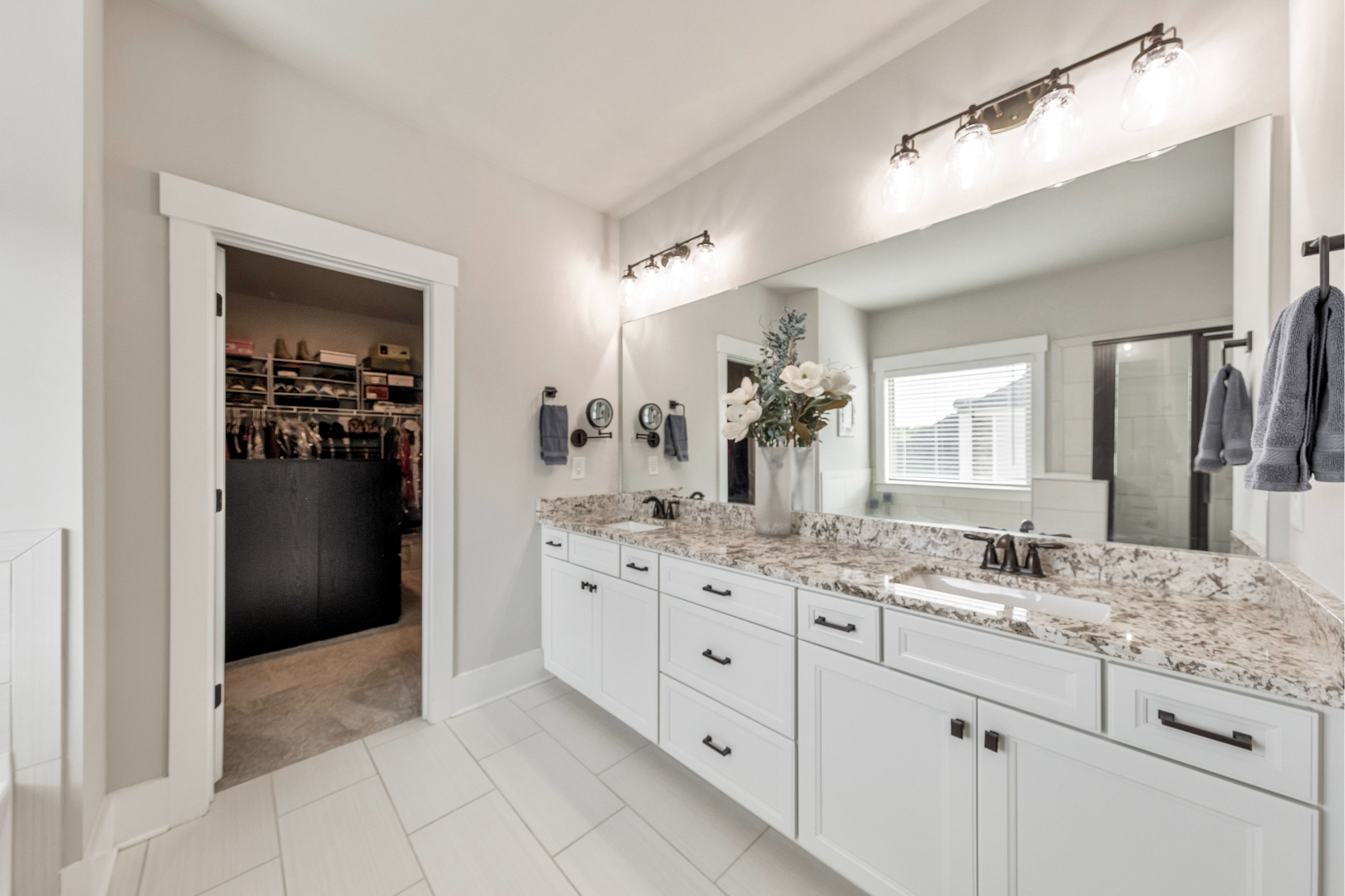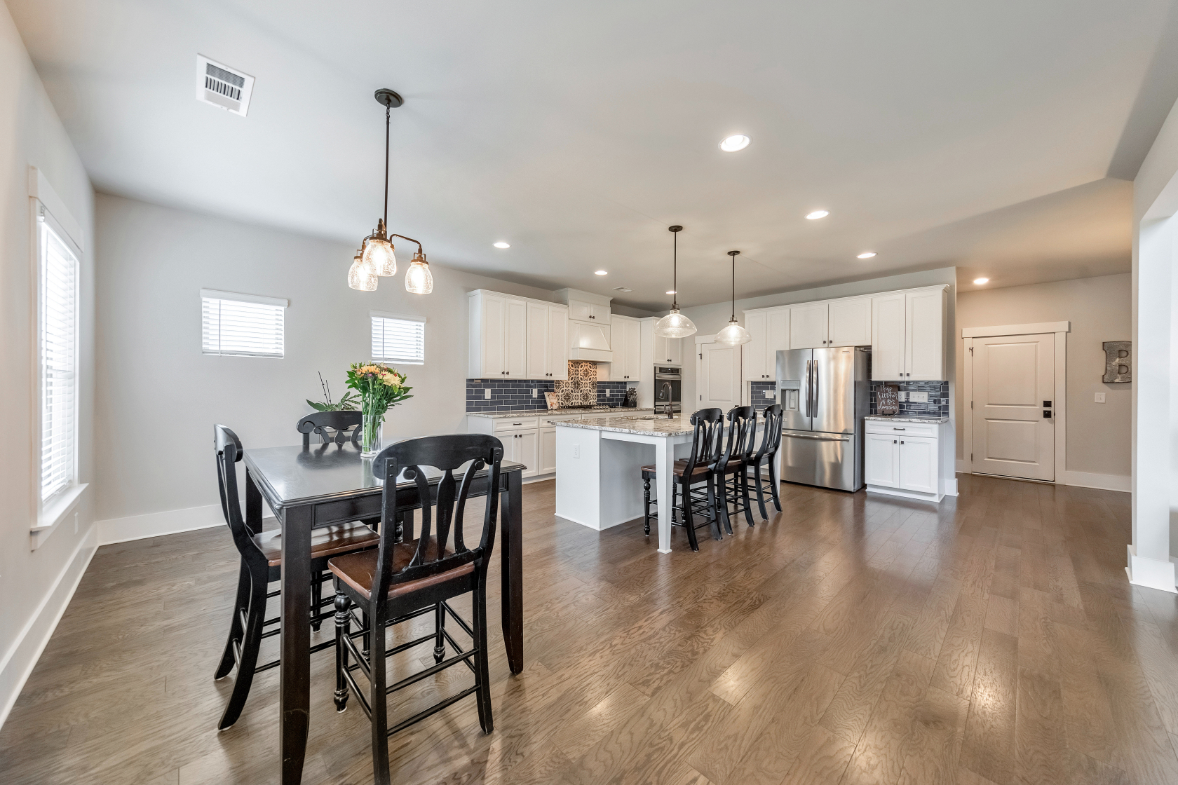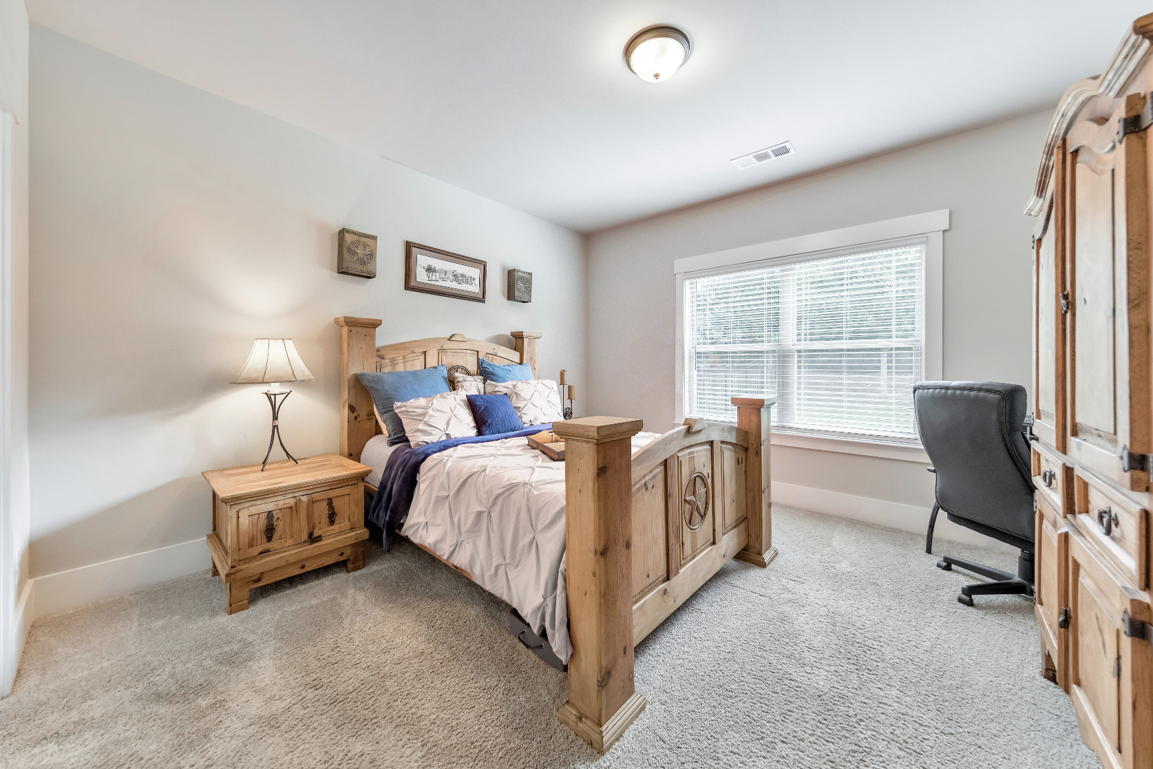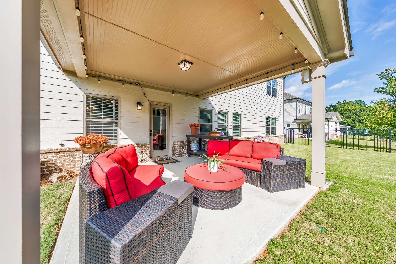 This timeless beauty is ready for you to move right in! Welcome to this stunning 5 bed / 4.5 home built in 2019 that blends modern comfort with elegant design. From the moment you step inside, the open floor plan creates a bright and inviting atmosphere, perfectly suited for both everyday living and entertaining. The gourmet kitchen is a chef’s dream, complete with double ovens, a gas cooktop, vent hood, granite countertops, stainless steel appliances, and white soft-close cabinetry that offers both style and functionality. A breakfast bar and eat-in dining space overlook the two-story great room, where a floor-to-ceiling stone fireplace and a wall of windows flood the home with natural light. The main level also features a formal dining room ideal for hosting dinner parties, a private office with French doors for working from home, and a guest suite with a full ensuite bath. A powder room adds convenience for guests, while detailed trim and thoughtful finishes elevate the character throughout. Hardwood floors extend across the main living areas. Upstairs, the primary suite serves as a true retreat with tray ceilings and a spa-like bath that includes a double vanity, soaking tub, a separate glass-enclosed shower, and an oversized walk-in closet.Secondary bedrooms include a Jack & Jill bath shared between two rooms and an additional bedroom with its own ensuite bath. The laundry room is also conveniently located on the upper level. All bathrooms feature granite countertops and timeless tile finishes. Step outside to the covered patio, the perfect outdoor oasis for relaxing or watching sunsets with family and friends. The three-car garage provides ample parking and storage. This home is nestled in a beautiful neighborhood that offers a scenic lake with a path, providing a peaceful backdrop for evening strolls. Located within award-winning school districts, this home combines luxury living, modern convenience, and an unbeatable setting. Don’t miss the opportunity to make this exceptional property your own.