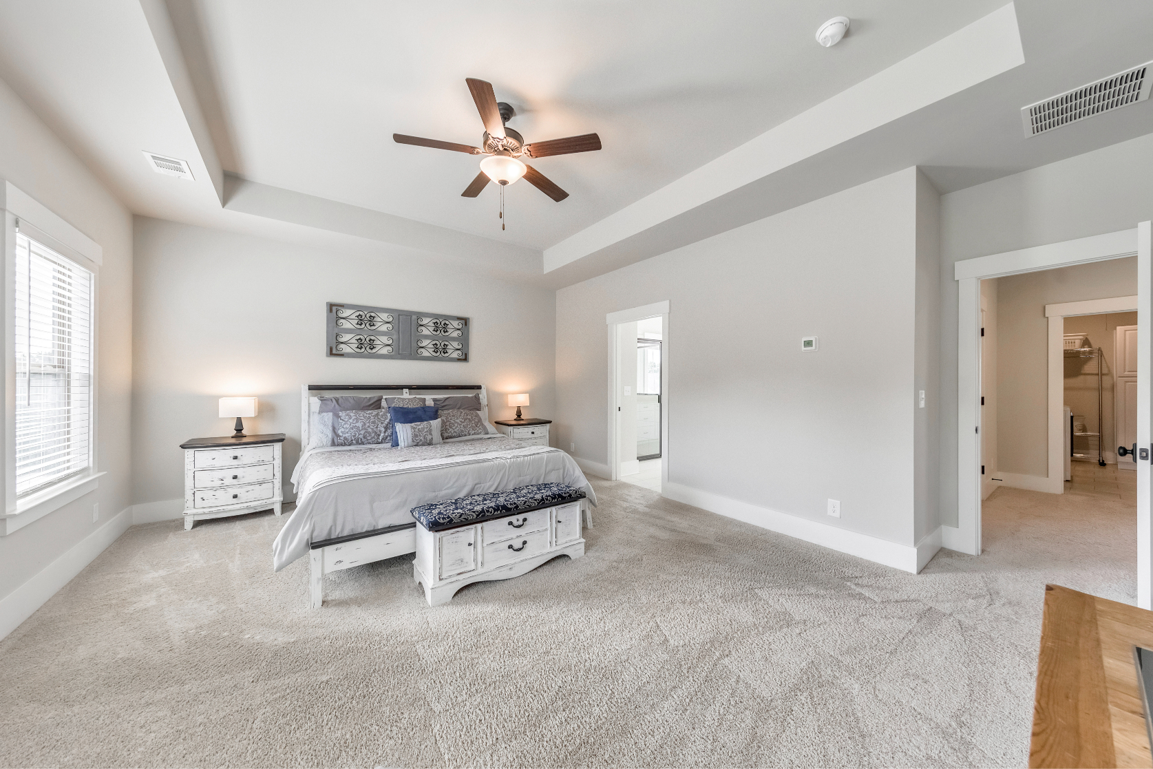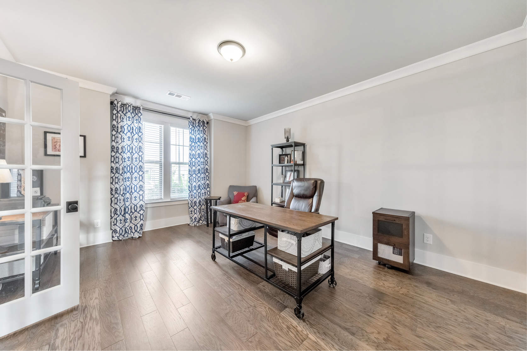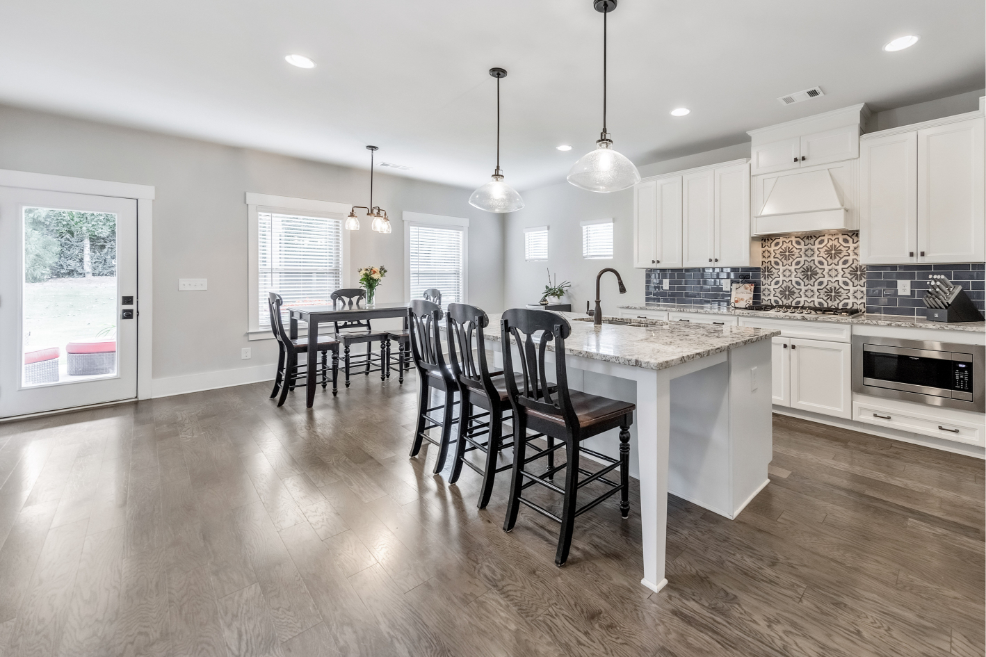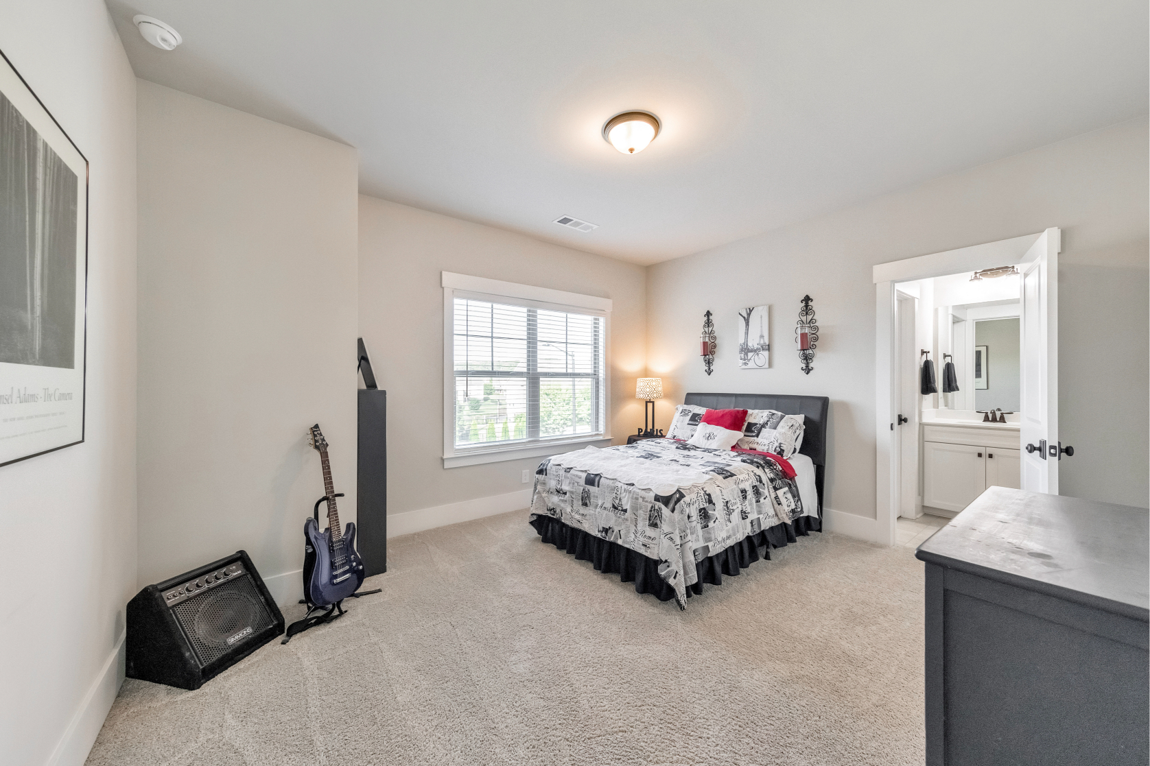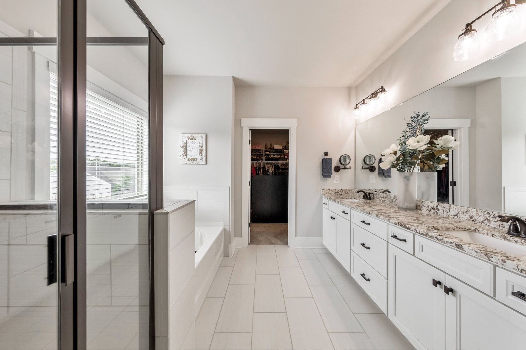This timeless beauty is ready for you to move right in! Welcome to this stunning 5 bed / 4.5 home built in 2019 that blends modern comfort with elegant design. From the moment you step inside, the open floor plan creates a bright and inviting atmosphere, perfectly suited for both everyday living and entertaining. The gourmet kitchen is a chef’s dream, complete with double ovens, a gas cooktop, vent hood, granite countertops, stainless steel appliances, and white soft-close cabinetry that offers both style and functionality. A breakfast bar and eat-in dining space overlook the two-story great room, where a floor-to-ceiling stone fireplace and a wall of windows flood the home with natural light. The main level also features a formal dining room ideal for hosting dinner parties, a private office with French doors for working from home, and a guest suite with a full ensuite bath. A powder room adds convenience for guests, while detailed trim and thoughtful finishes elevate the character throughout. Hardwood floors extend across the main living areas. Upstairs, the primary suite serves as a true retreat with tray ceilings and a spa-like bath that includes a double vanity, soaking tub, a separate glass-enclosed shower, and an oversized walk-in closet.Secondary bedrooms include a Jack & Jill bath shared between two rooms and an additional bedroom with its own ensuite bath. The laundry room is also conveniently located on the upper level. All bathrooms feature granite countertops and timeless tile finishes. Step outside to the covered patio, the perfect outdoor oasis for relaxing or watching sunsets with family and friends. The three-car garage provides ample parking and storage. This home is nestled in a beautiful neighborhood that offers a scenic lake with a path, providing a peaceful backdrop for evening strolls. Located within award-winning school districts, this home combines luxury living, modern convenience, and an unbeatable setting. Don’t miss the opportunity to make this exceptional property your own.