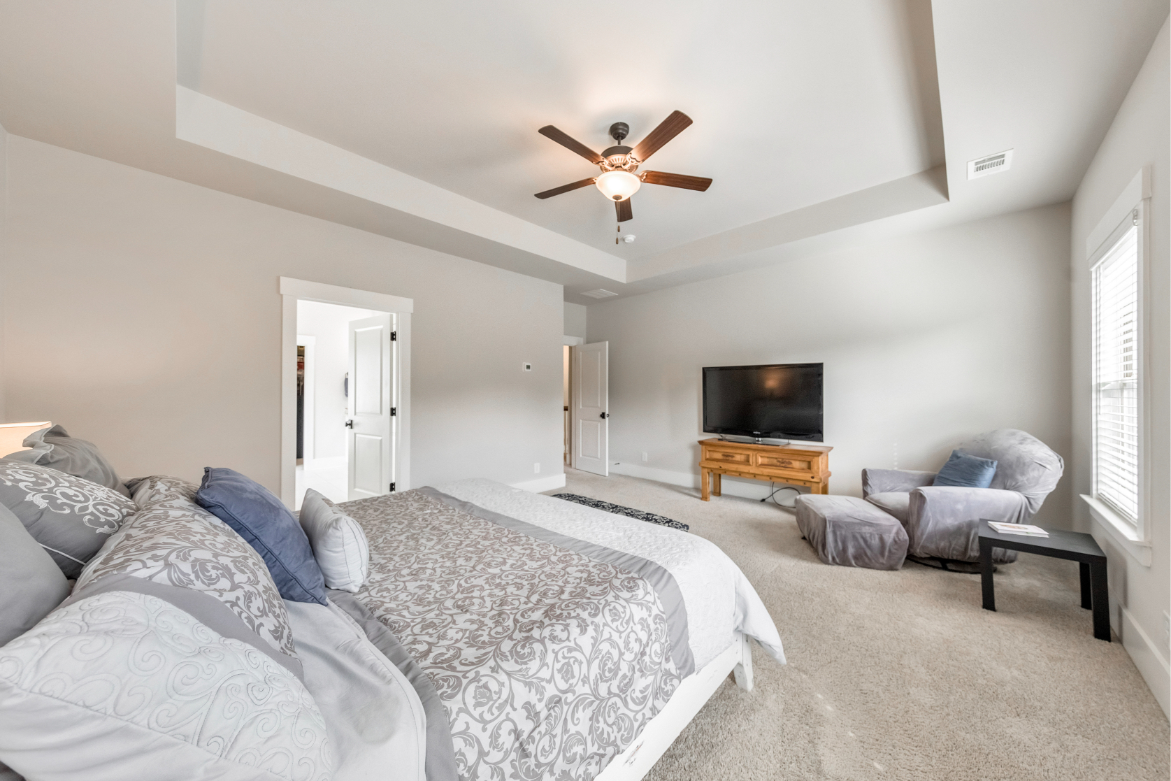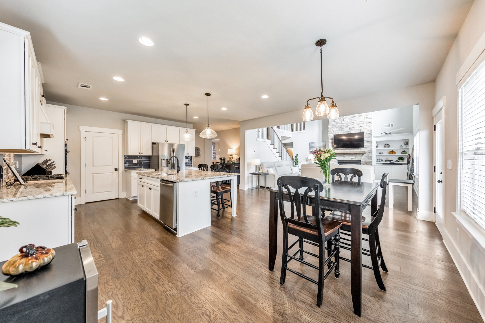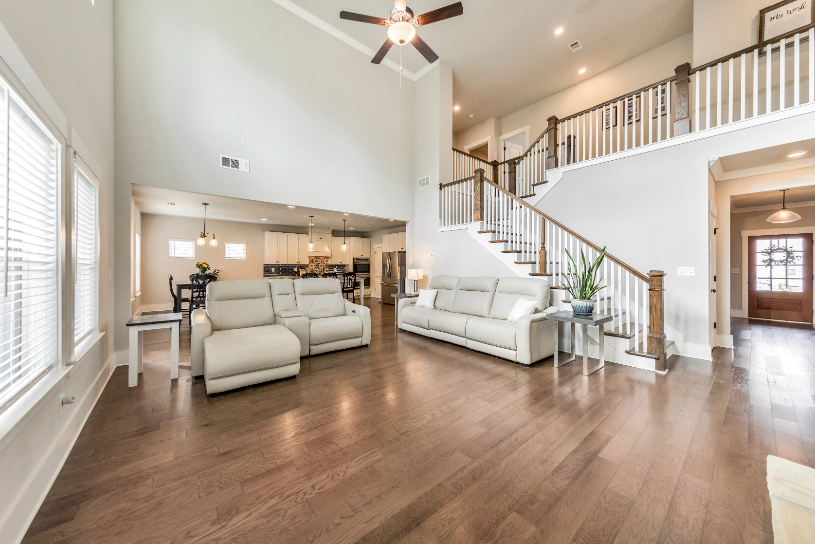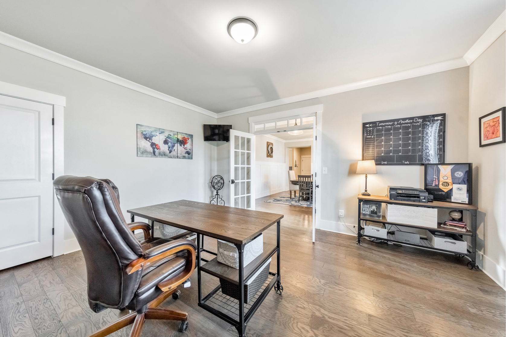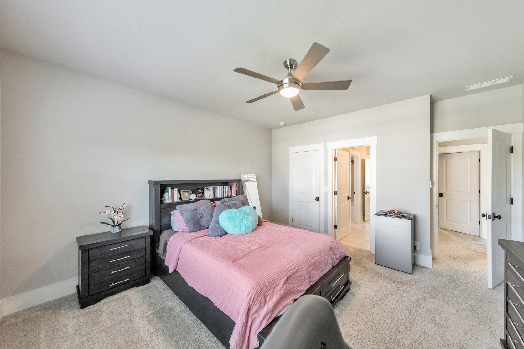 This timeless beauty is ready for you to move right in! Welcome to this stunning 5 bed / 4.5 home built in 2019 that blends modern comfort with elegant design. From the moment you step inside, the open floor plan creates a bright and inviting atmosphere, perfectly suited for both everyday living and entertaining. The gourmet kitchen is a chef’s dream, complete with double ovens, a gas cooktop, vent hood, granite countertops, stainless steel appliances, and white soft-close cabinetry that offers both style and functionality. A breakfast bar and eat-in dining space overlook the two-story great room, where a floor-to-ceiling stone fireplace and a wall of windows flood the home with natural light. The main level also features a formal dining room ideal for hosting dinner parties, a private office with French doors for working from home, and a guest suite with a full ensuite bath. A powder room adds convenience for guests, while detailed trim and thoughtful finishes elevate the character throughout. Hardwood floors extend across the main living areas. Upstairs, the primary suite serves as a true retreat with tray ceilings and a spa-like bath that includes a double vanity, soaking tub, a separate glass-enclosed shower, and an oversized walk-in closet.Secondary bedrooms include a Jack & Jill bath shared between two rooms and an additional bedroom with its own ensuite bath. The laundry room is also conveniently located on the upper level. All bathrooms feature granite countertops and timeless tile finishes. Step outside to the covered patio, the perfect outdoor oasis for relaxing or watching sunsets with family and friends. The three-car garage provides ample parking and storage. This home is nestled in a beautiful neighborhood that offers a scenic lake with a path, providing a peaceful backdrop for evening strolls. Located within award-winning school districts, this home combines luxury living, modern convenience, and an unbeatable setting. Don’t miss the opportunity to make this exceptional property your own.