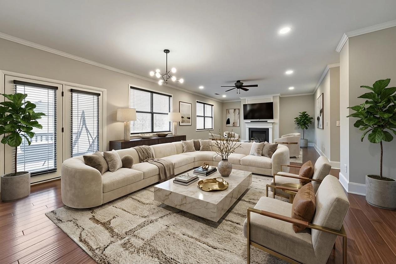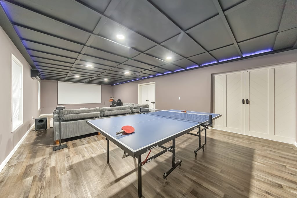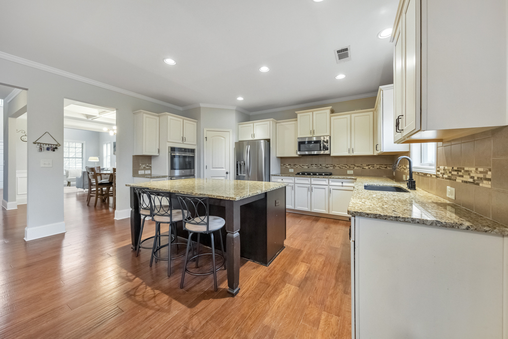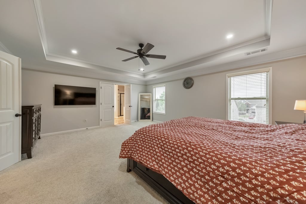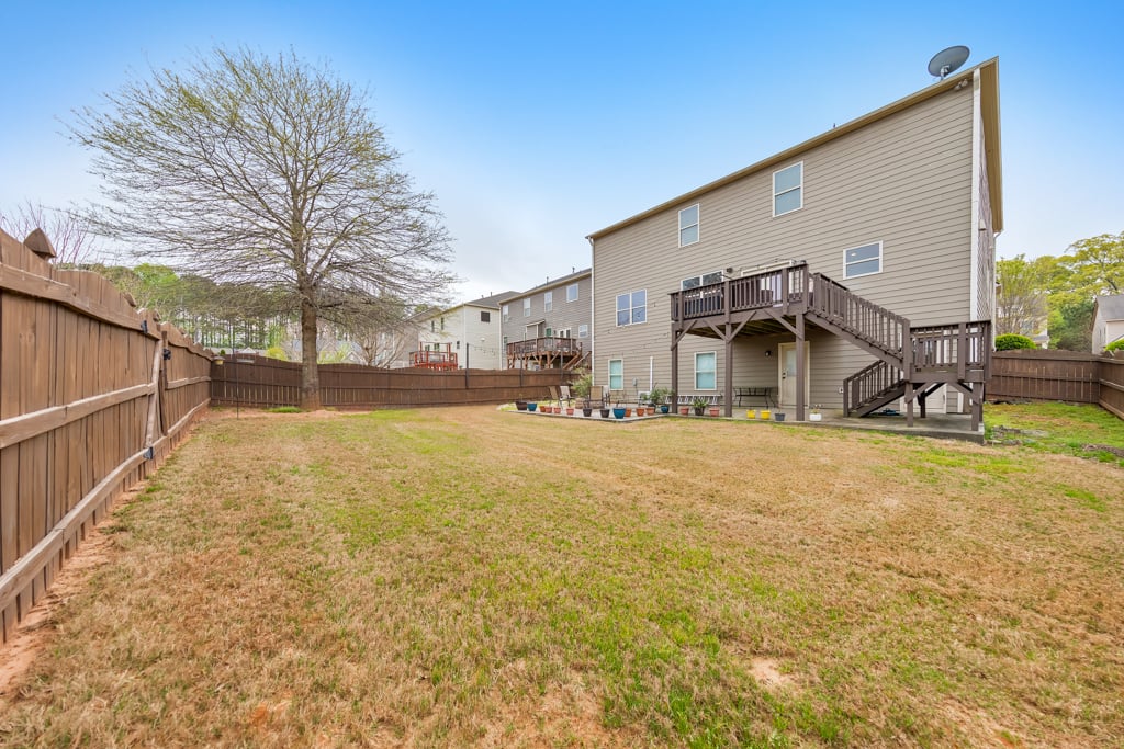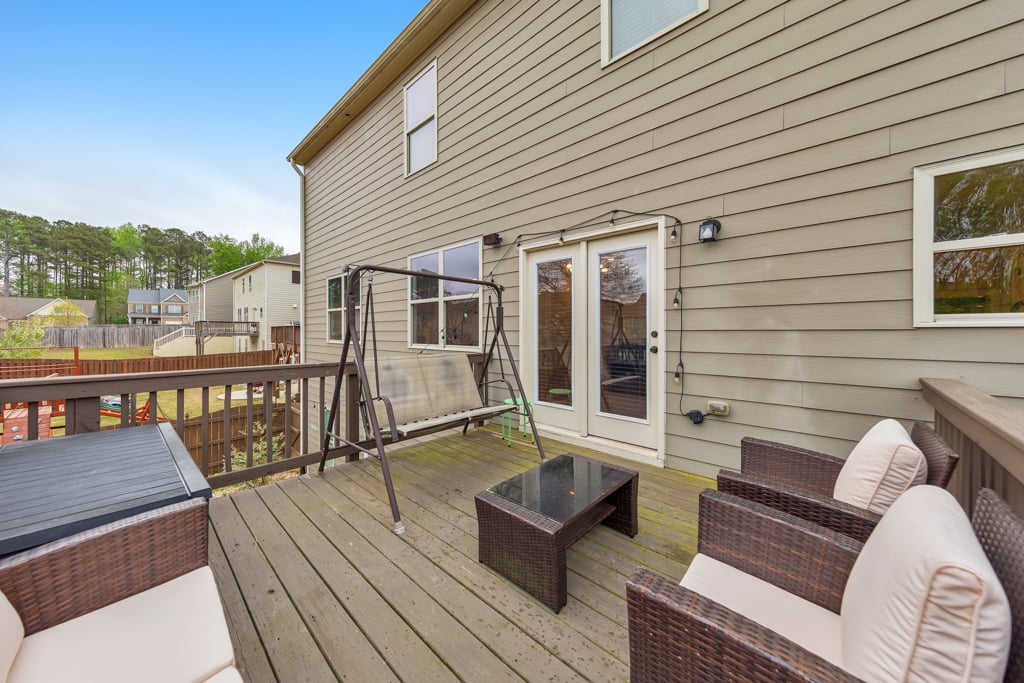 Welcome to this stunning 5 bedroom, 4 bathroom luxury home in the highly sought-after Centennial Lakes community, where elegant design meets everyday comfort. Thoughtfully designed with spacious living areas, upscale finishes, and incredible neighborhood amenities, this home offers the perfect blend of style, function, and location. A charming covered front porch invites you inside to a grand two-story living room filled with natural light, creating a bright and airy first impression. Just off the living room, the formal dining room features beautiful coffered ceilings, perfect for hosting gatherings and special occasions. The modern kitchen is a true showstopper, complete with stainless steel appliances including a double oven, granite countertops, white cabinetry, a large walk-in pantry, and a center island with seating. The kitchen flows seamlessly into the cozy fireside family room, making it ideal for entertaining and everyday living. A main level bedroom and full bathroom provide the perfect setup for guests or a home office. Upstairs, a massive loft serves as a versatile space connecting all bedrooms—perfect for a playroom, media area, or additional living space. The oversized primary suite is a true retreat, featuring tray ceilings, a large walk-in closet, and a spa-like bathroom with dual vanities, a soaking tub, and a separate shower. Three generously sized secondary bedrooms are also located upstairs, sharing two full bathrooms, including a convenient Jack and Jill layout. The partially finished basement adds even more living space with a dedicated media room, while the unfinished areas offer ample storage or the opportunity for future expansion. Step outside to enjoy the rear deck overlooking the fully fenced backyard, complete with a firepit area, and a covered patio below—perfect for relaxing or entertaining year-round. An attached 3-car garage adds convenience and functionality. Located in the top-rated Etowah High School district, this home also provides easy access to I-75, Downtown Acworth, Lake Acworth, and a wide variety of shopping and dining options. Centennial Lakes offers resort-style amenities including scenic lakes, walking trails, tennis courts, basketball and volleyball courts, a clubhouse, and a pool with a waterslide and splash pad—truly something for everyone.