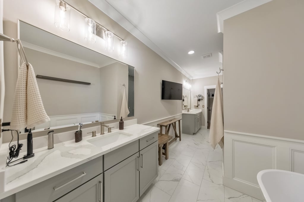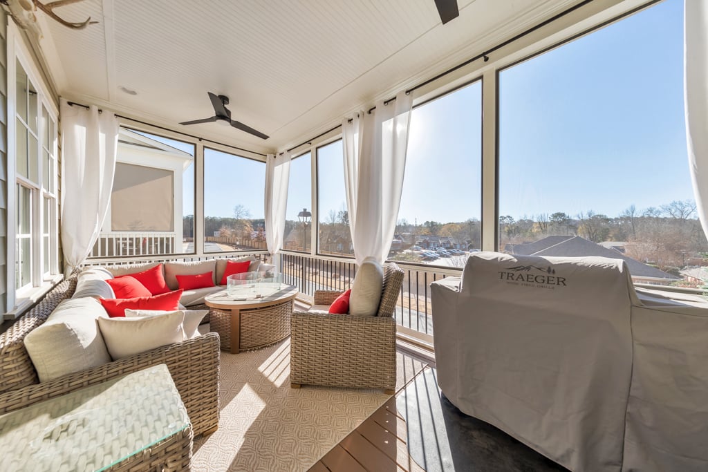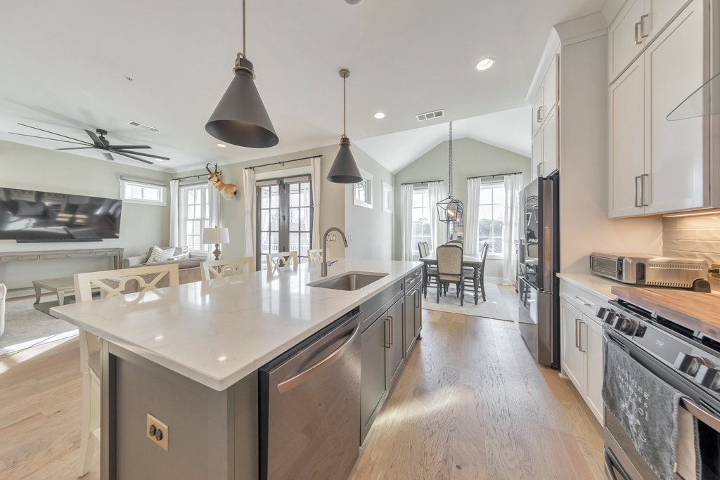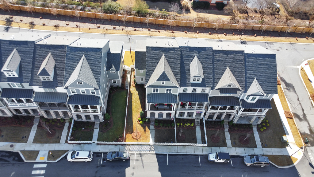 Welcome to this stunning 3 bedroom, 3.5 bathroom end-unit townhome, built in 2023 and ideally located in the highly desirable South on Main community in the heart of Woodstock. Filled with upscale finishes, smart home features, and thoughtful designer details, this home offers a spacious and versatile layout across three beautifully finished levels. The main level features a fireside family room with custom built-in bookshelves that flows seamlessly into a flex space currently used as a home office. Toward the rear of the home, a second living area opens to the chef’s kitchen, complete with stone countertops, white cabinetry, pantry, large island with seating, LED sensory lighting in the kitchen and pantry, and all brand new stainless steel appliances included. A separate dining room with vaulted ceilings adds architectural interest, while a convenient half bathroom completes the main floor. Upstairs, the oversized primary suite is a true retreat with his-and-hers walk-in closets and a luxurious ensuite bathroom featuring dual vanities, a soaking tub, and a separate shower. A secondary bedroom with its own private ensuite bathroom and a laundry room with sink are also located on the upper level. The lower level offers an additional bedroom with a full ensuite bathroom and access to the attached 3-car garage, providing excellent privacy for guests or a home office setup. Smart electronic locks on all doors, smart electronic blinds on all windows, and a Nest thermostat add comfort and convenience throughout the home. Outdoor living is abundant with a covered front porch, fenced front yard, main-level covered porch, and a rear screened-in porch—perfect for relaxing or entertaining. Residents enjoy exceptional community amenities including a dog park, playground, pool, and clubhouse. Located just one mile from Downtown Woodstock, this home offers easy access to shopping, dining, entertainment, major roadways, the Noonday Creek Trail, and Downtown Canton—combining luxury living with unbeatable convenience. Buyer can receive a $7,000 lender credit toward closing costs with financing through Hunter McElroy at Supreme Lending.