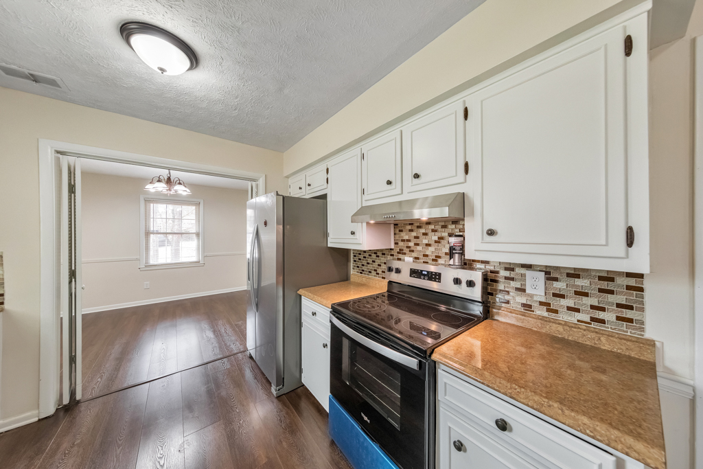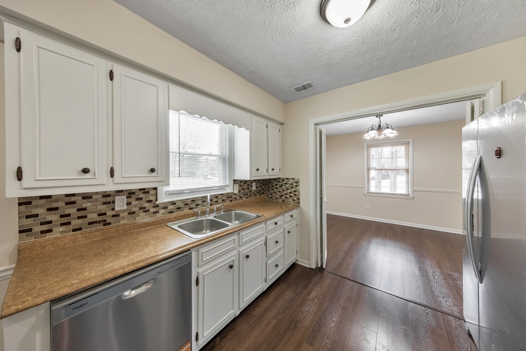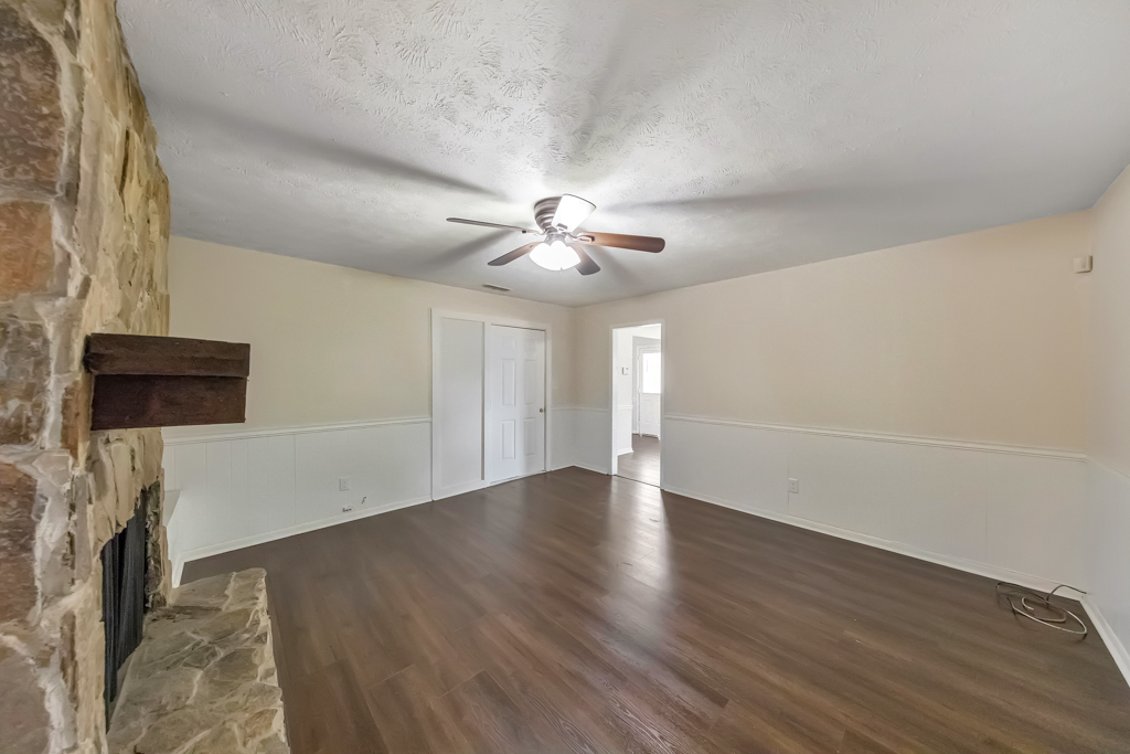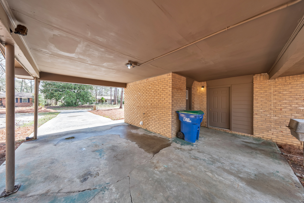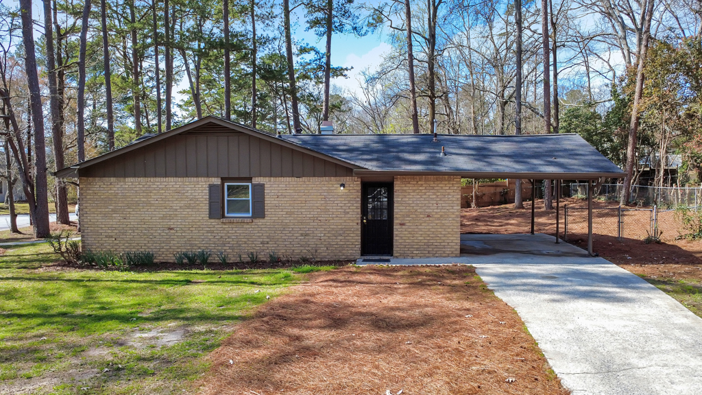 Welcome to this charming 3 bedroom / 2 bathroom brick ranch situated on a spacious corner lot in the Pointer Ridge community. This inviting home welcomes you into a cozy living room that flows effortlessly into the fireside family room and separate dining room, creating a comfortable layout for everyday living and entertaining. The kitchen features white cabinets, new stainless steel appliances, and a sunny breakfast area, along with convenient access to the laundry closet. The main level primary bedroom includes an ensuite bathroom with a shower/tub combo. Two generously sized secondary bedrooms share a full bathroom in the hall. Step outside to the rear patio overlooking the spacious, level, fenced backyard—perfect for relaxing, entertaining, or enjoying the outdoors. An attached carport provides covered parking and additional convenience. Ideally located with easy access to I-85, Hartsfield-Jackson Atlanta International Airport, Fairburn, and Downtown Atlanta, offering quick access to shopping, dining, and major destinations.