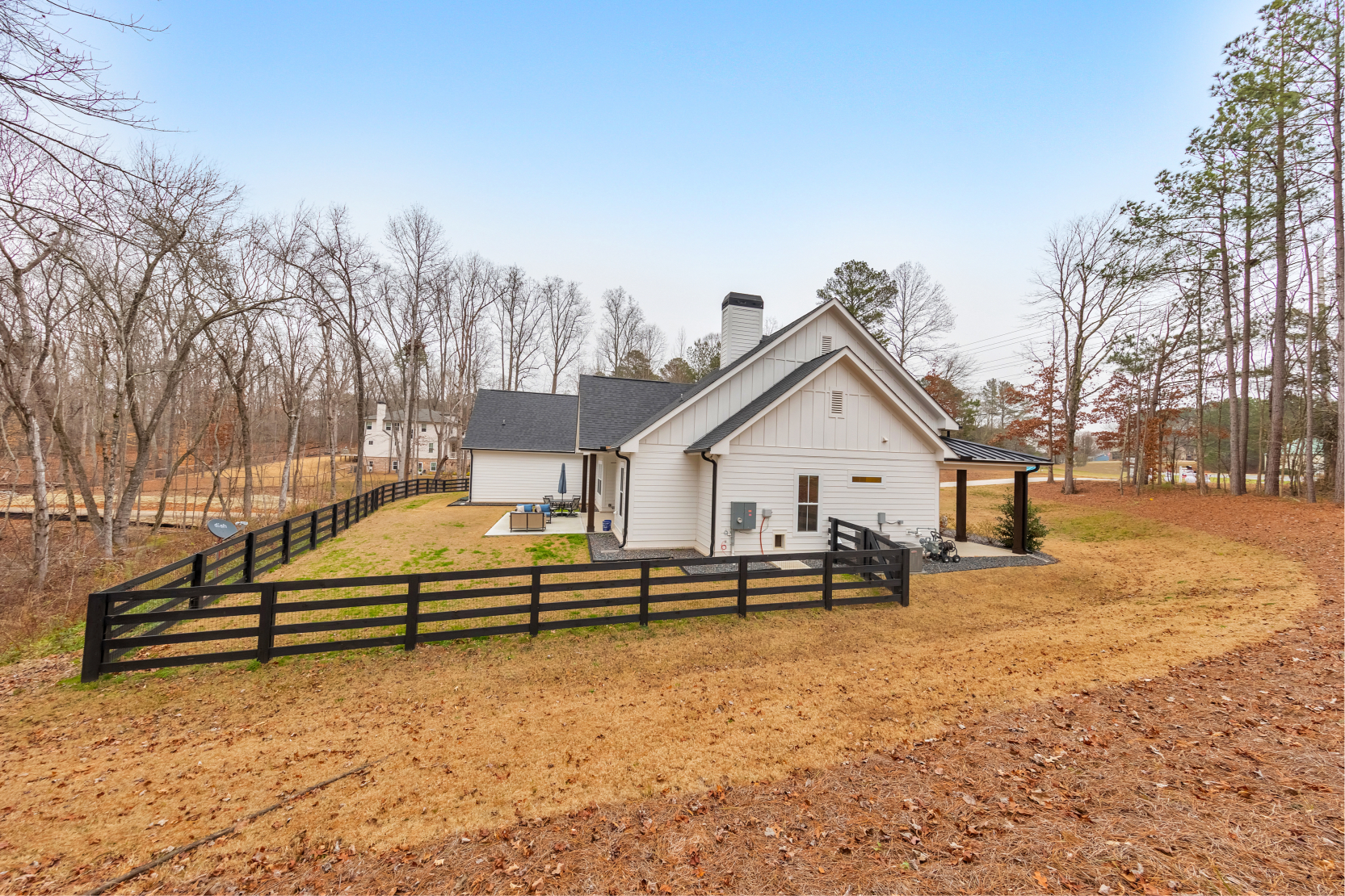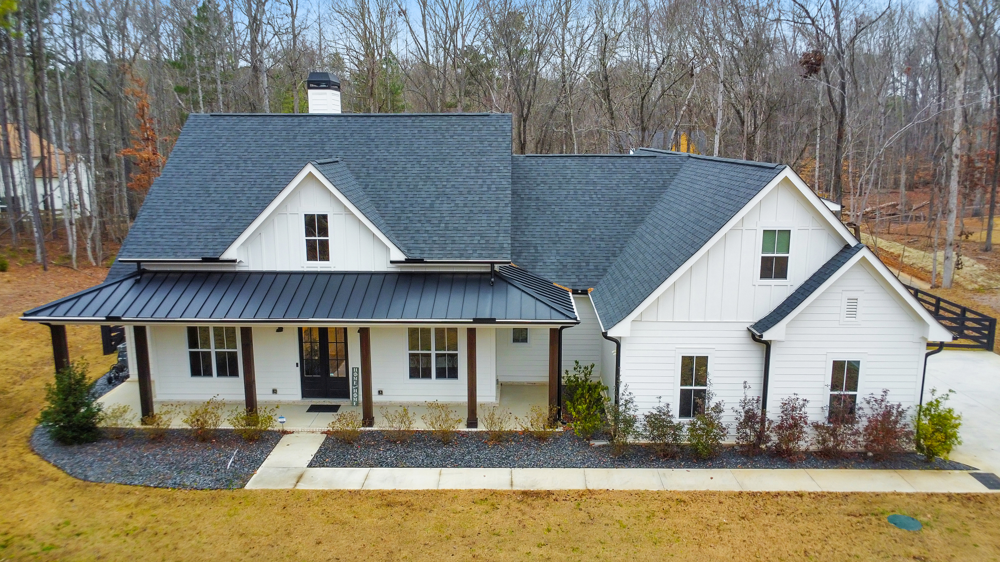 Looking for a home that checks all of your boxes? Look no further! Welcome to this stunning 2023-built modern farmhouse, offering 4 bedrooms and 3 baths on a picturesque 1.5 acre lot in a prime Woodstock location. From the moment you step onto the charming rocking chair front porch, you’ll feel right at home. Inside, the open-concept design is filled with natural light, showcasing a bright and airy living space that’s perfect for both everyday living and entertaining. The chef’s kitchen is a true showpiece with an expansive island, quartz countertops, stainless steel appliances, a farmhouse sink, and a large walk-in pantry. An office sits just off the main living area, providing a quiet space to work from home. The main-level primary suite is a luxurious retreat with a spa-like bath boasting a double shower and dual vanities. The oversized walk-in closet is a dream and connects directly to the laundry room for added convenience. Two additional main-level bedrooms share a beautifully designed hall bath with a double vanity, while a versatile flex room with a dog door to the backyard adds extra function. Upstairs, a private bedroom and full bath create the ideal suite for teens, guests, or extended family. Thoughtful details include 8-foot solid core doors on the main level, soft-close cabinets/drawers throughout, a tankless gas water heater, and a gas dryer. Outside, the expansive covered back porch and extended patio overlook the level, fenced backyard, providing the perfect backdrop for weekend barbecues, playtime, or simply relaxing while kids and pets enjoy the space. Blending modern luxury with timeless farmhouse charm, this home is designed for comfort, style, and lasting memories. With its incredible features and inviting spaces, it’s a place you’ll be proud to call home for years to come!
